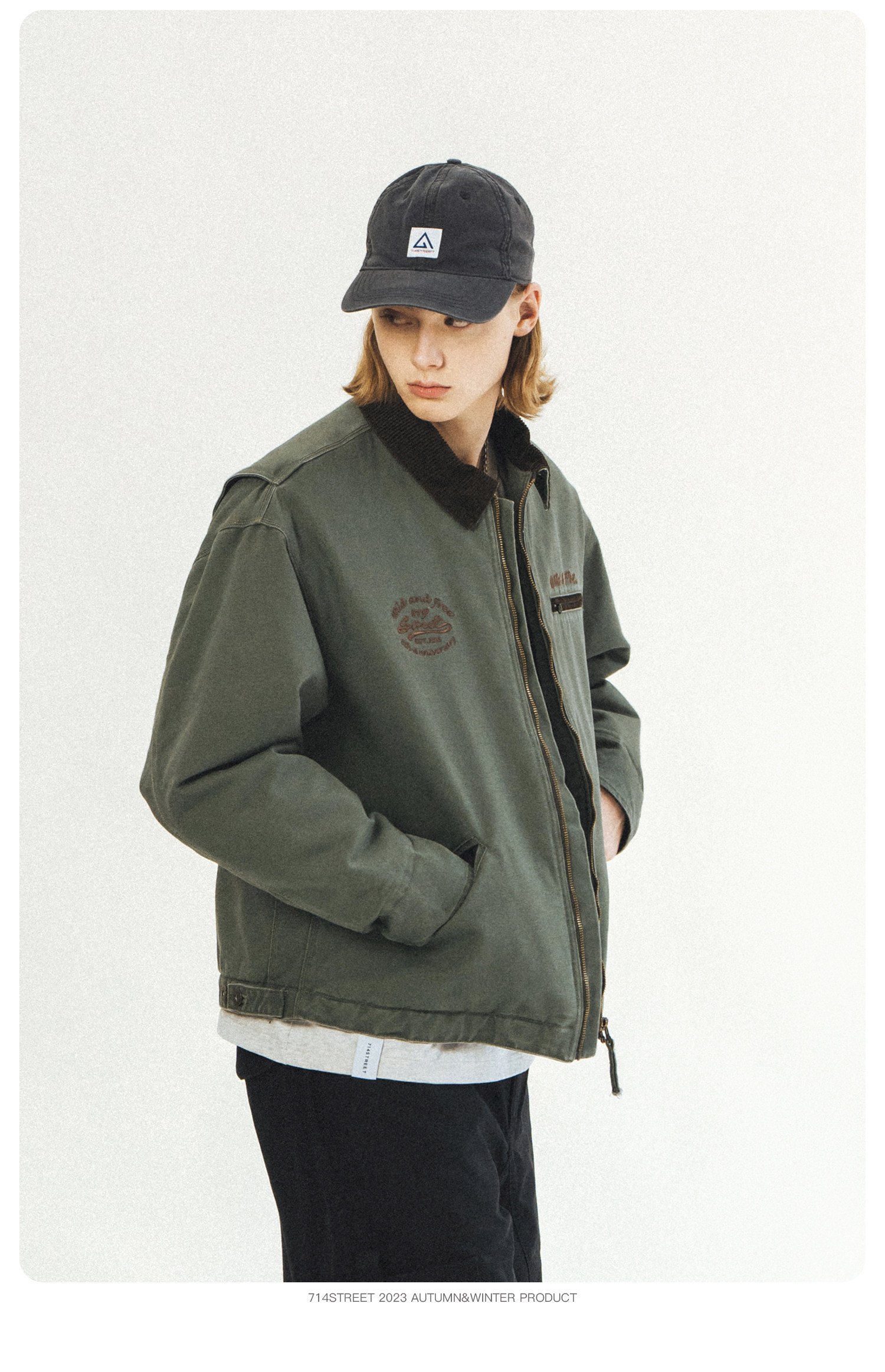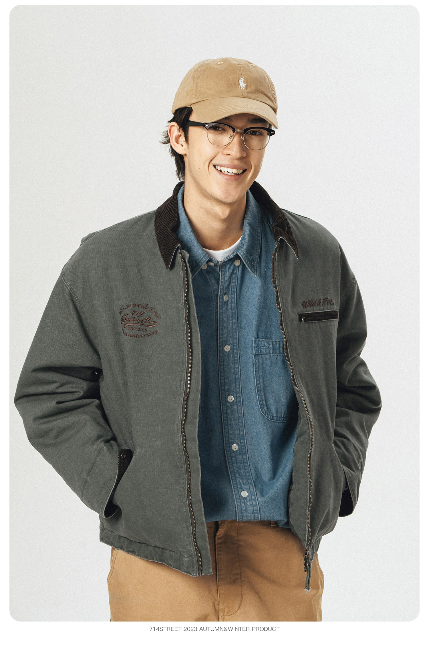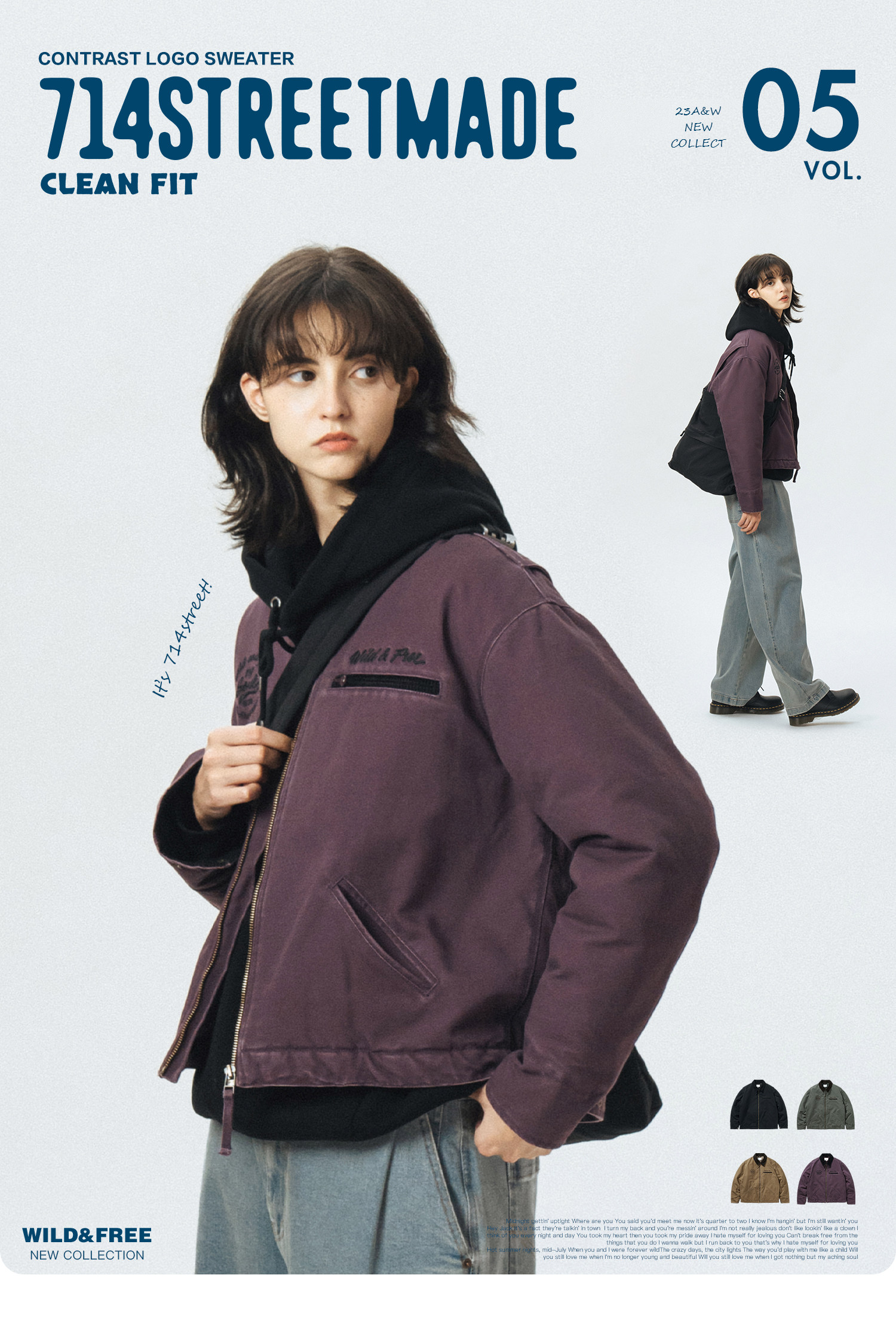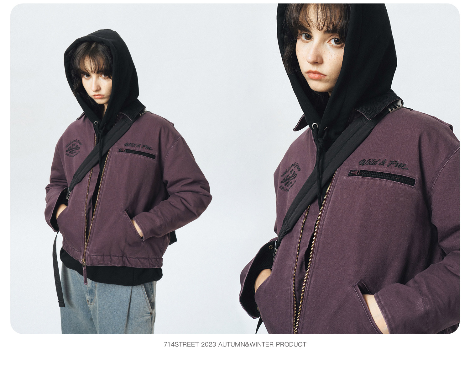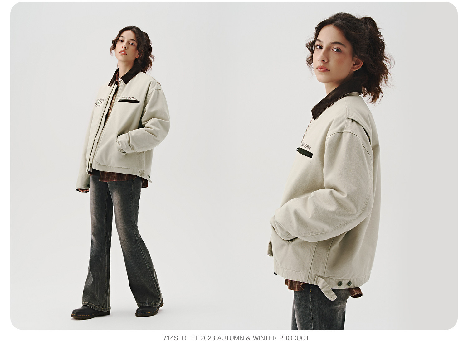 714street美式复古棉服男2024秋冬新款潮牌情侣装底特律夹克外套