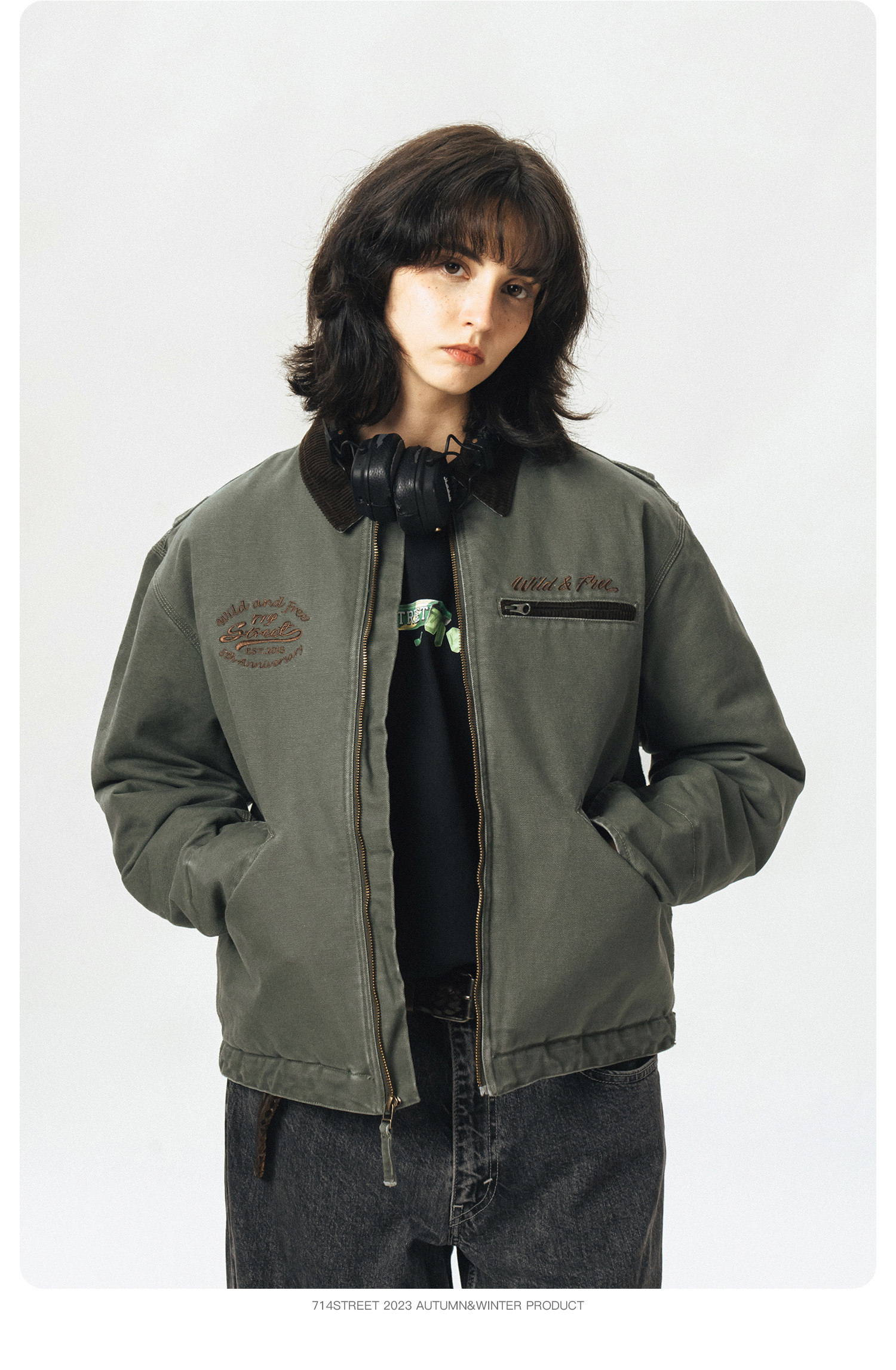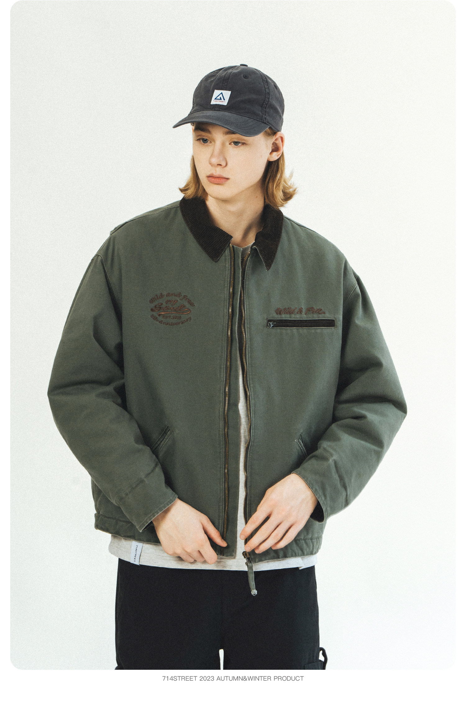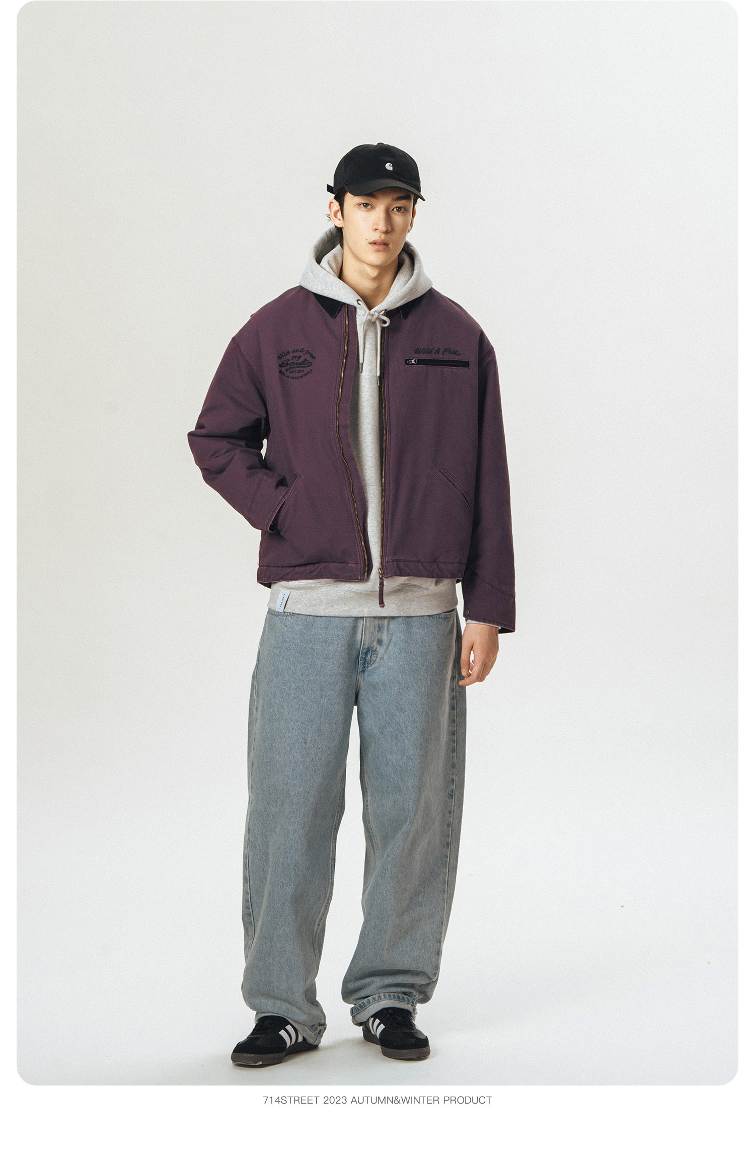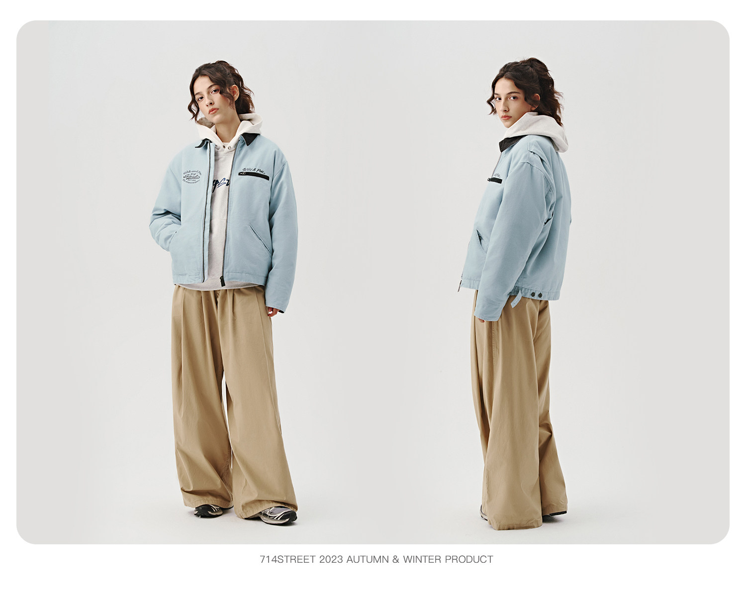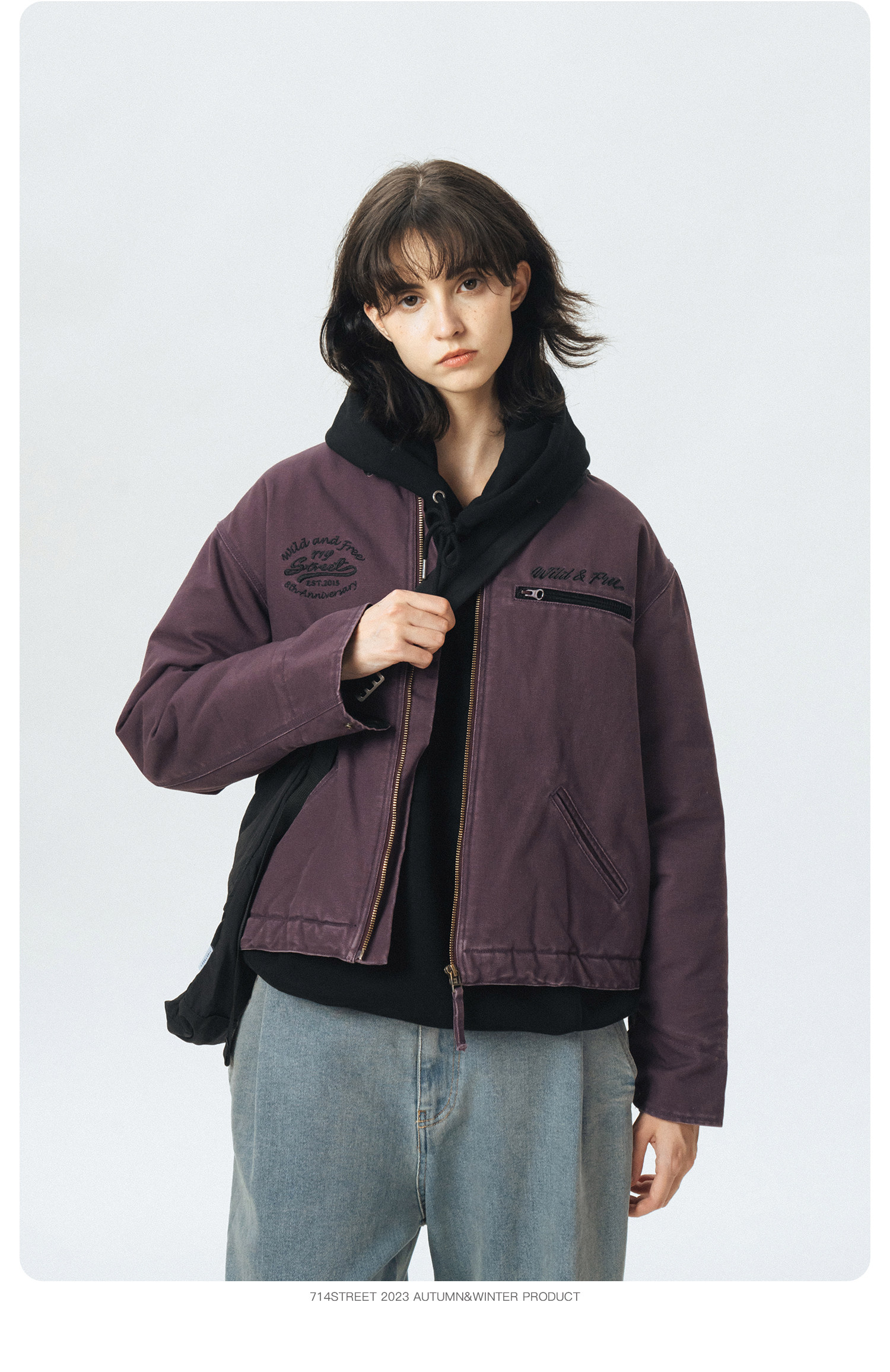 714street美式复古棉服男2024秋冬新款潮牌情侣装底特律夹克外套