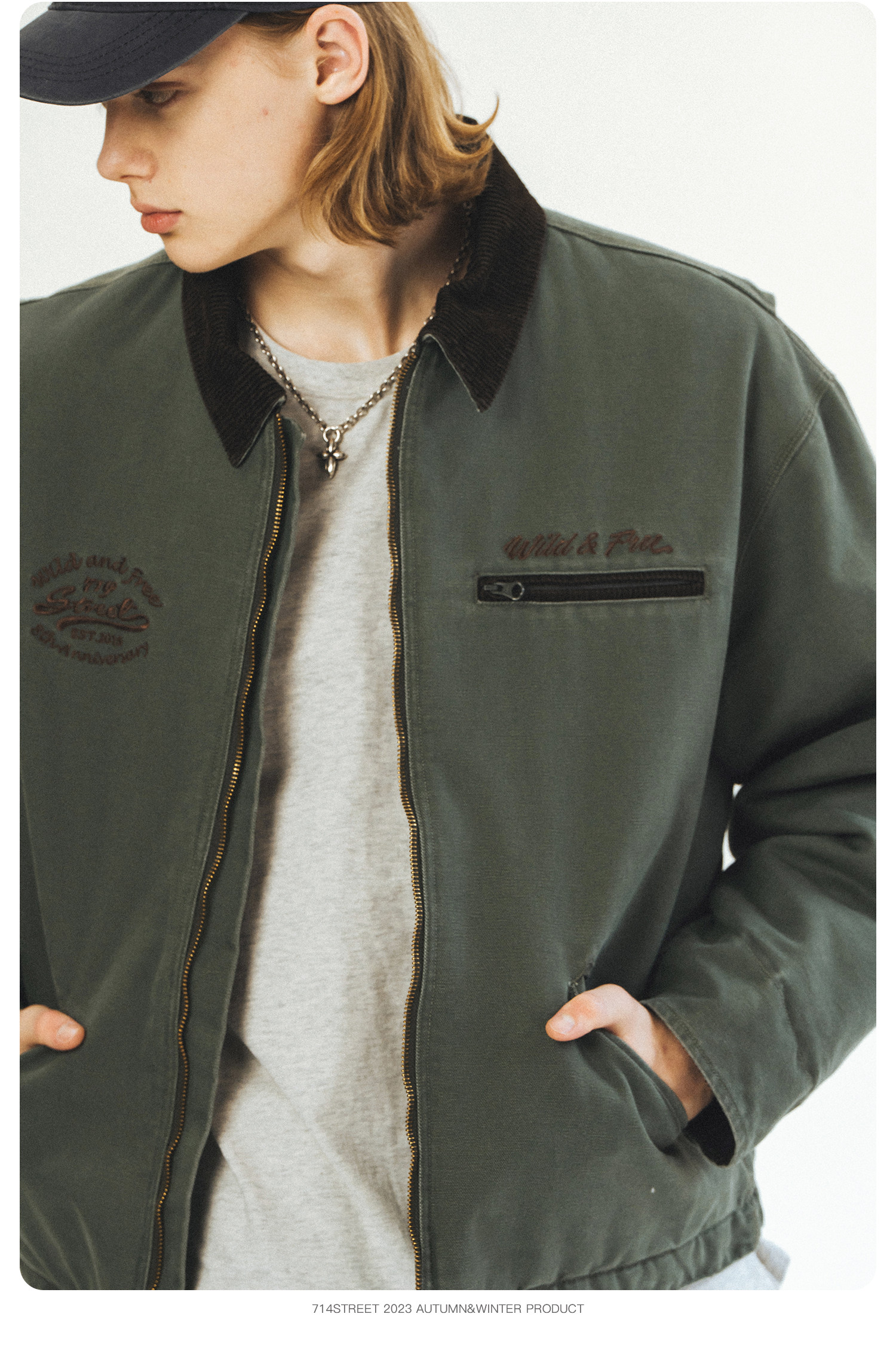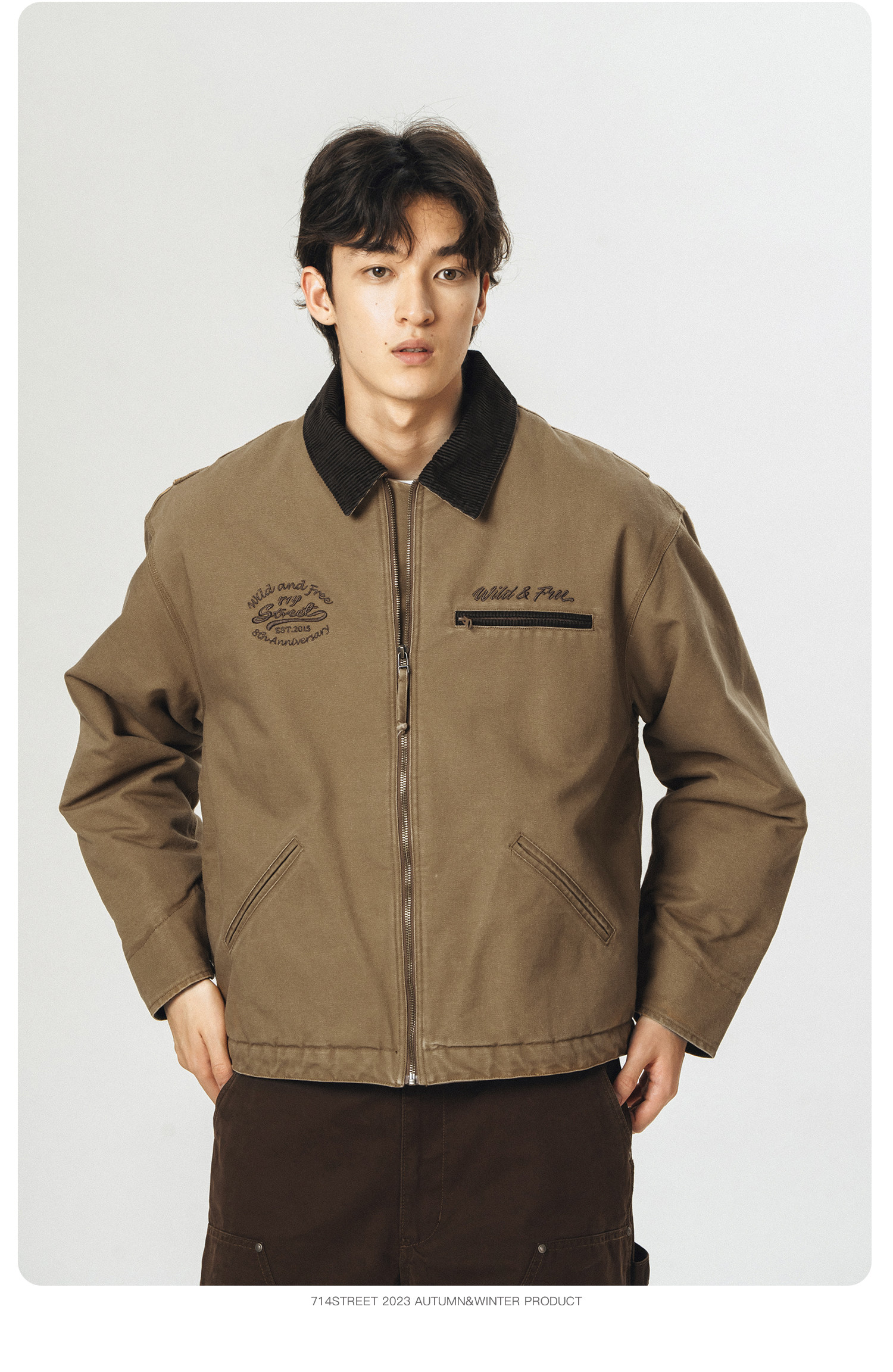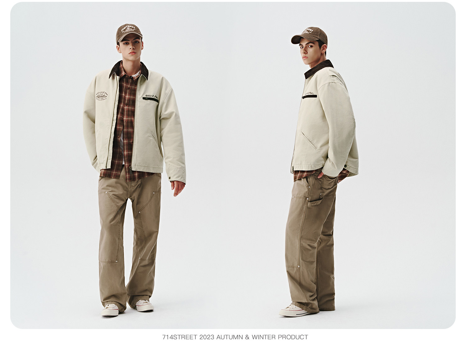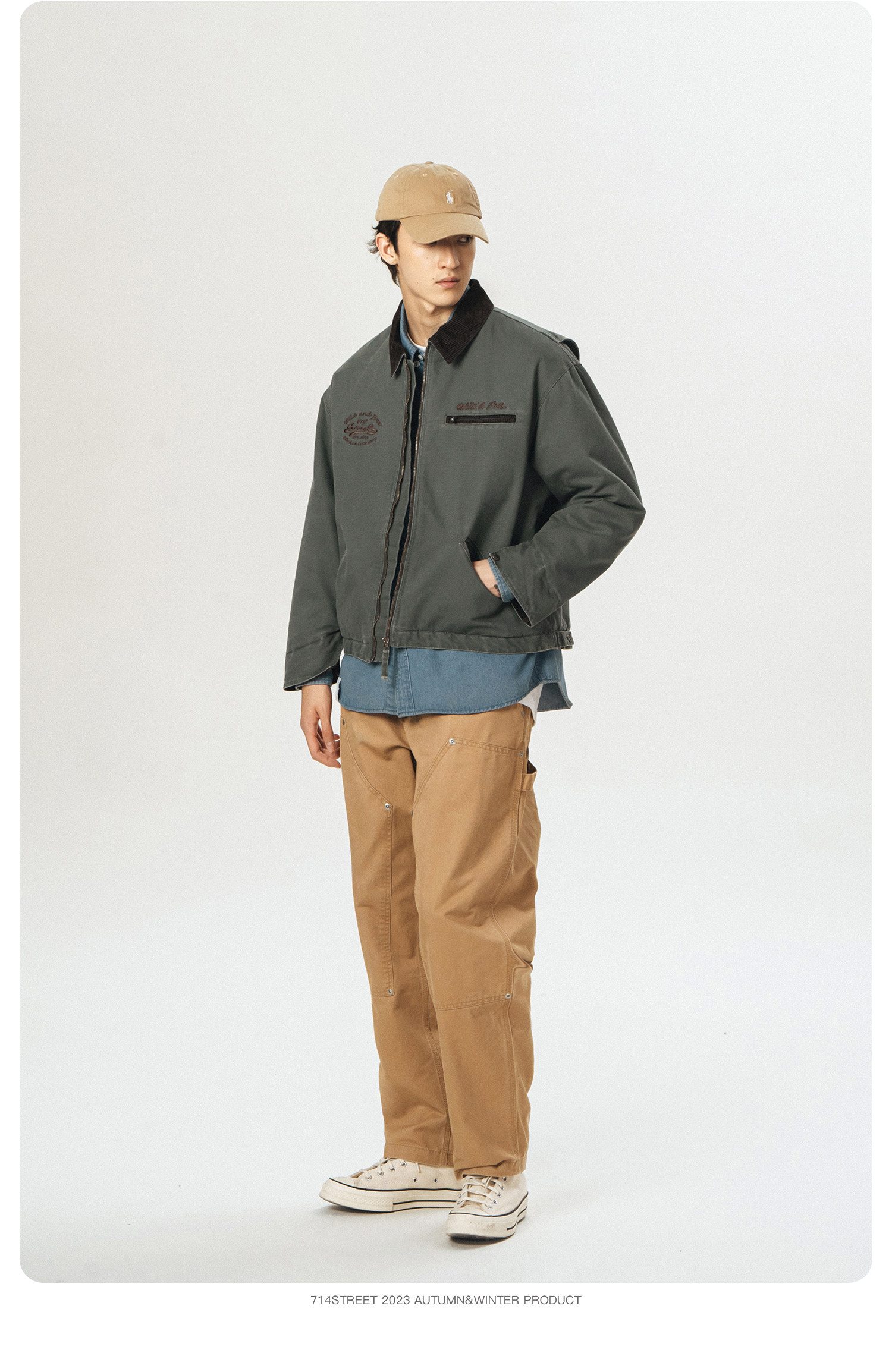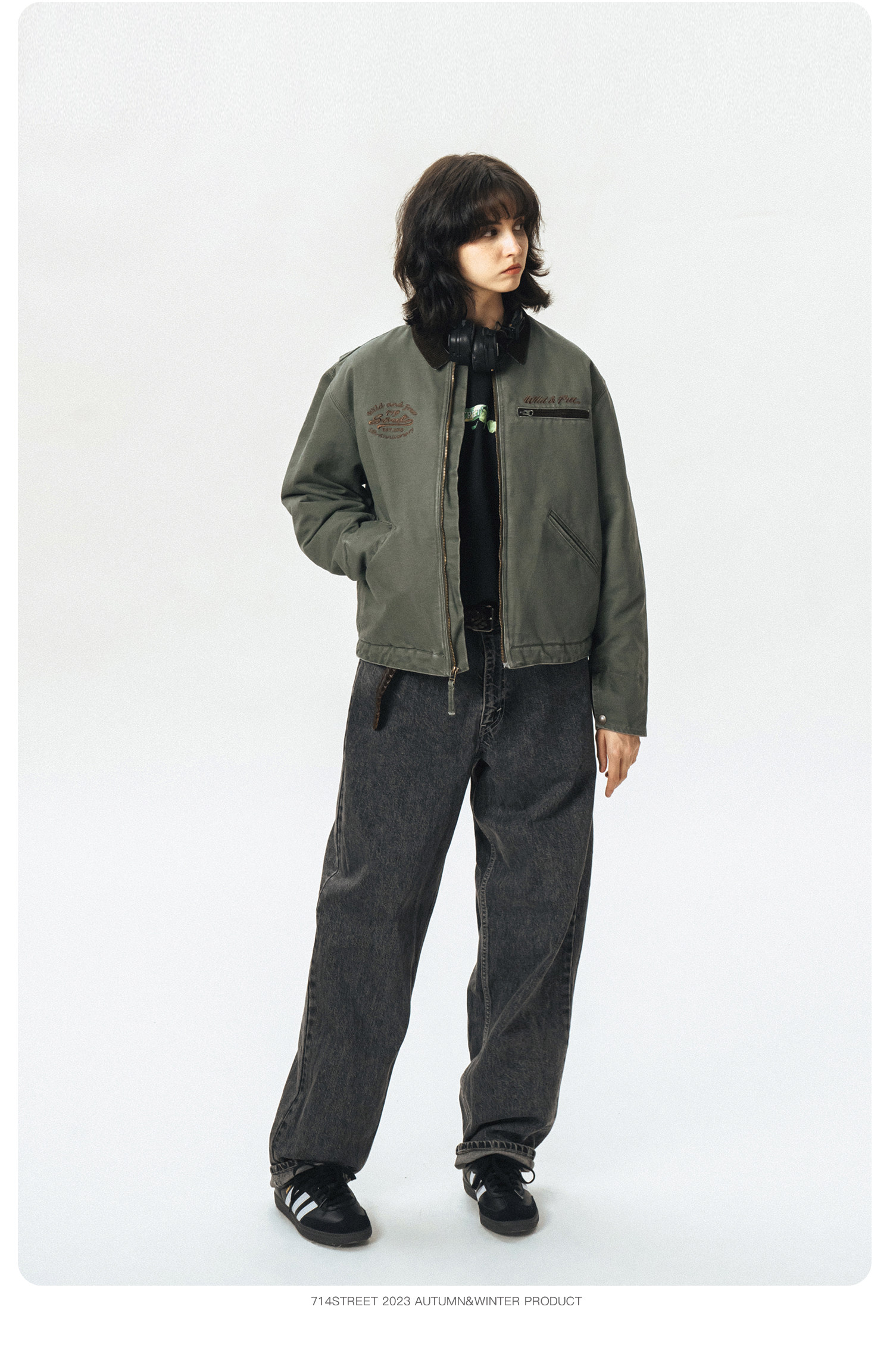 714street美式复古棉服男2024秋冬新款潮牌情侣装底特律夹克外套