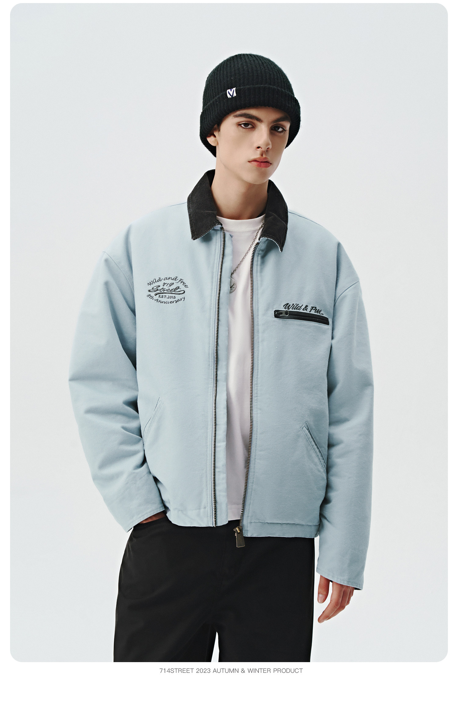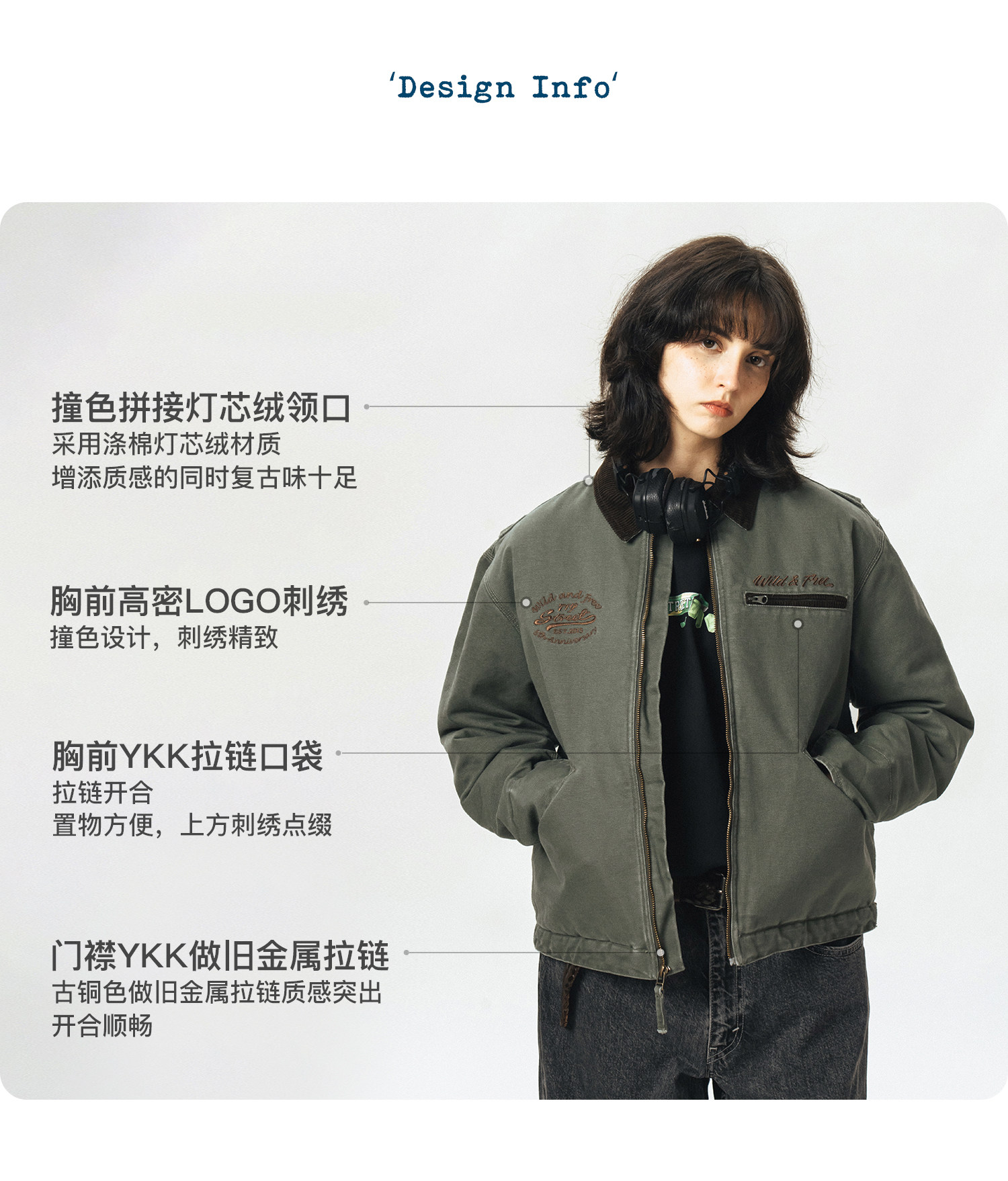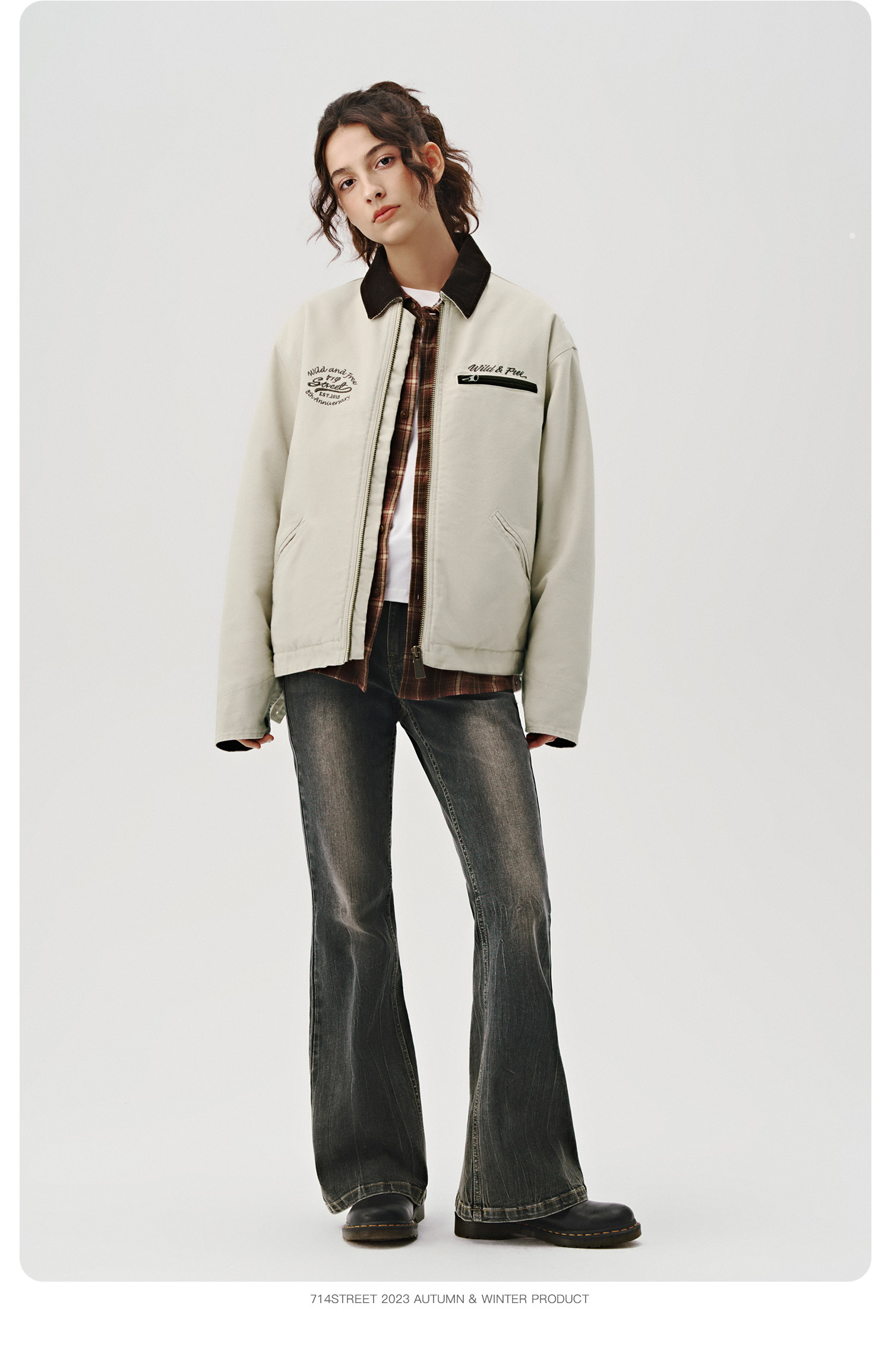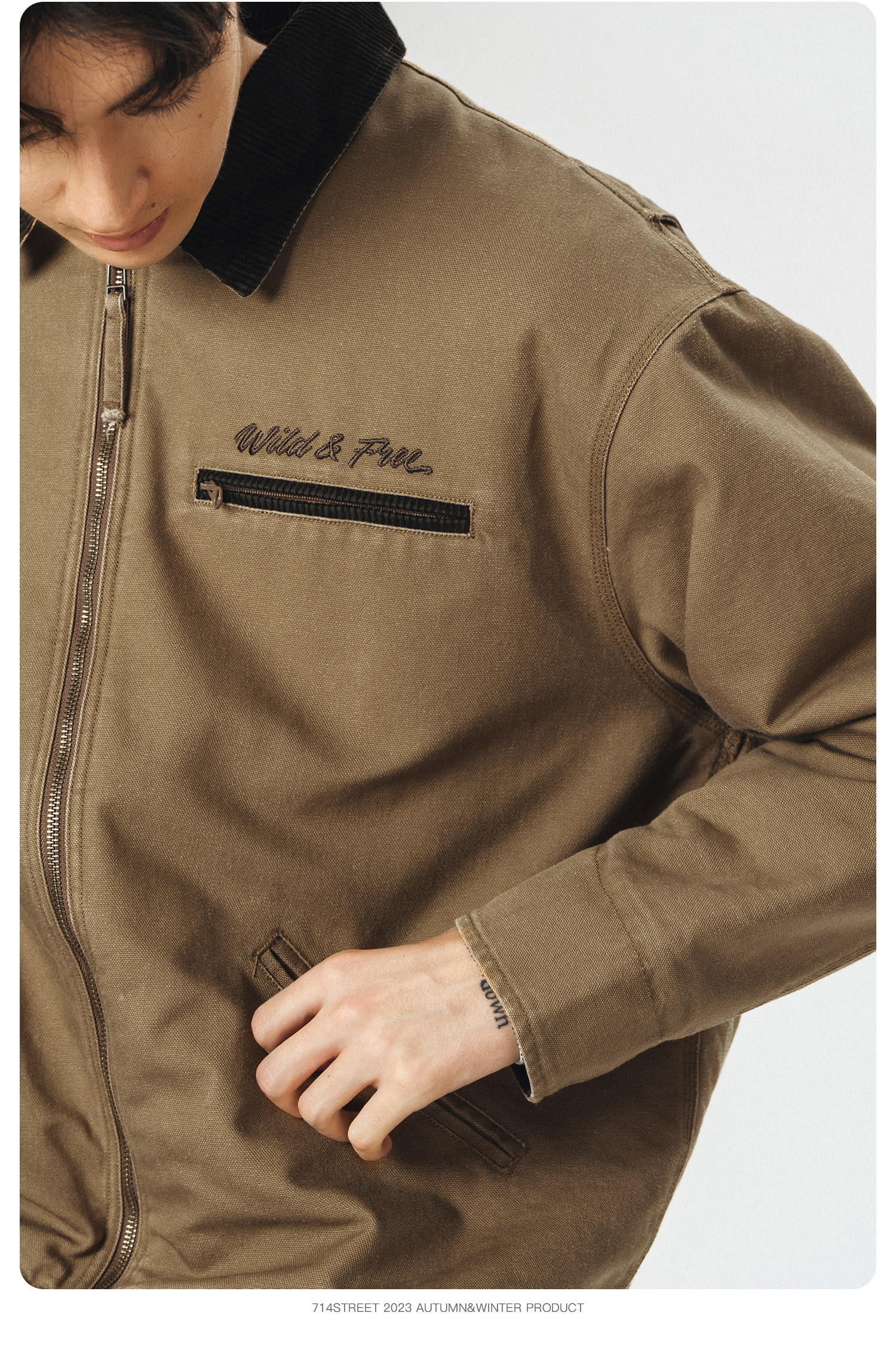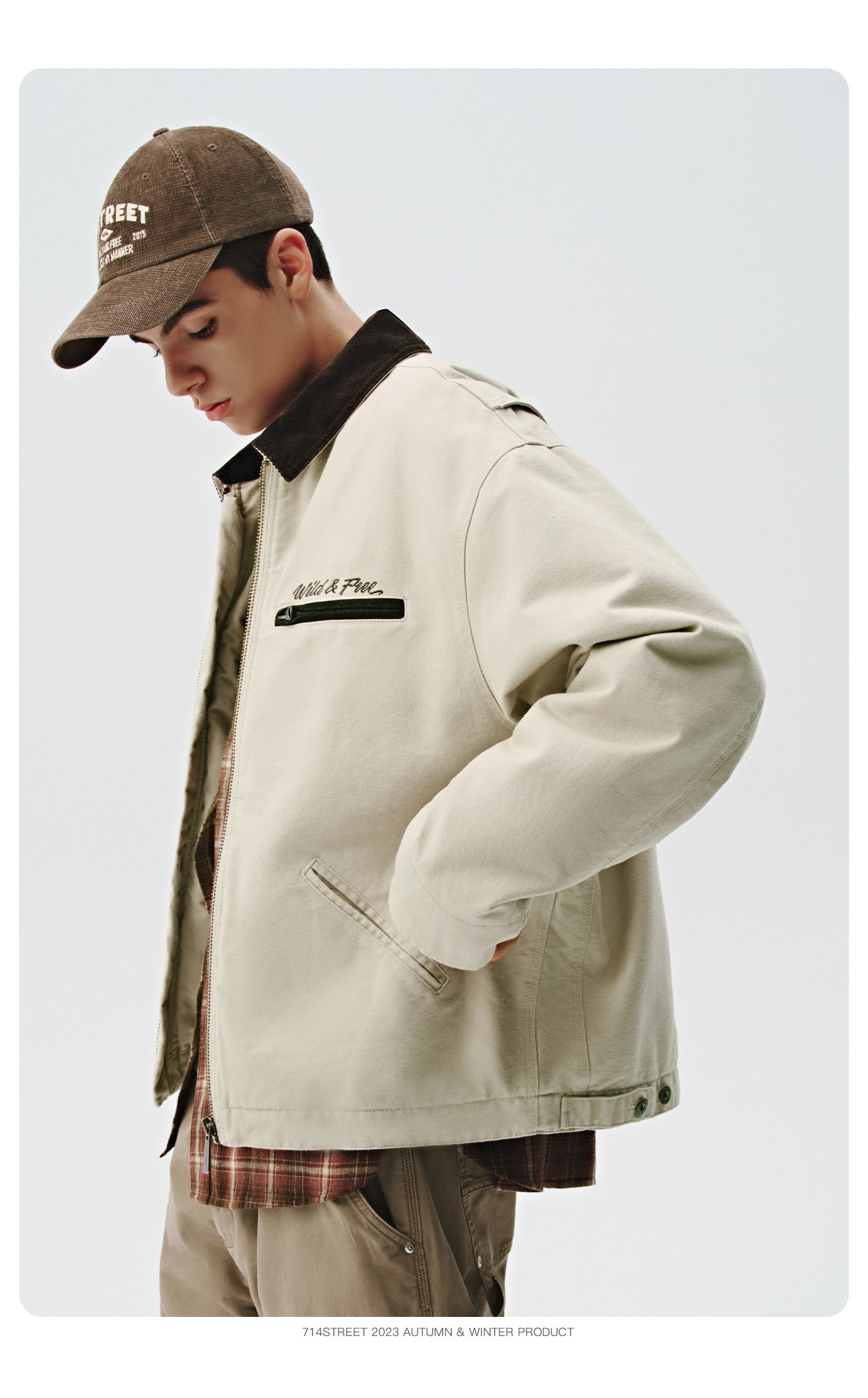 714street美式复古棉服男2024秋冬新款潮牌情侣装底特律夹克外套