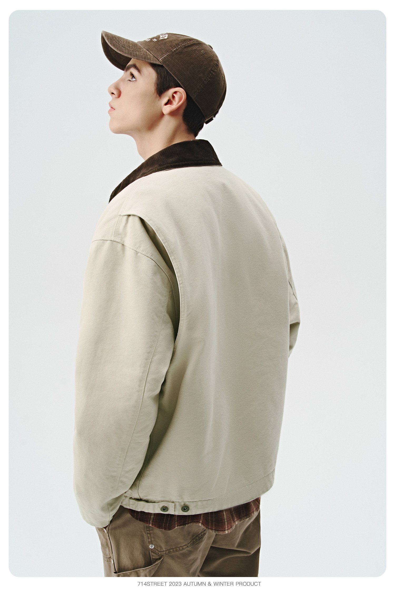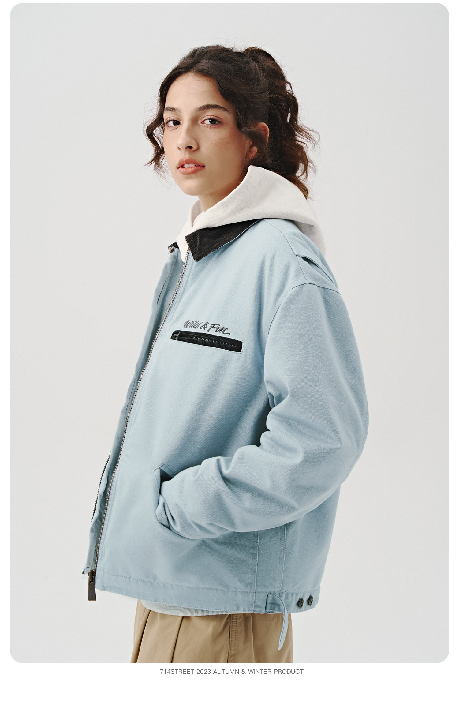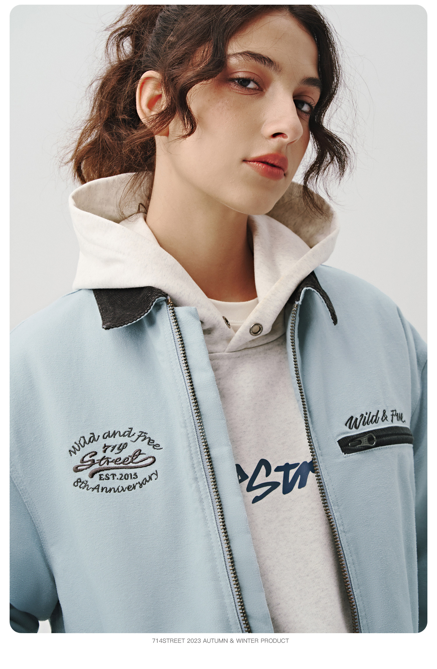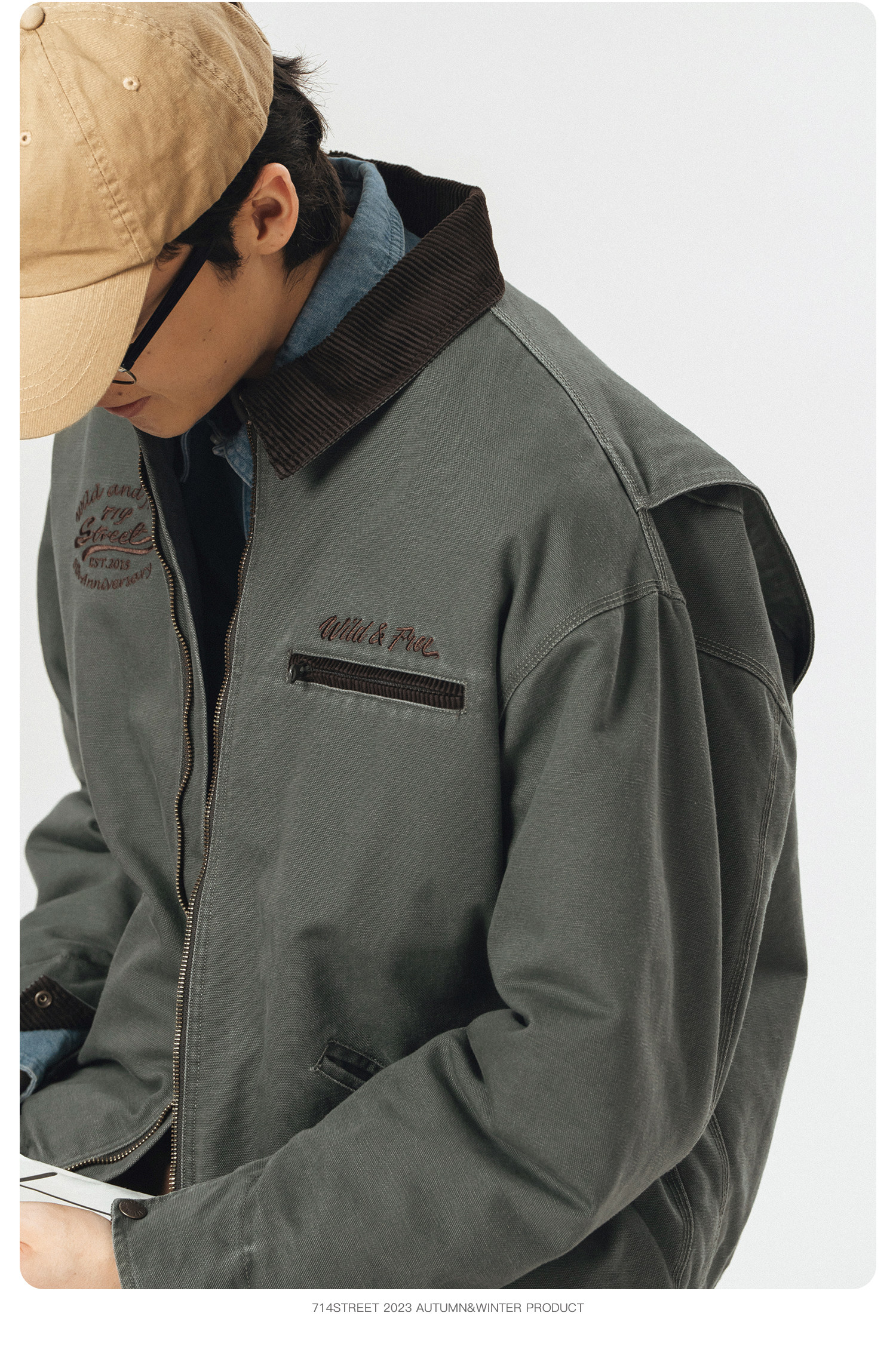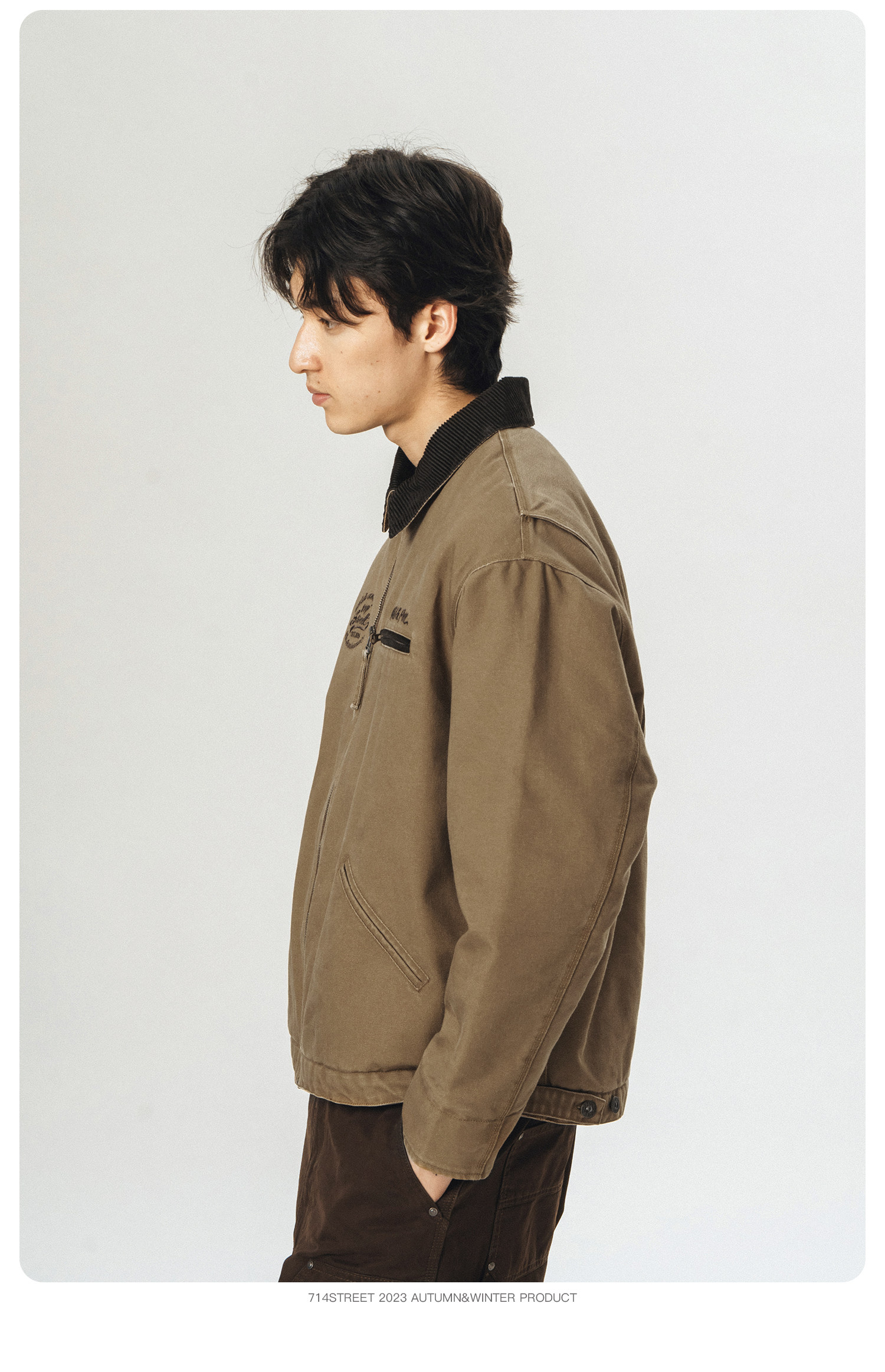 714street美式复古棉服男2024秋冬新款潮牌情侣装底特律夹克外套