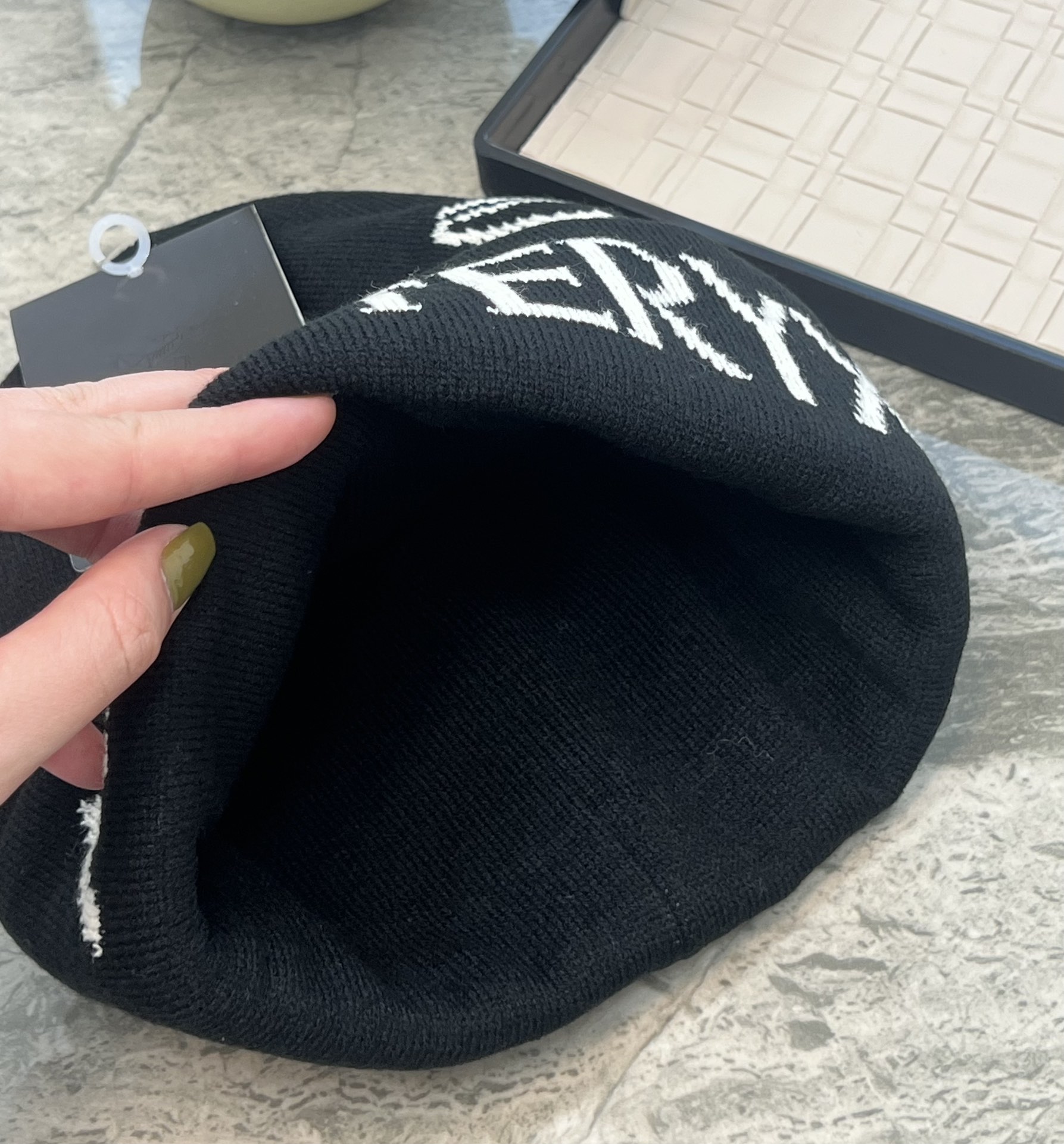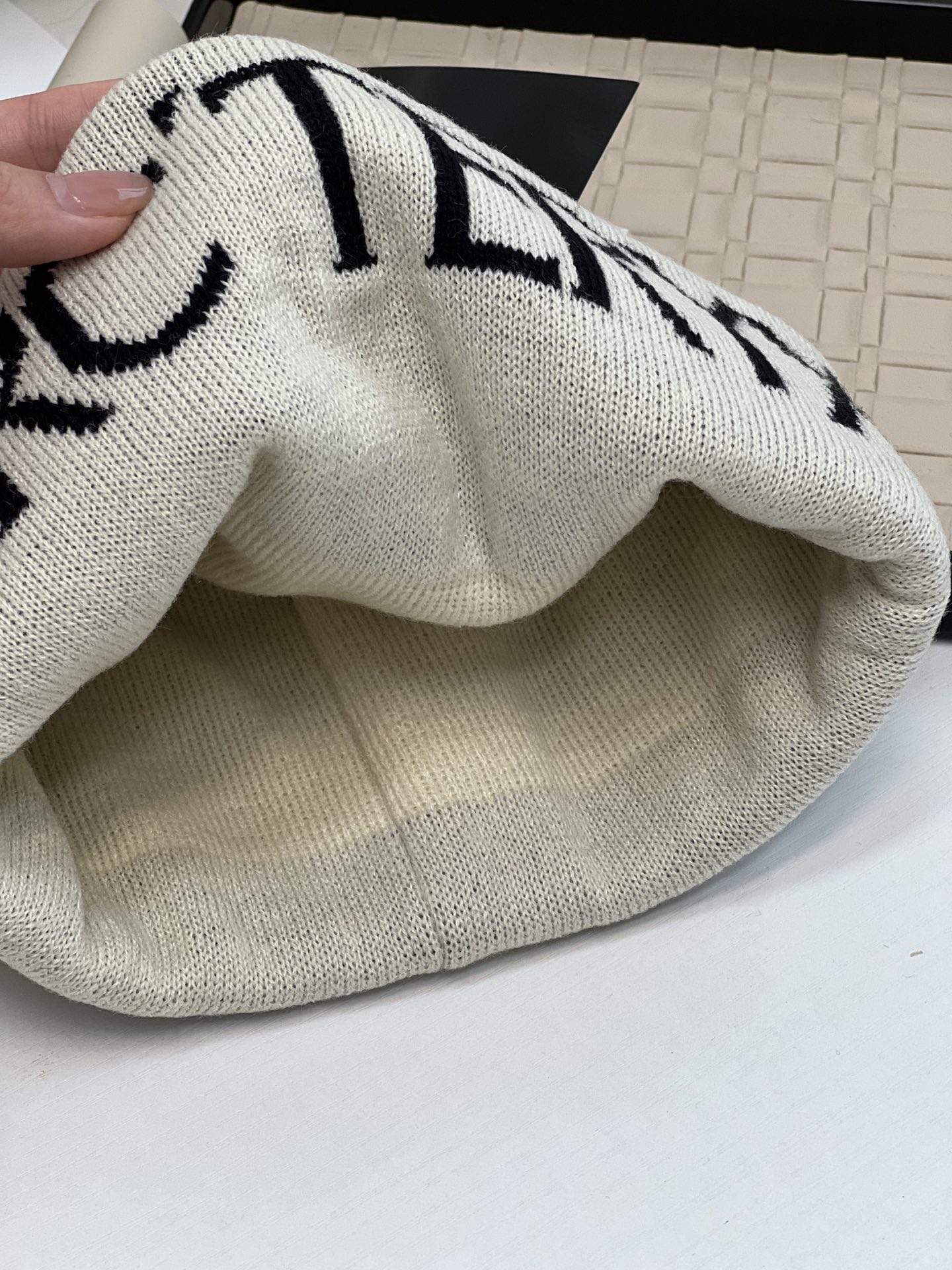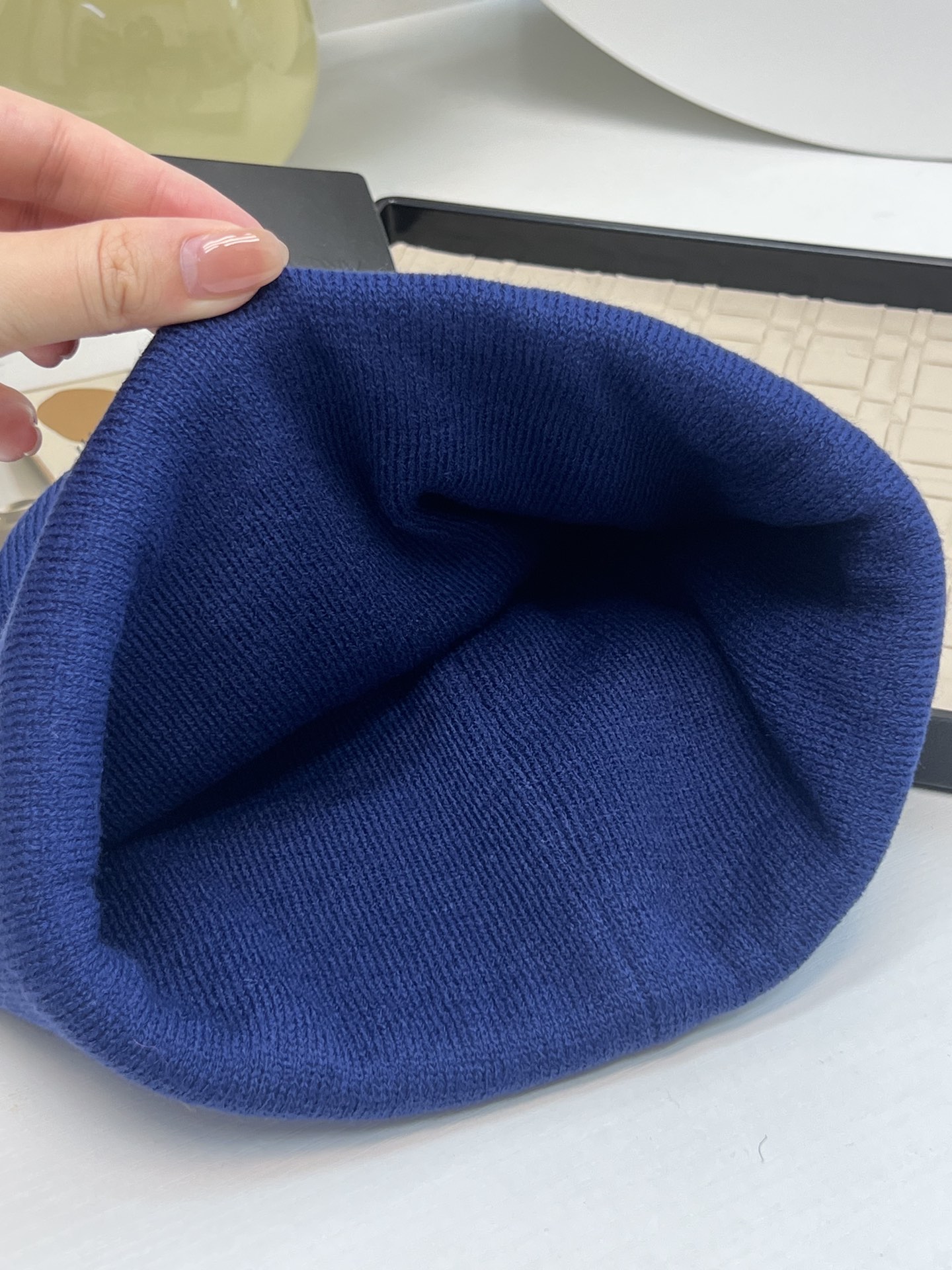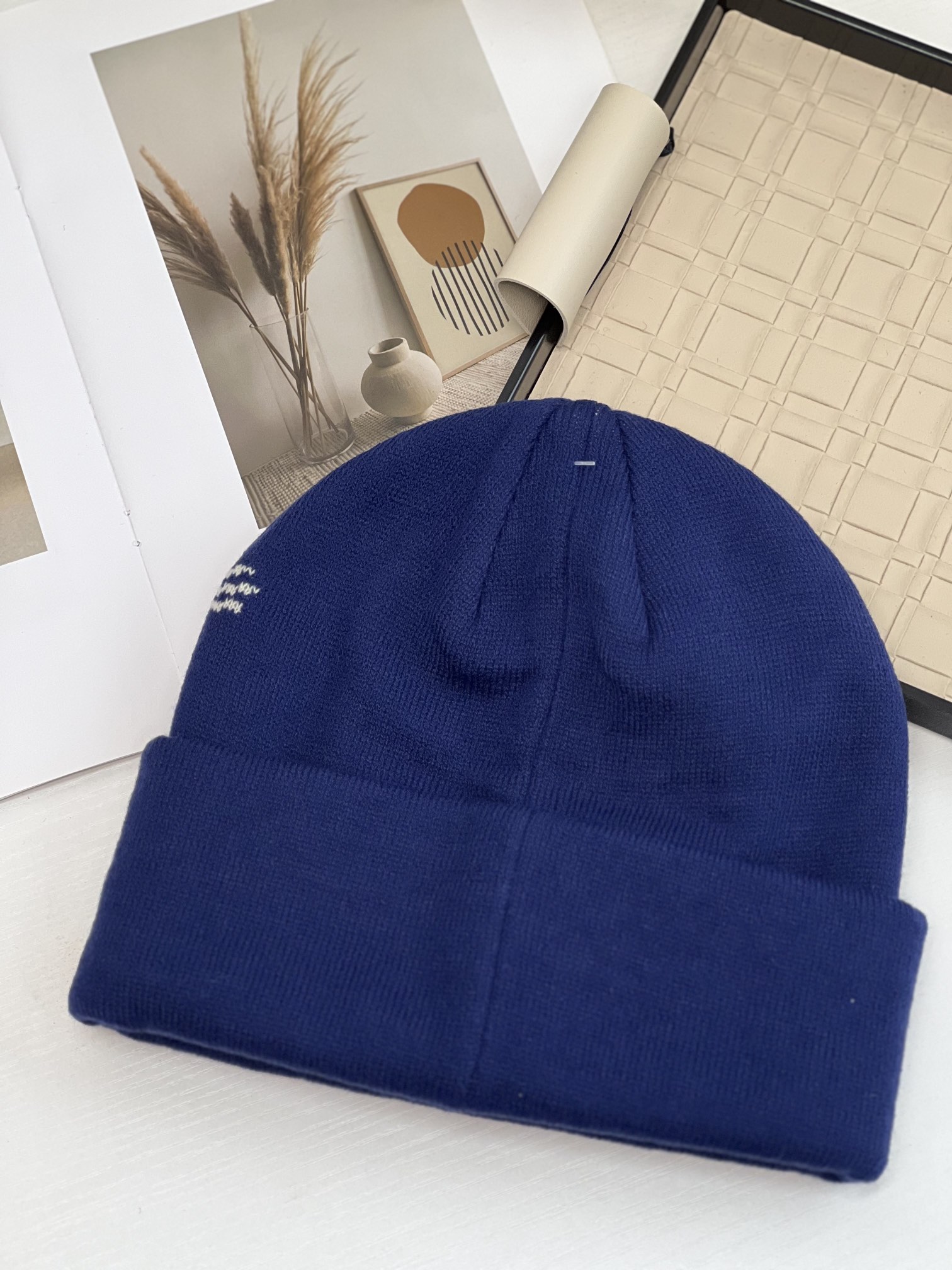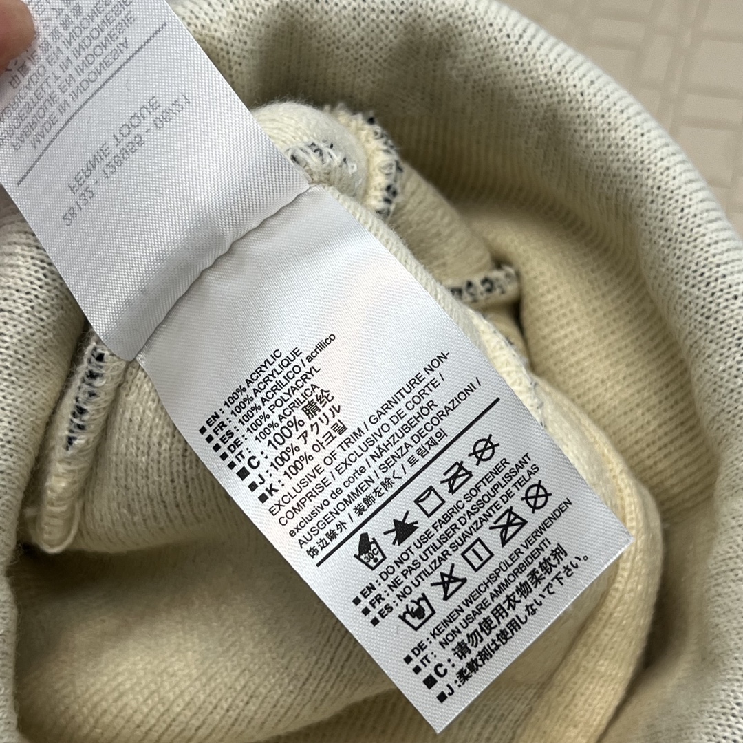 帽檐是直边,前面的品牌LOGO刺绣工艺,织线面料是Acrylic的,就是一种腈纶,非常像羊毛,但是比羊毛柔软蓬松,弹性也比羊毛好的多,也不会有刺扎感,戴起来超舒服的。