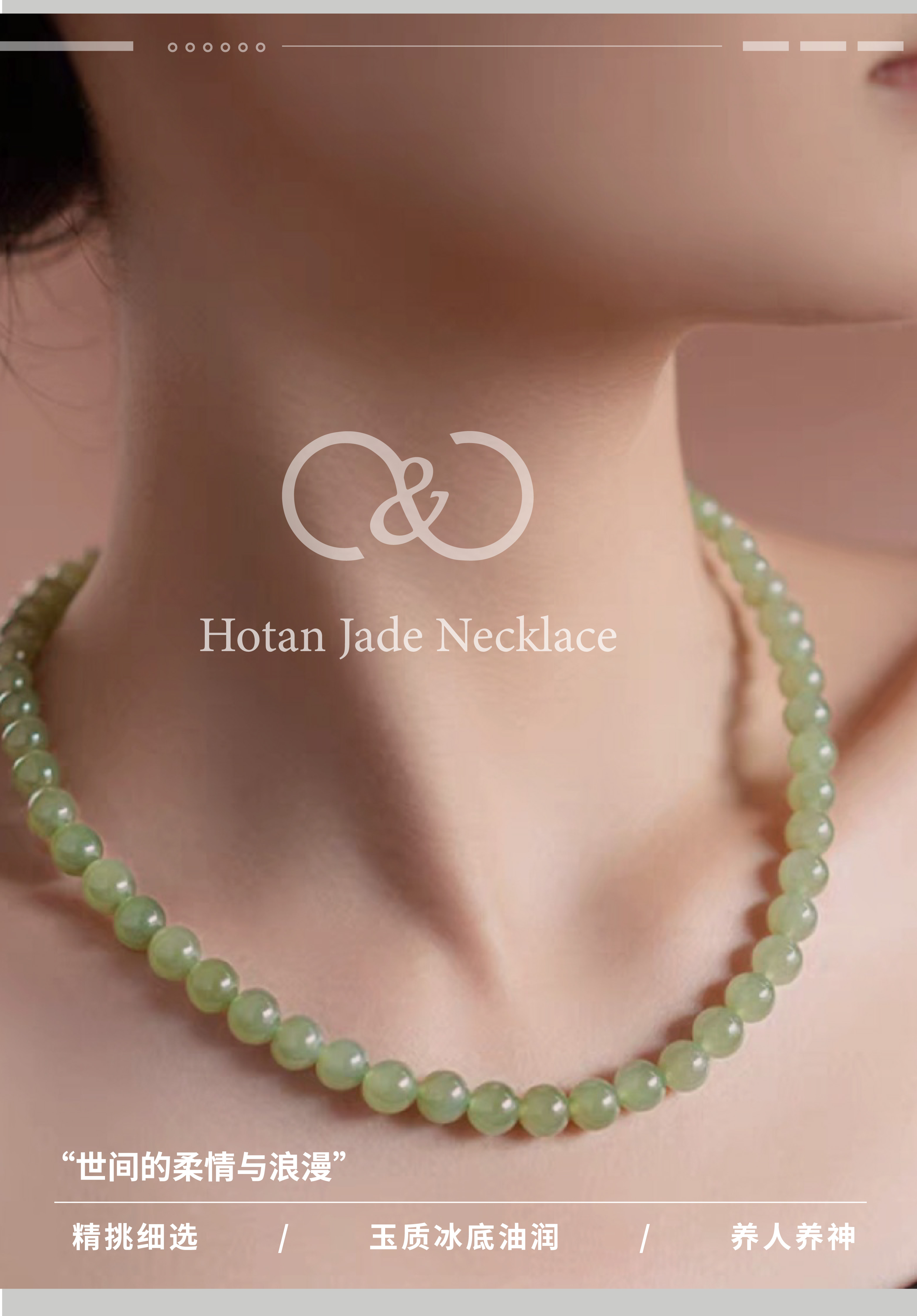 2️⃣CCNL002和田玉项链 :和田玉晴水,珠径:8mm,约长45cm
