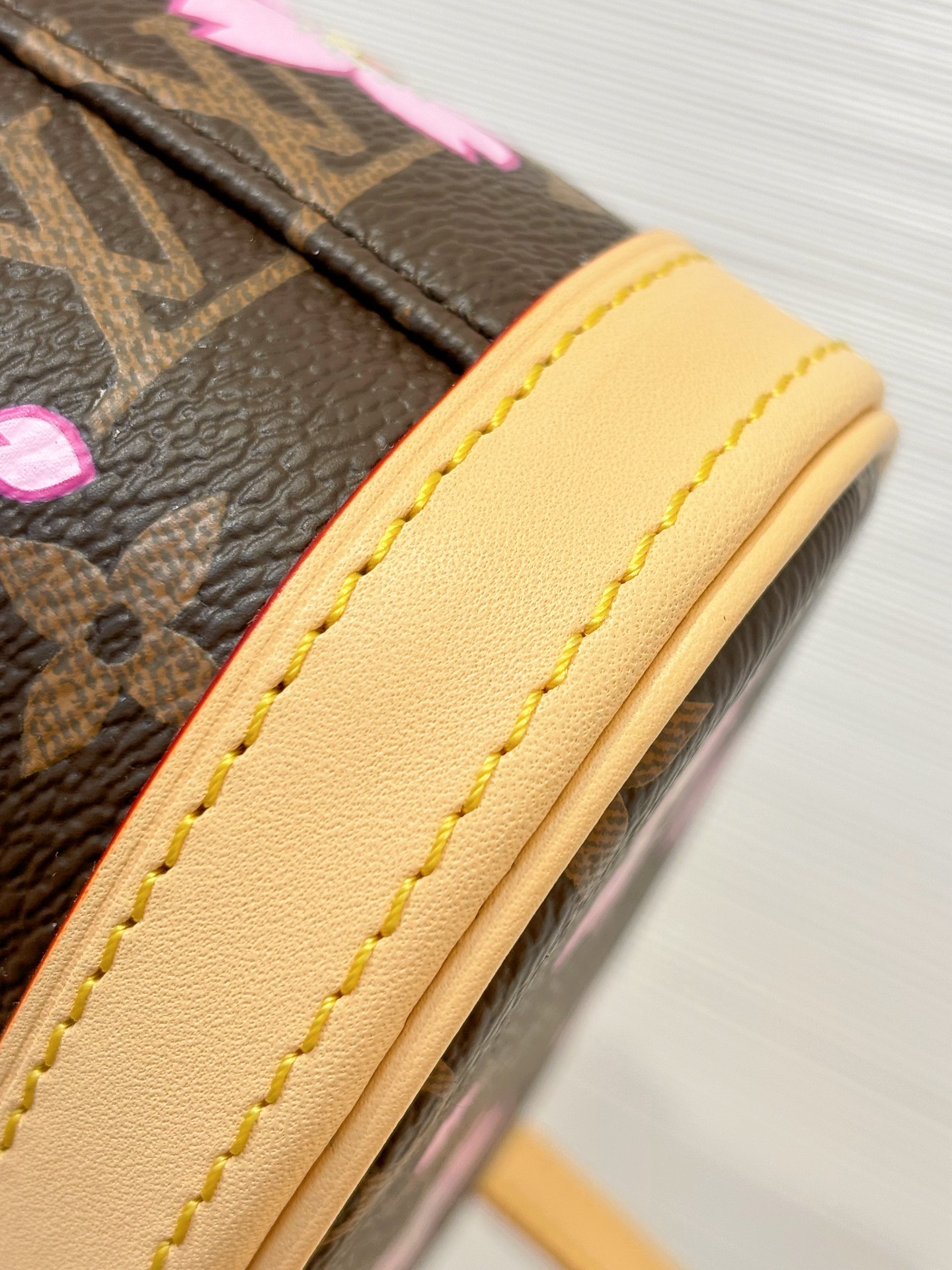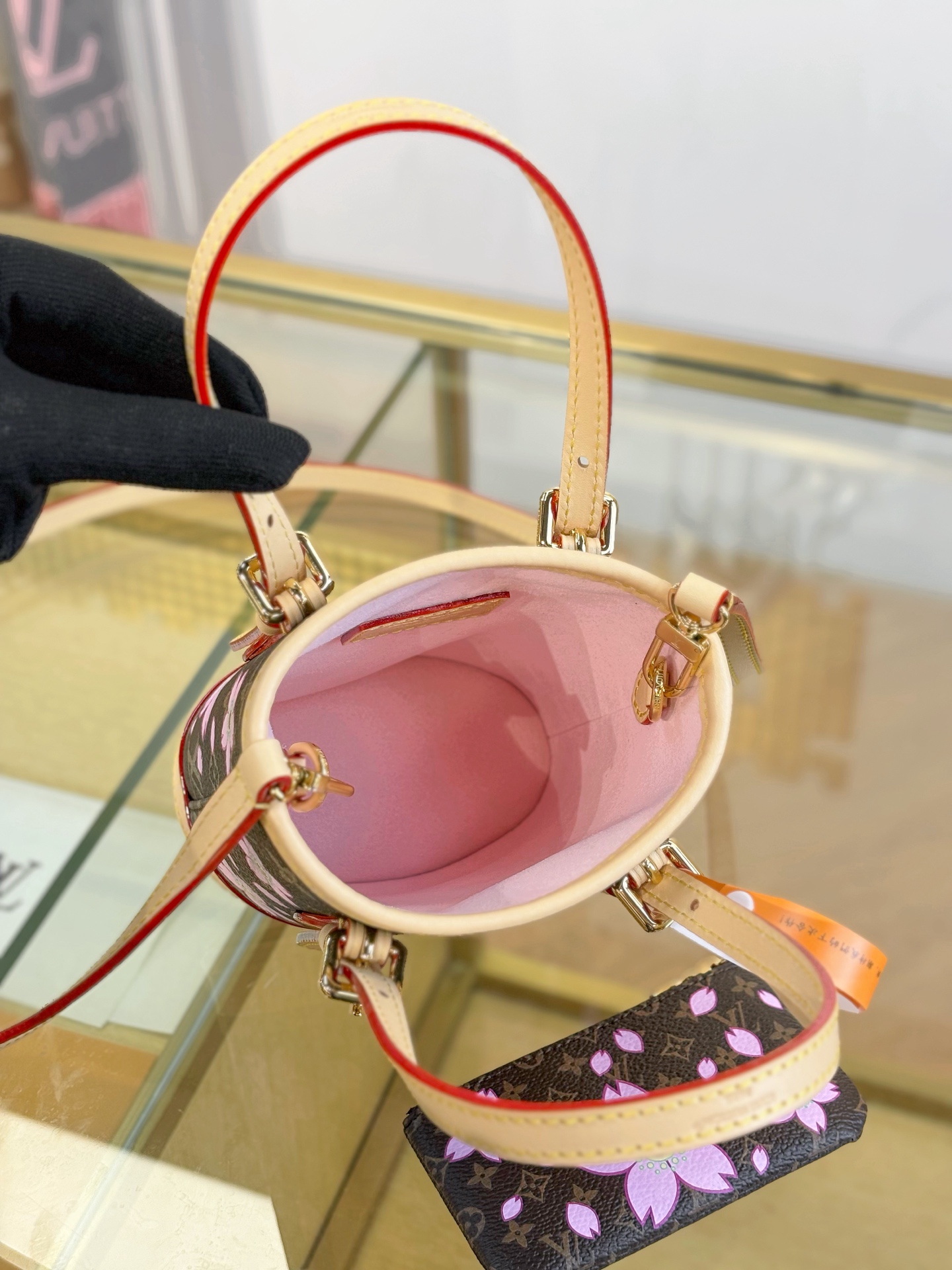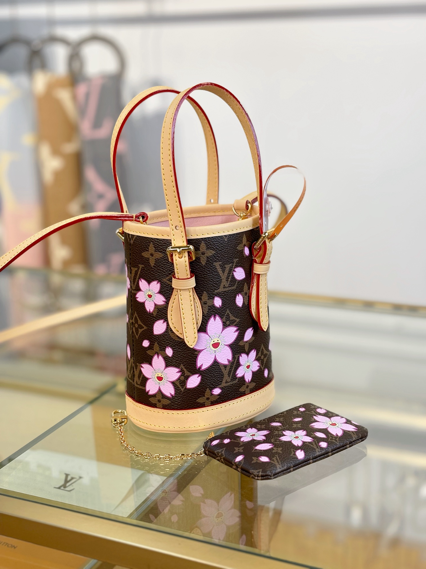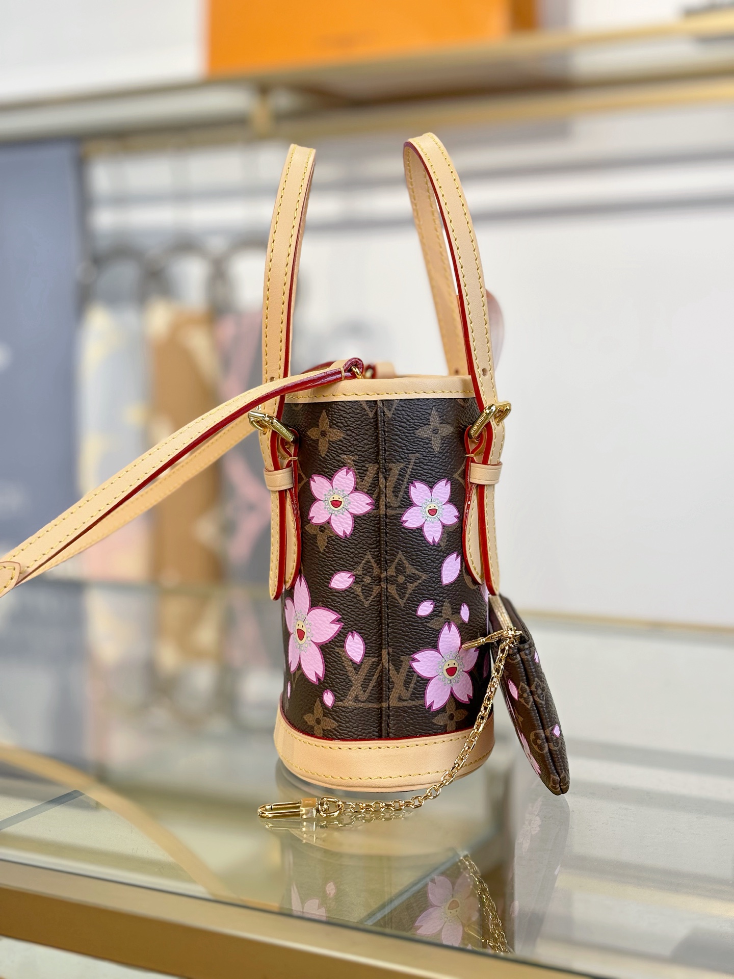 LOUIS VUITTON x 村上隆 联名款 CHERRY BLOSSOM樱花系列Nano Bucket 可调节肩带 Monogram 涂层帆布 水桶包单肩手提包 nano 女款 棕色