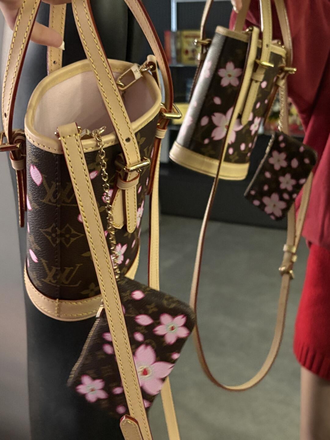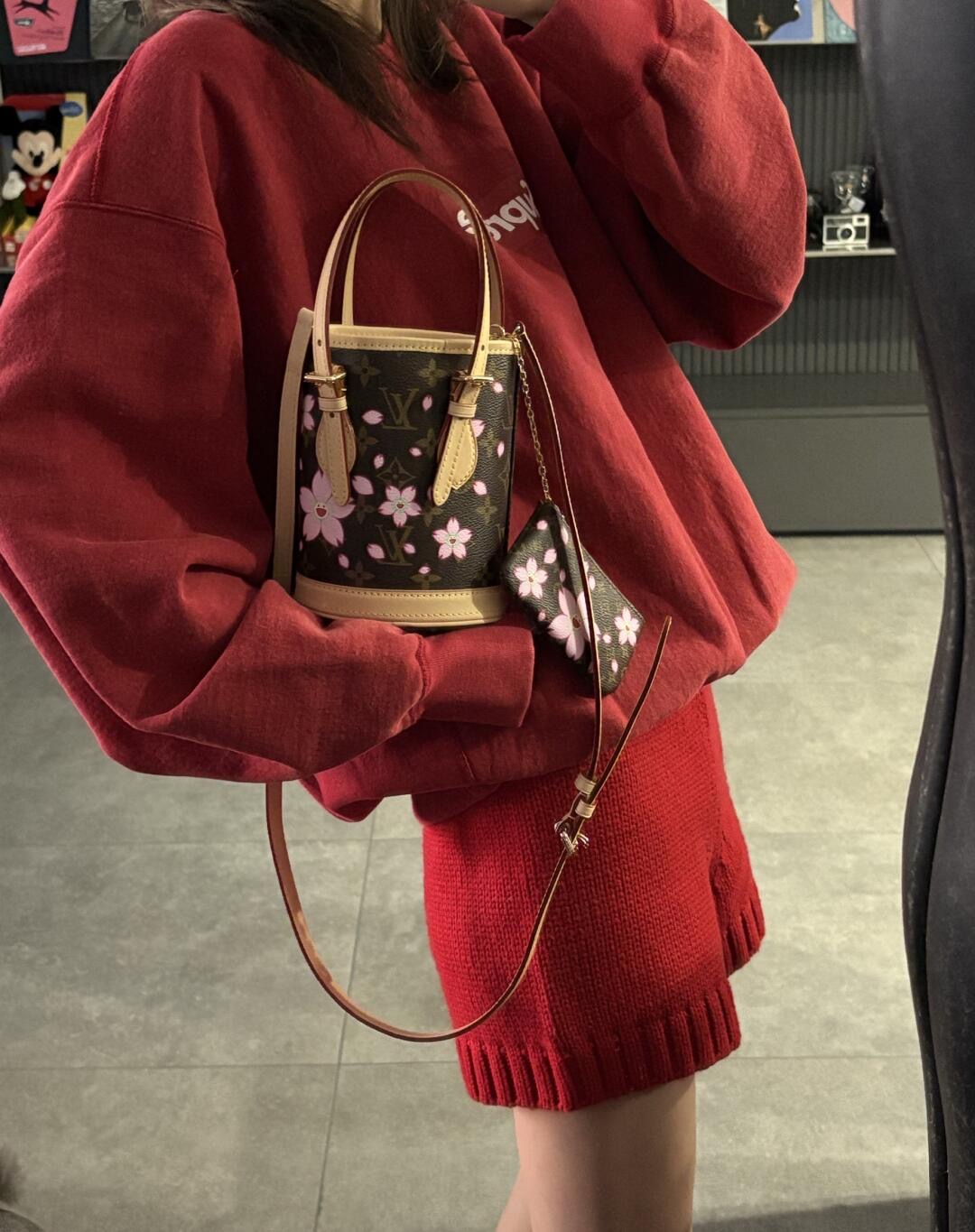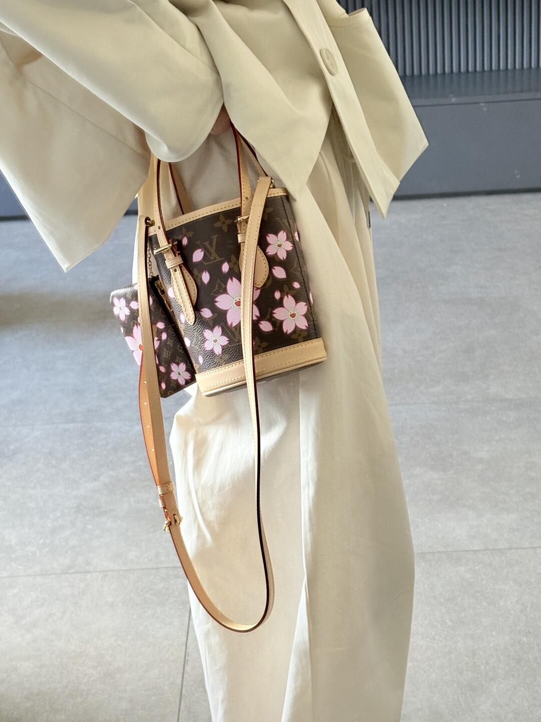 LOUIS VUITTON x 村上隆 联名款 CHERRY BLOSSOM樱花系列Nano Bucket 可调节肩带 Monogram 涂层帆布 水桶包单肩手提包 nano 女款 棕色