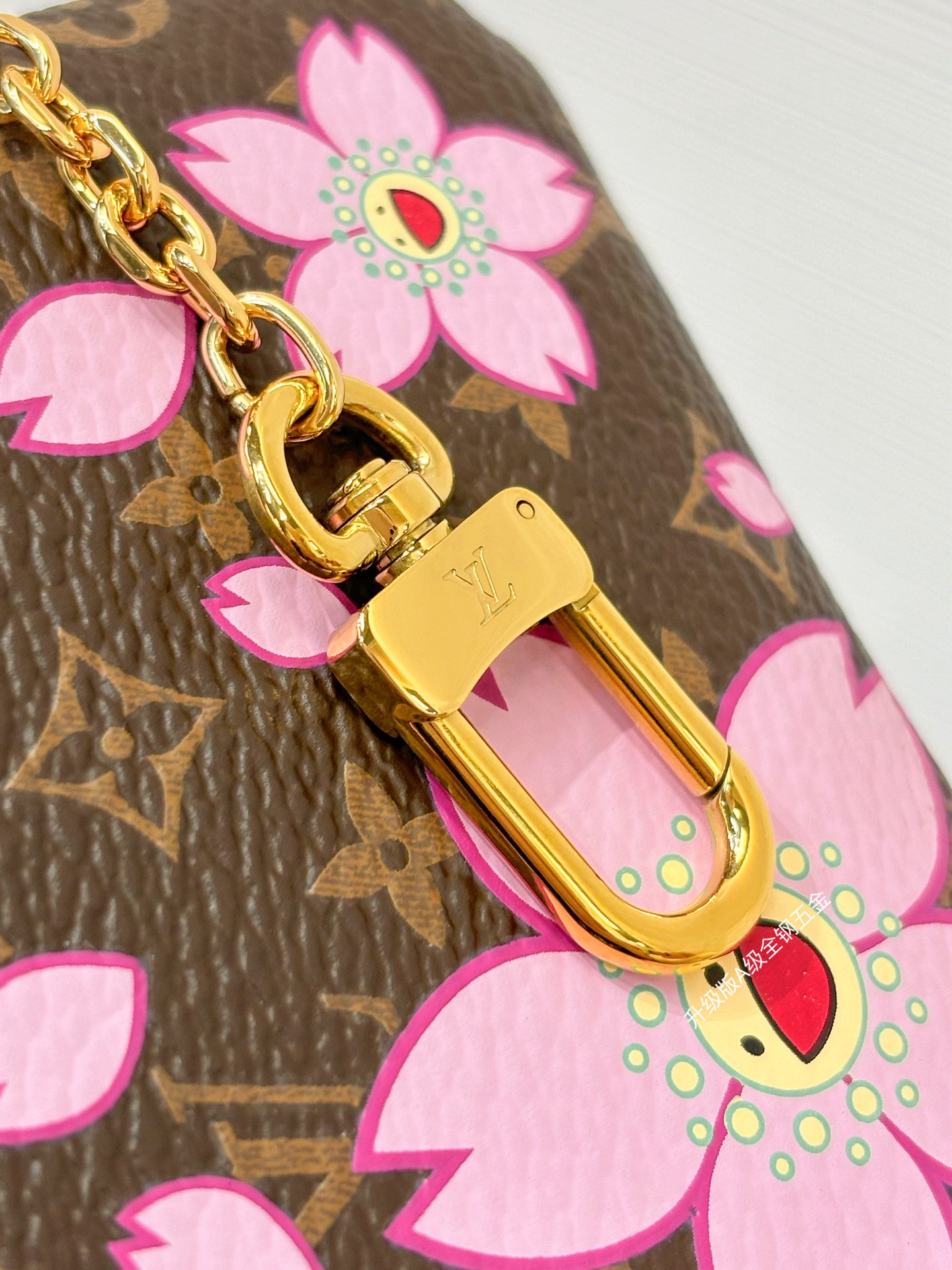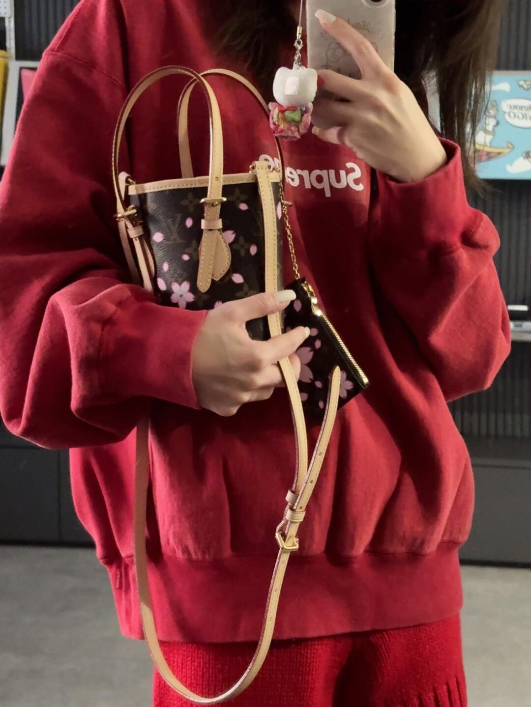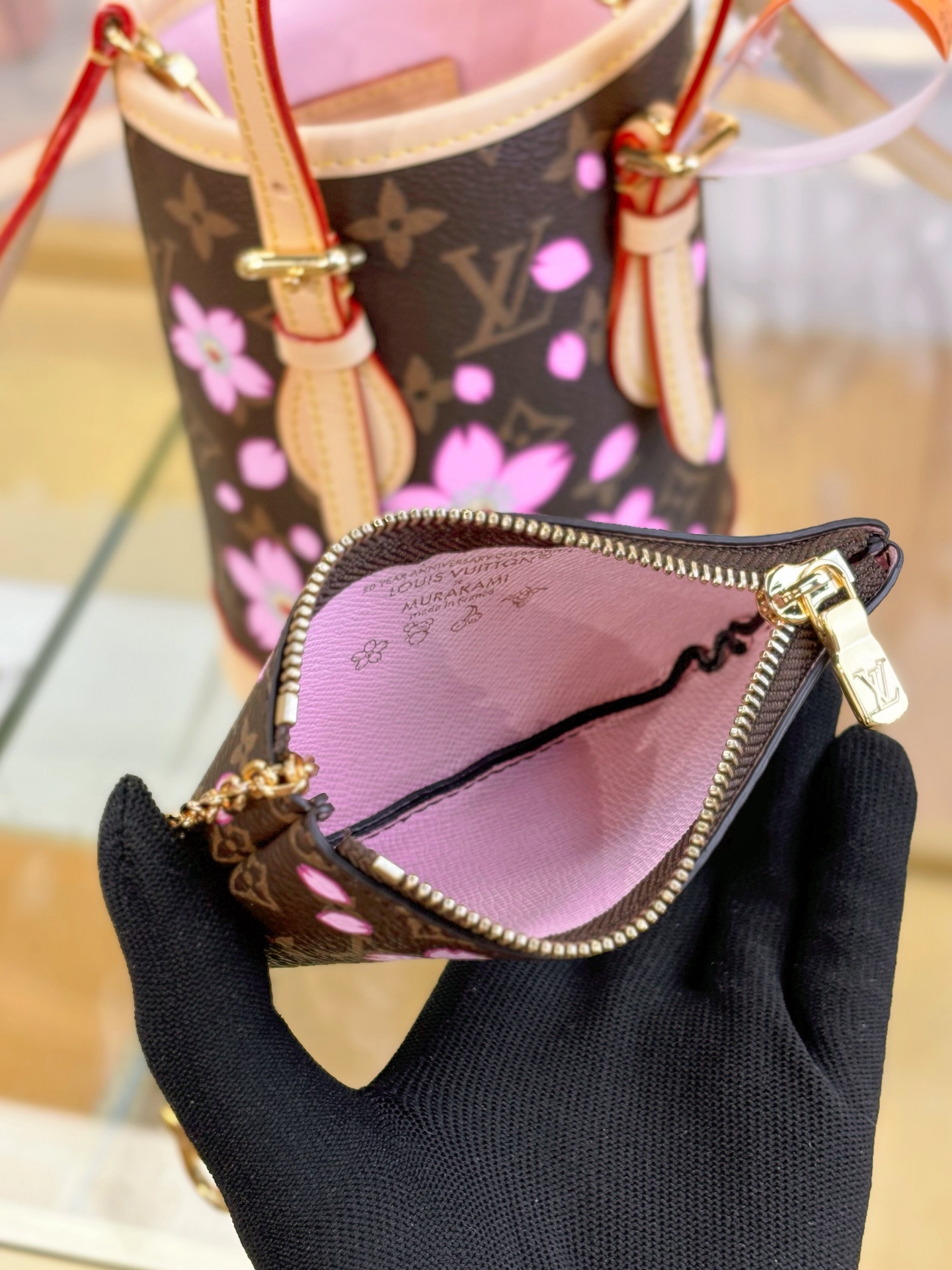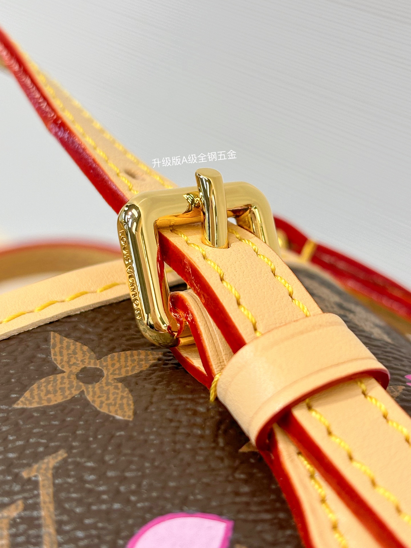 LOUIS VUITTON x 村上隆 联名款 CHERRY BLOSSOM樱花系列Nano Bucket 可调节肩带 Monogram 涂层帆布 水桶包单肩手提包 nano 女款 棕色
