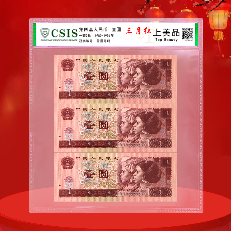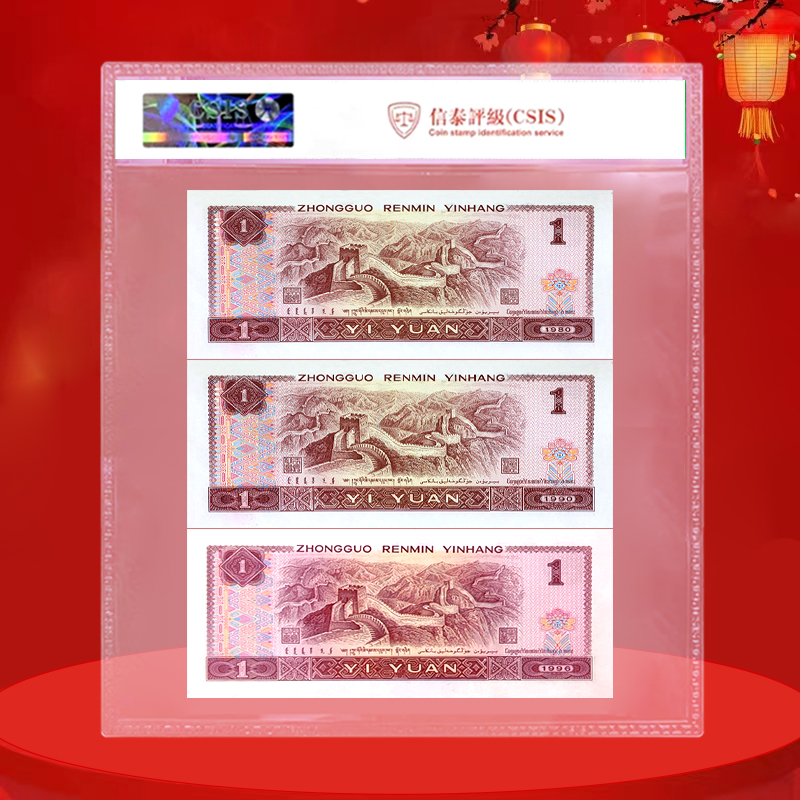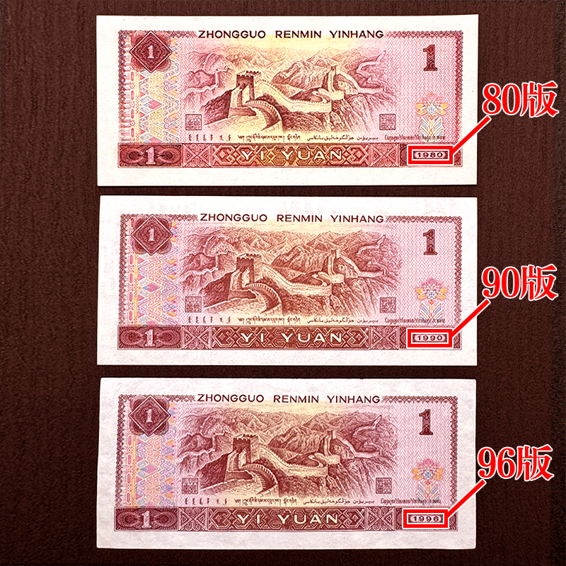 第四套人民币三月红1元 1980版、1990版、1996版三枚套装