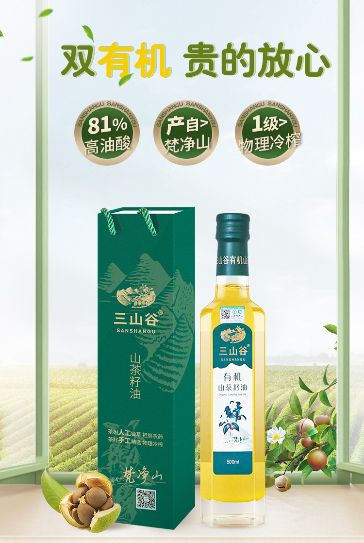 贵州铜仁 三山谷有机茶籽油 500ml