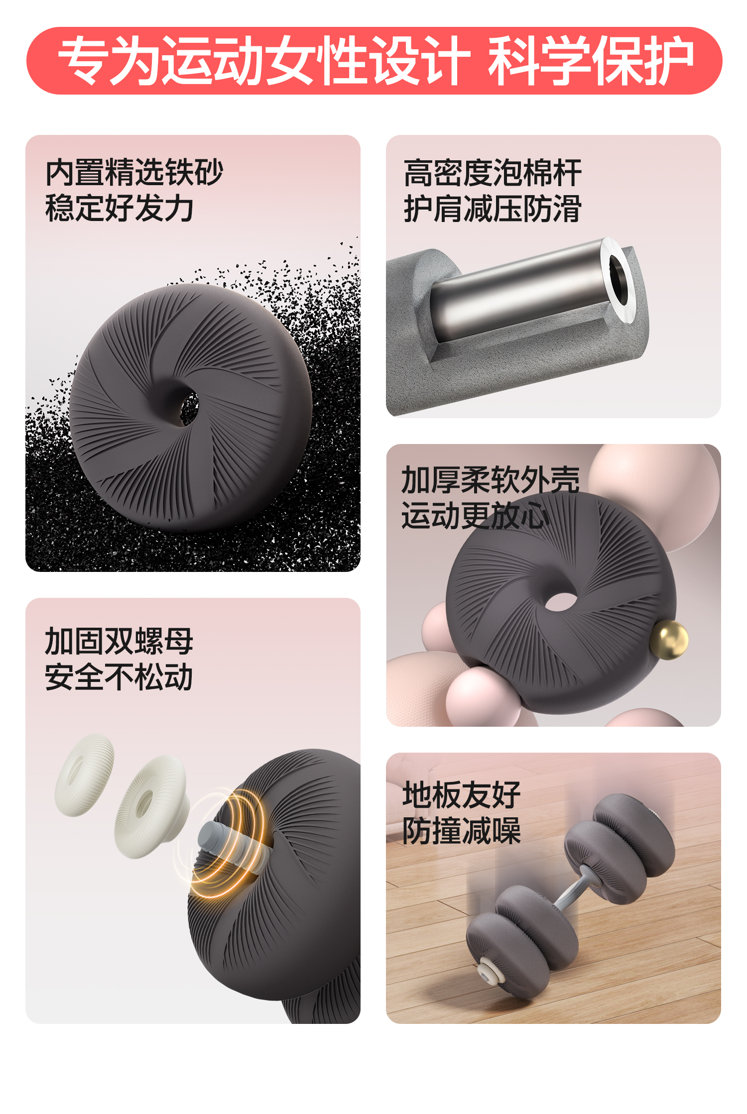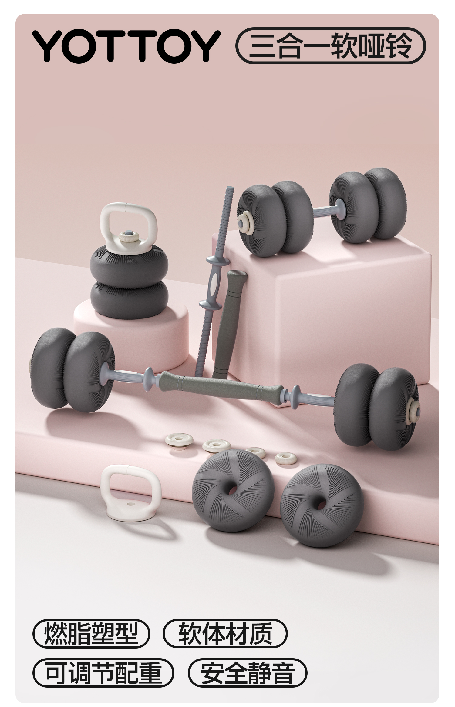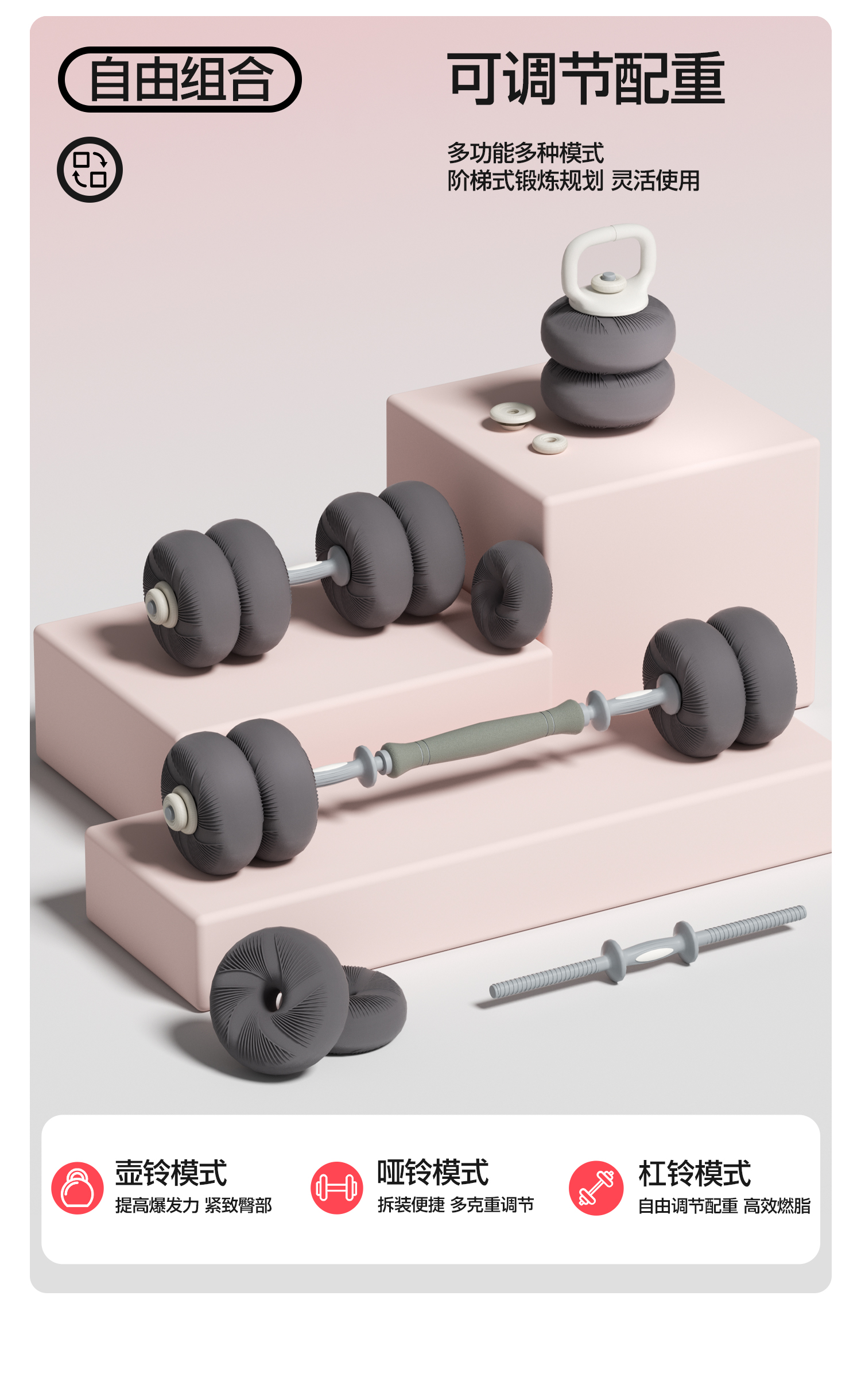 软哑铃可调节重量壶铃女士健身家用器材杠铃片5kg一对力量训练新