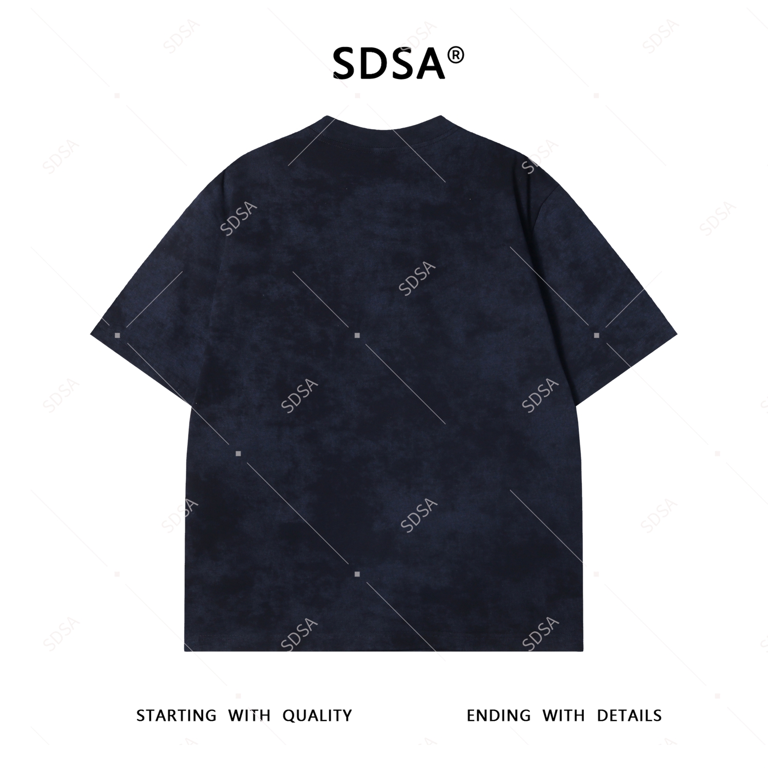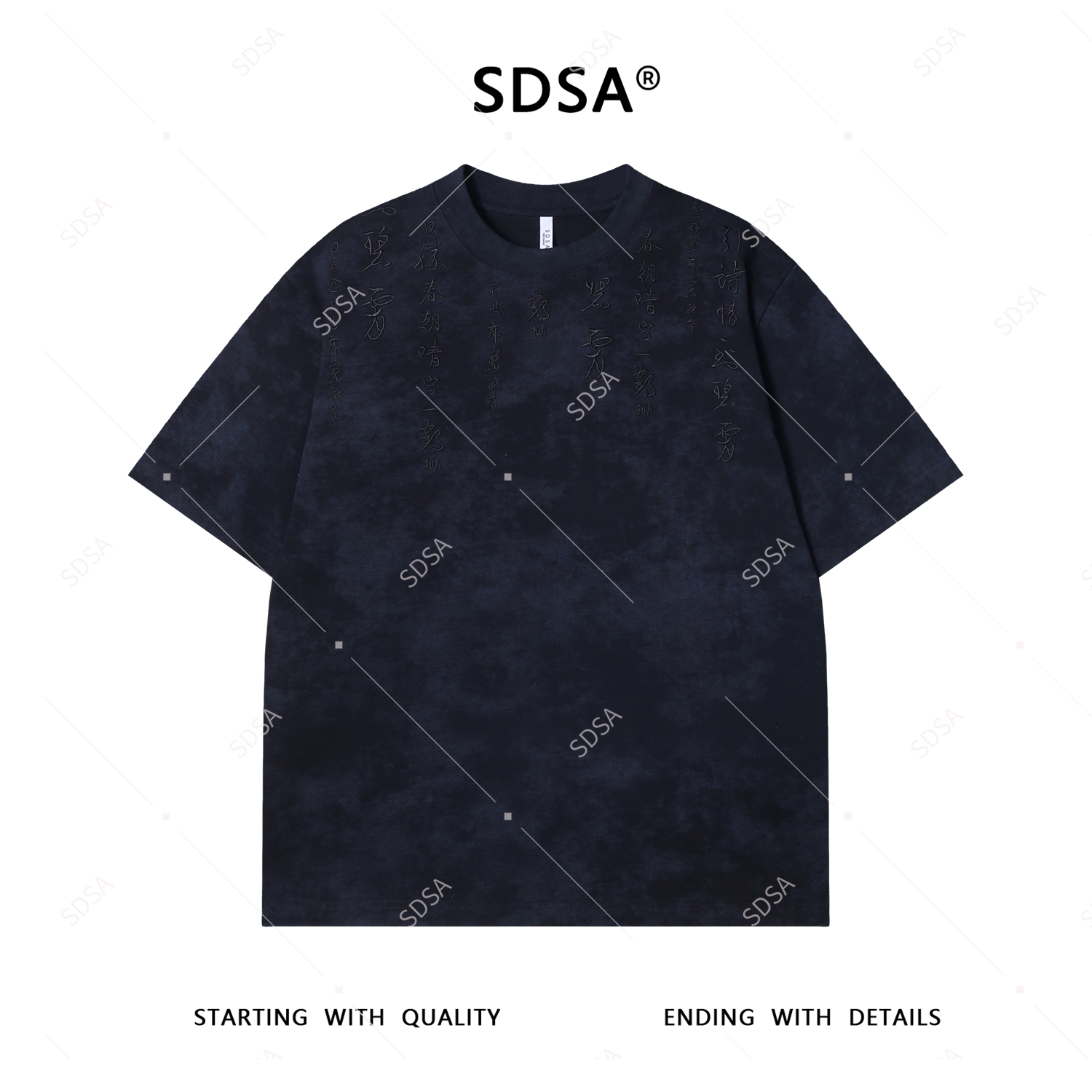 T3747夏季高级感新款男士扎染文字刺绣短袖T恤简约百搭圆领宽松上衣