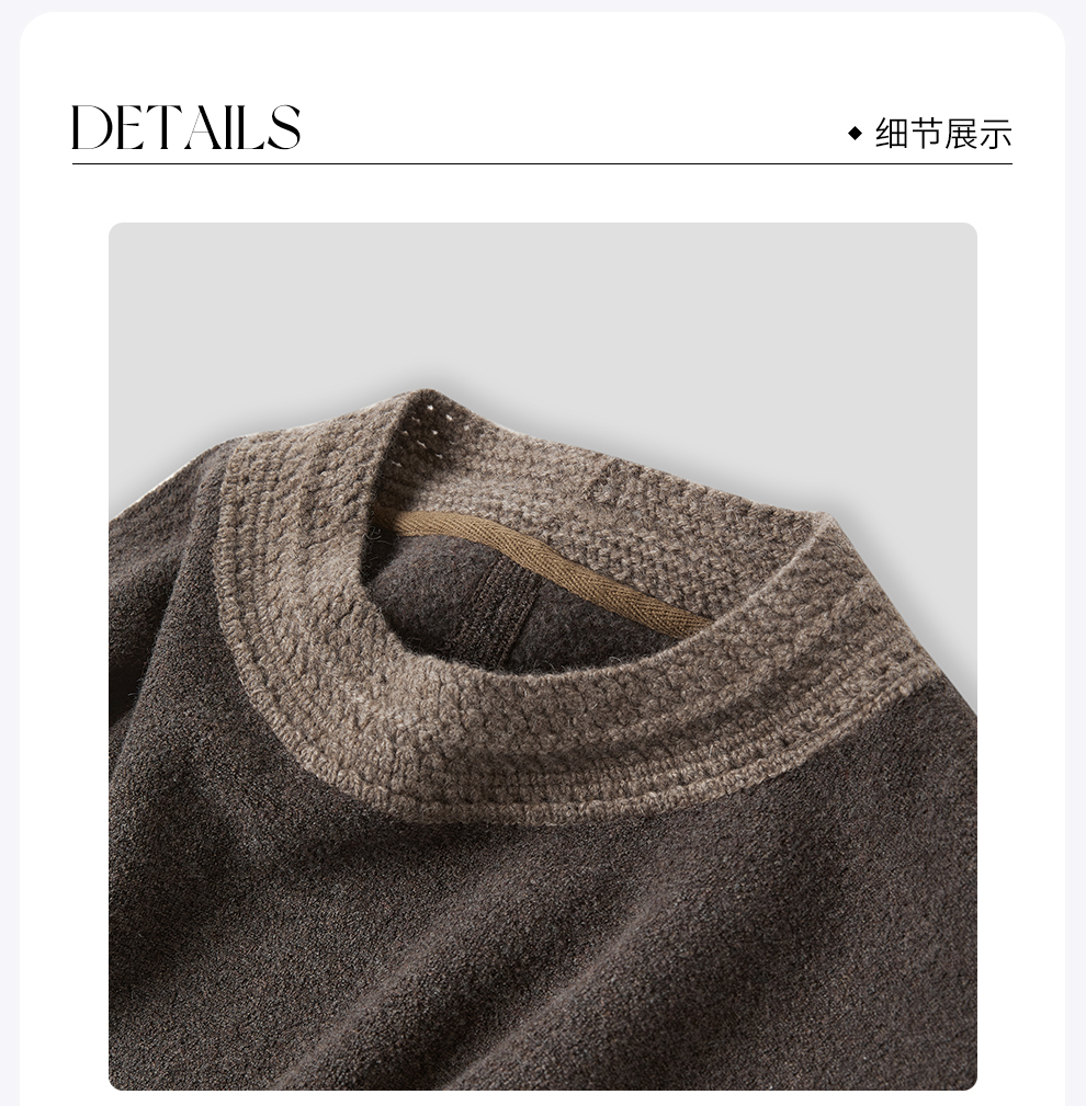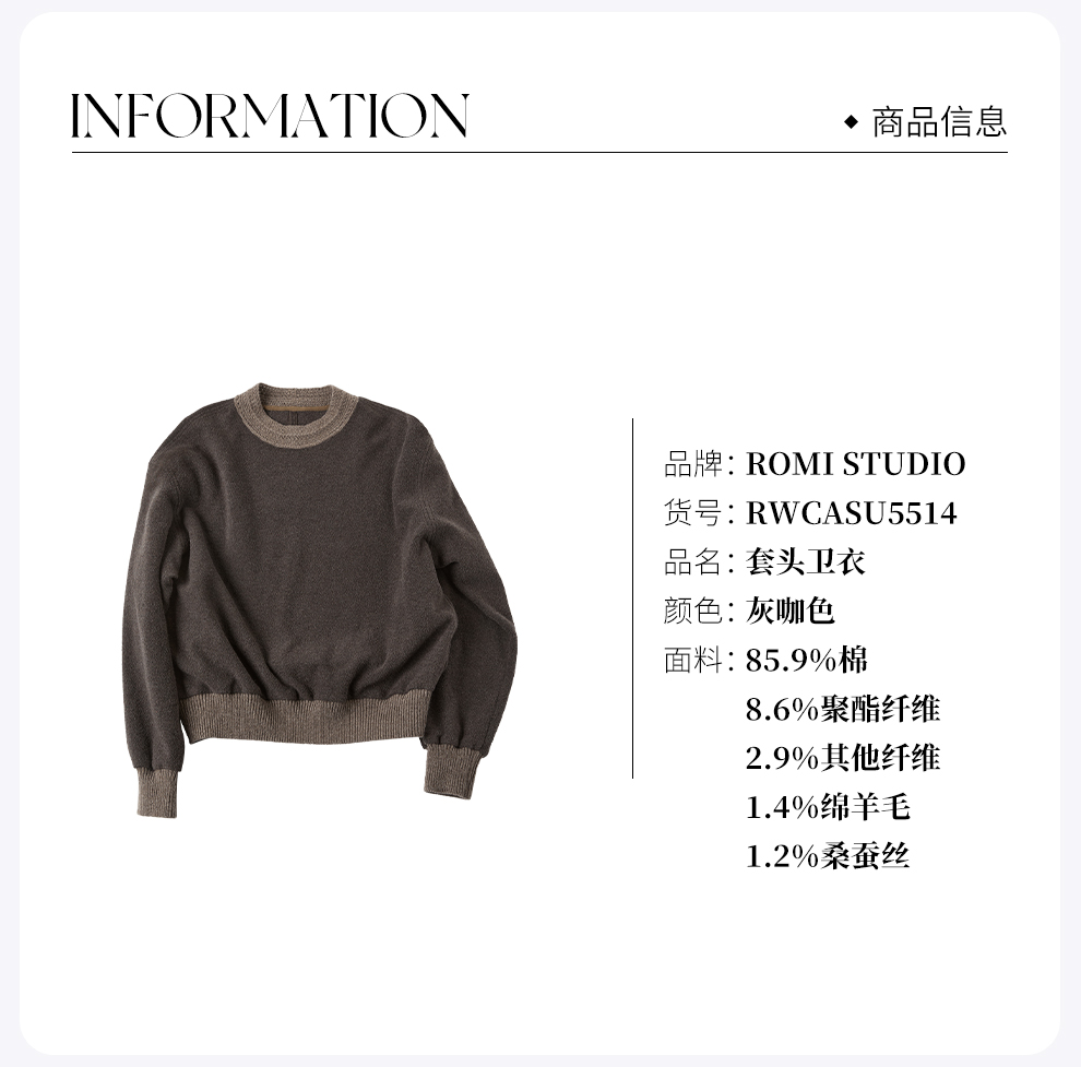 ROMI STUDIO“美式复古”羊毛混纺螺纹撞色宽松套头卫衣 RWCASU5514