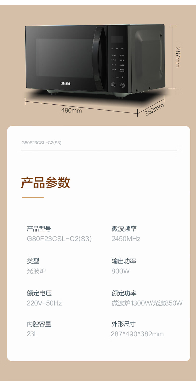 格兰仕微波炉家用智能光波炉平板不锈钢内胆蒸烤箱一体线下同款G80F23CSL-C2(S3)