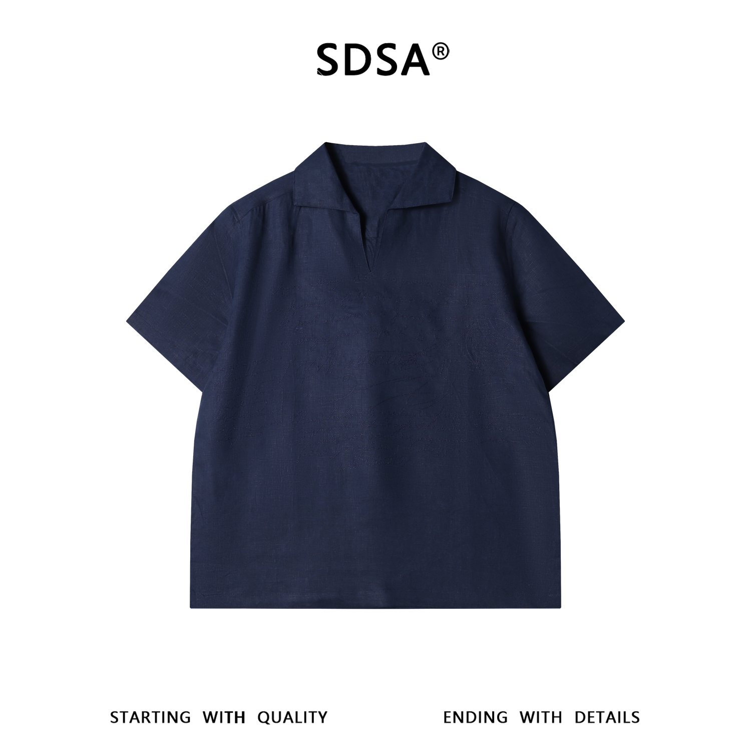 SDSA男装2026新款高贵轻奢简约刺绣字母小V翻领短袖T恤百搭上衣