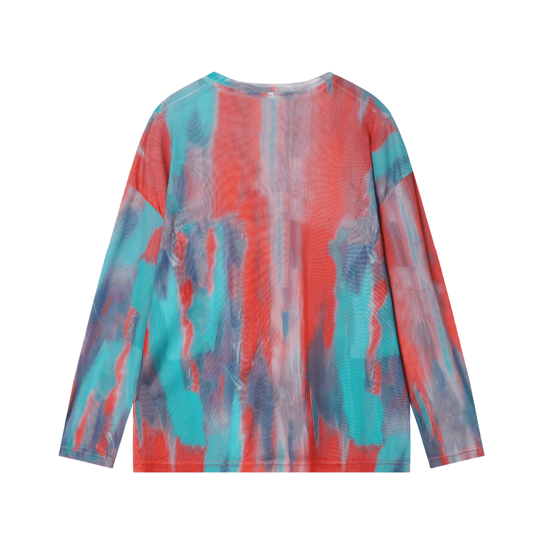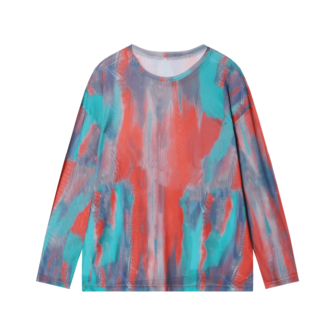 夏季新款彩色扎染男士上衣潮流宽松休闲长袖时尚百搭渐变T恤