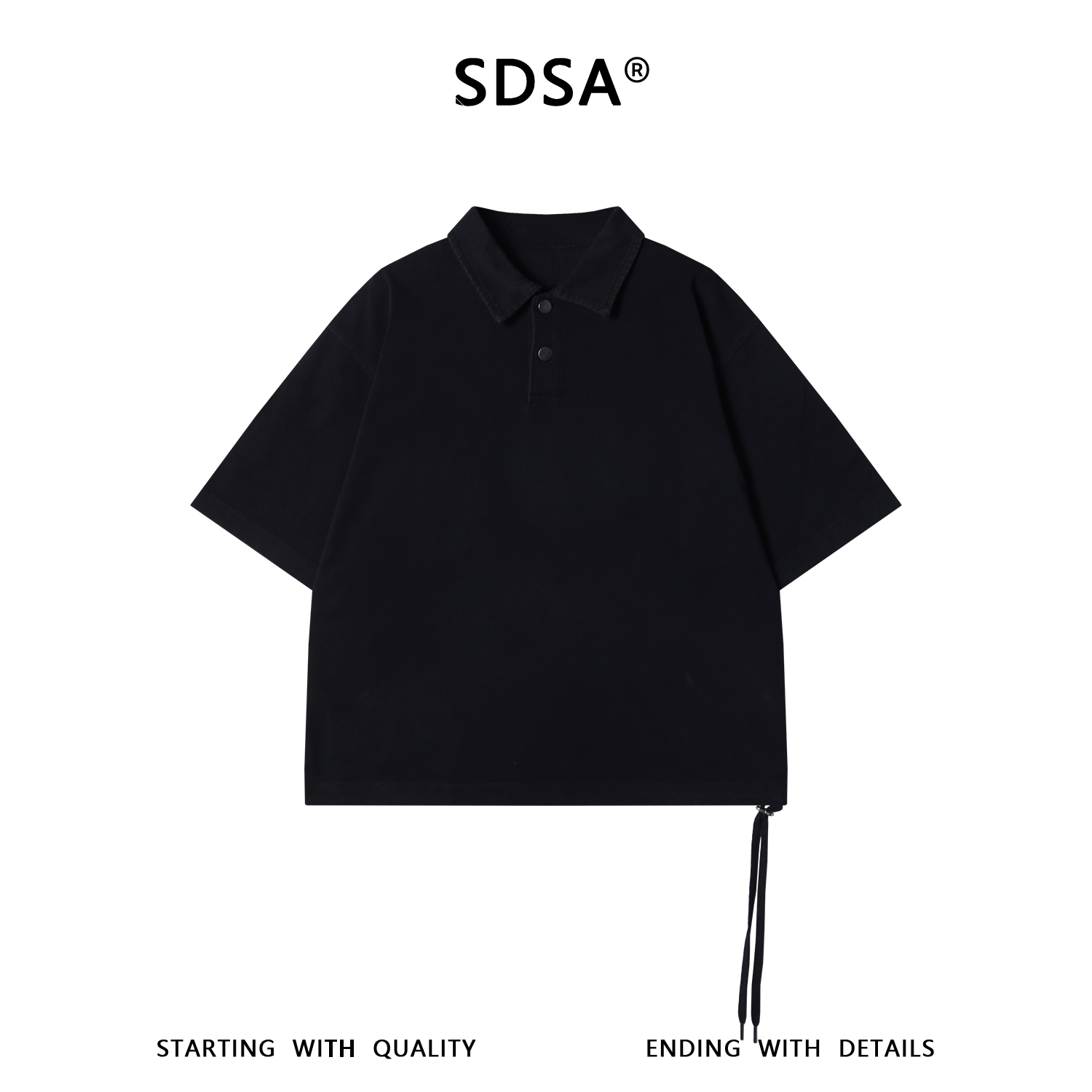 SDSA男装2026新款潮牌短袖polo衫男女同款宽松落肩抽绳下摆半袖