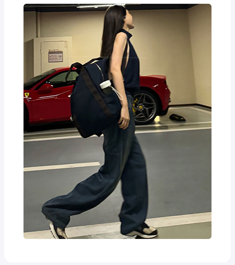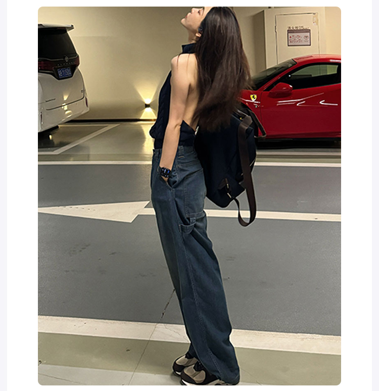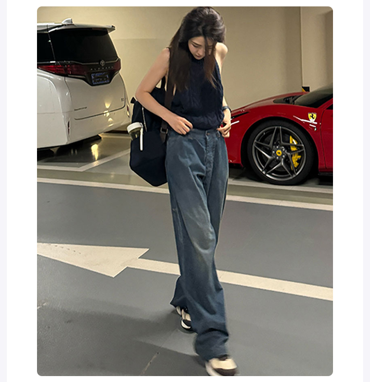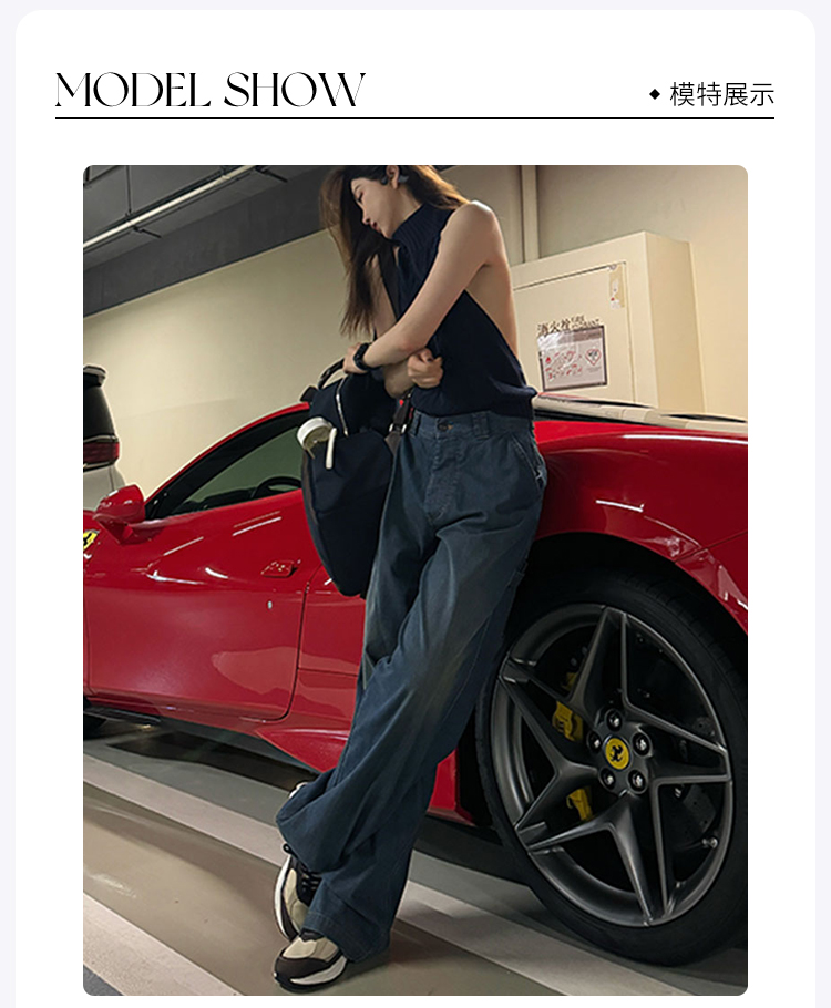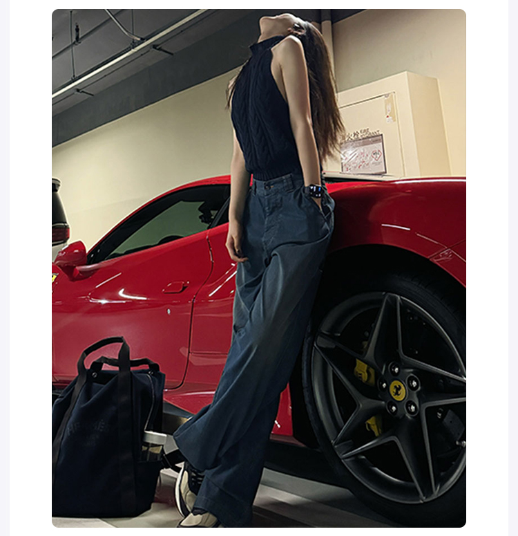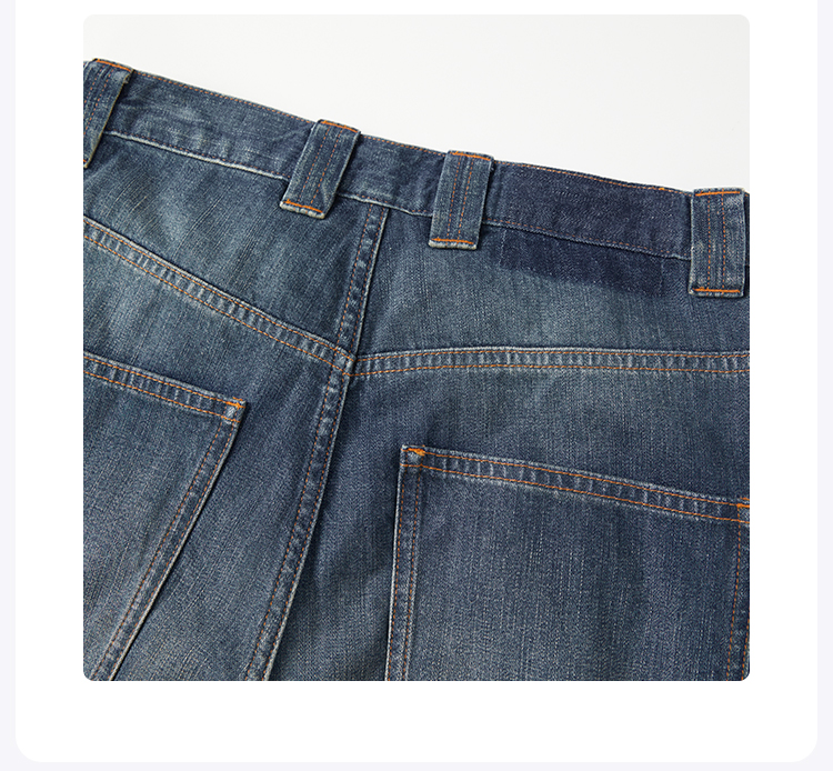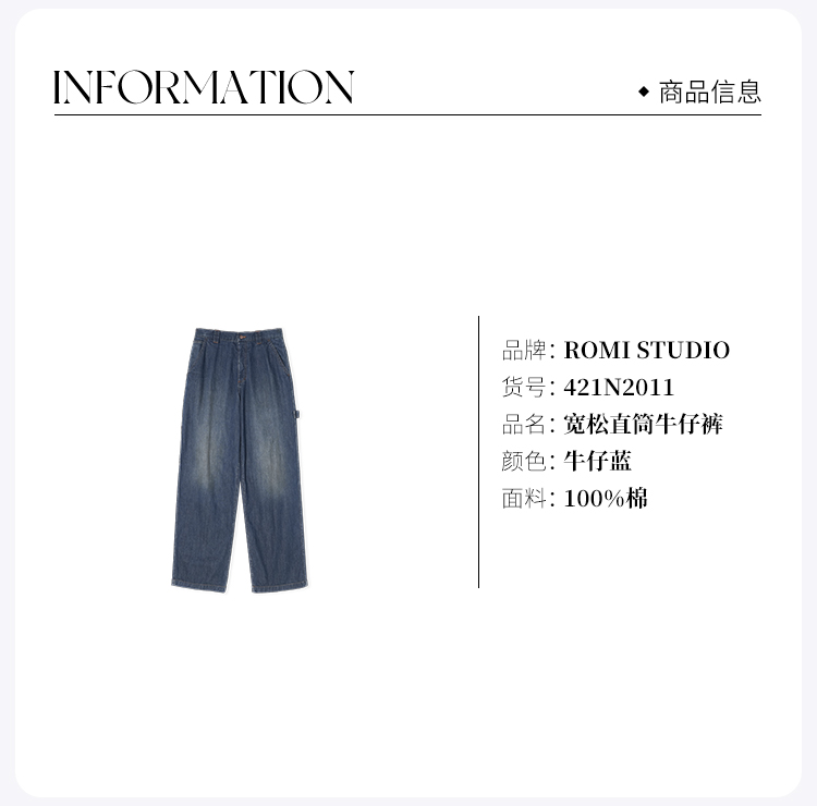 ROMI STUDIO“机场牛仔”100双面网纹牛仔棉宽松直筒牛仔裤421N2011【不翻单】