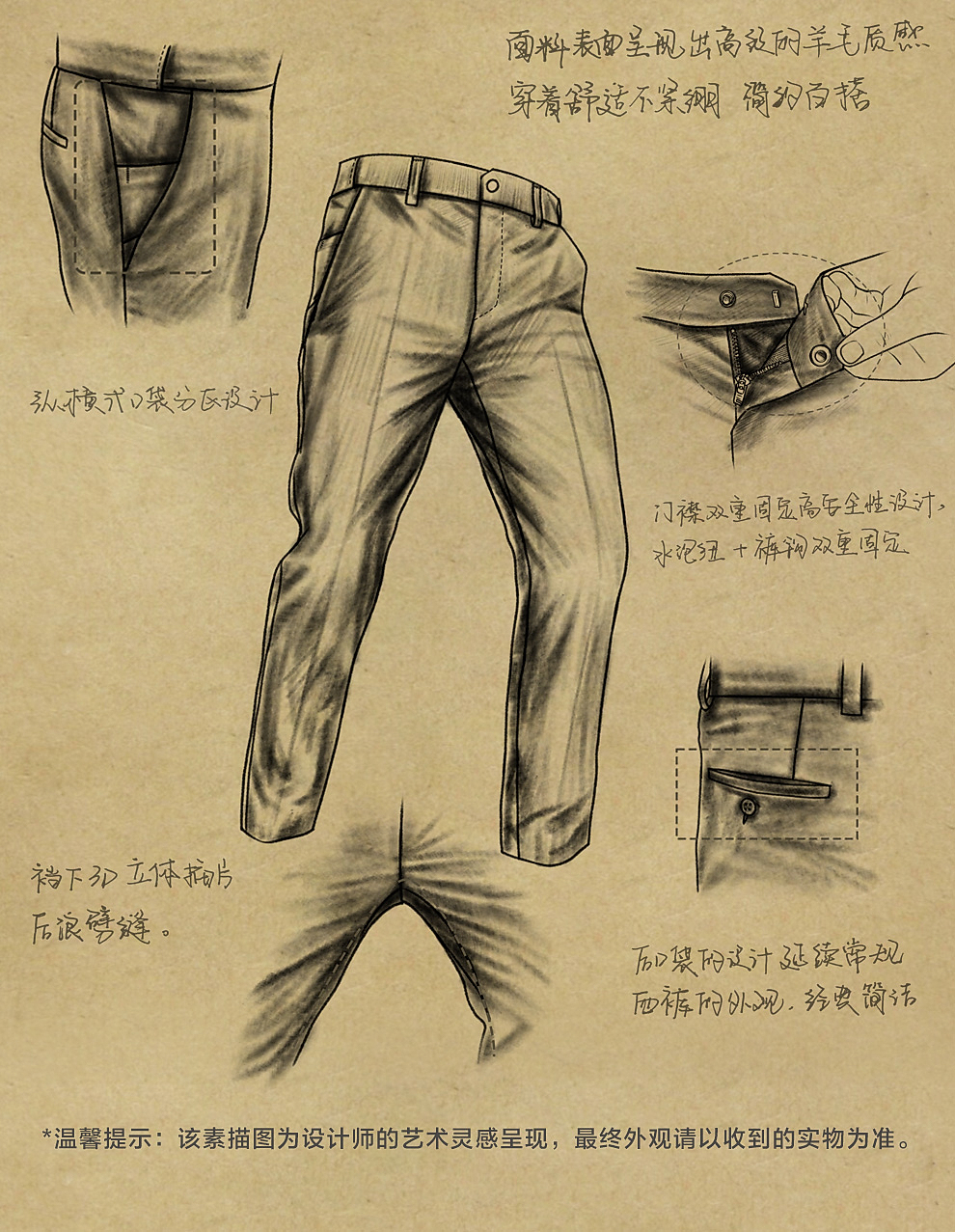 暗之风影羊毛修身西裤亲肤舒适男通勤休闲百搭休闲裤西裤男