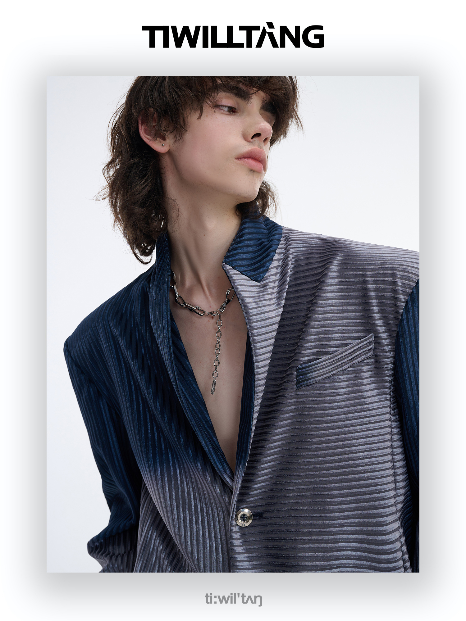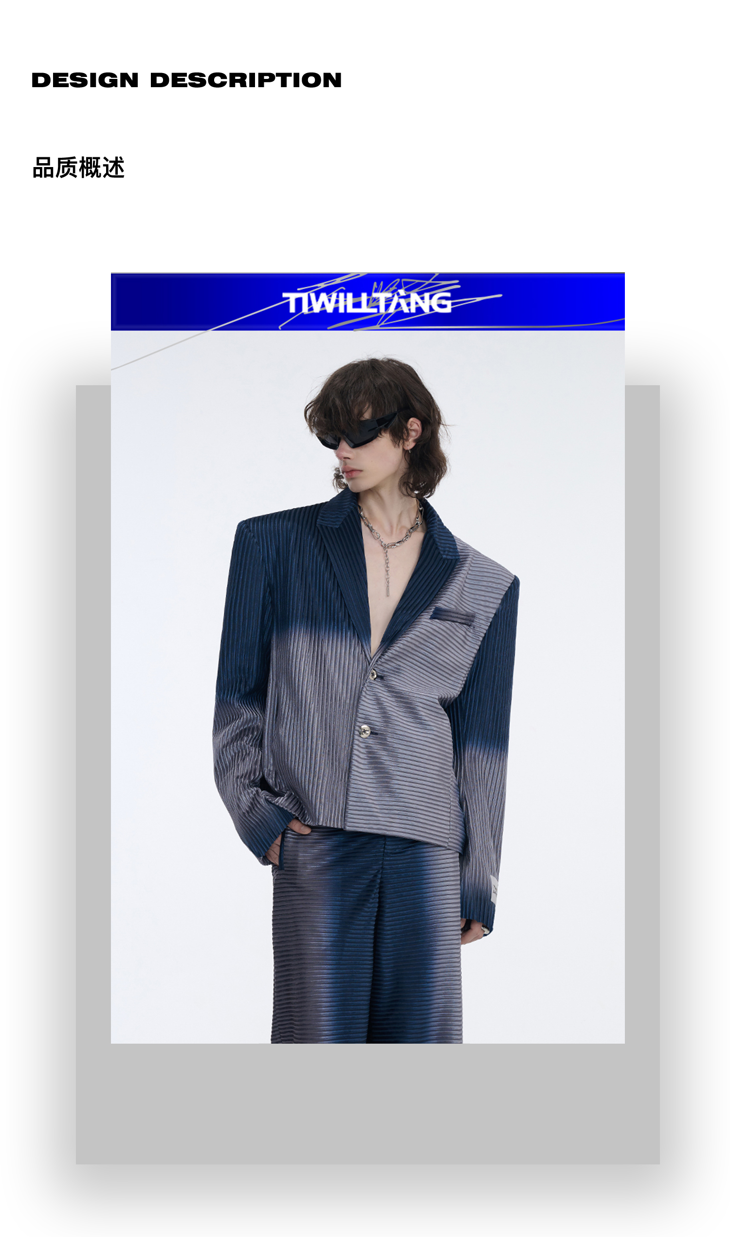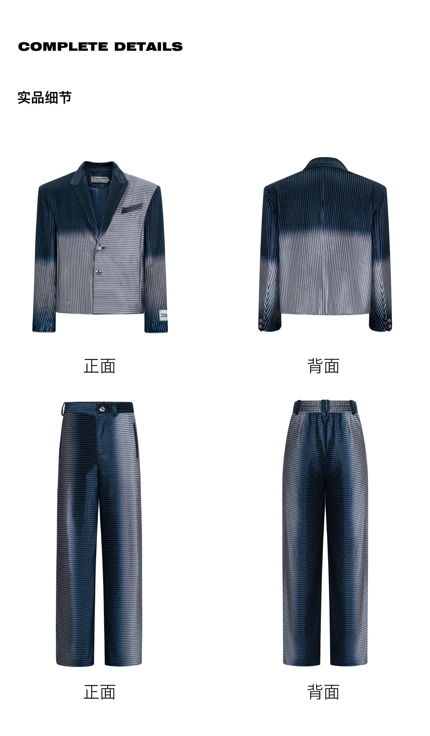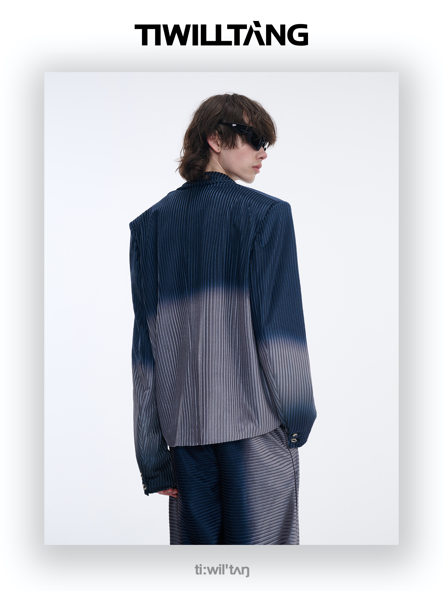 TIWILLTANG启世录“拟海泊浪”时装银蓝高级渐变缎绒轻奢西装套装