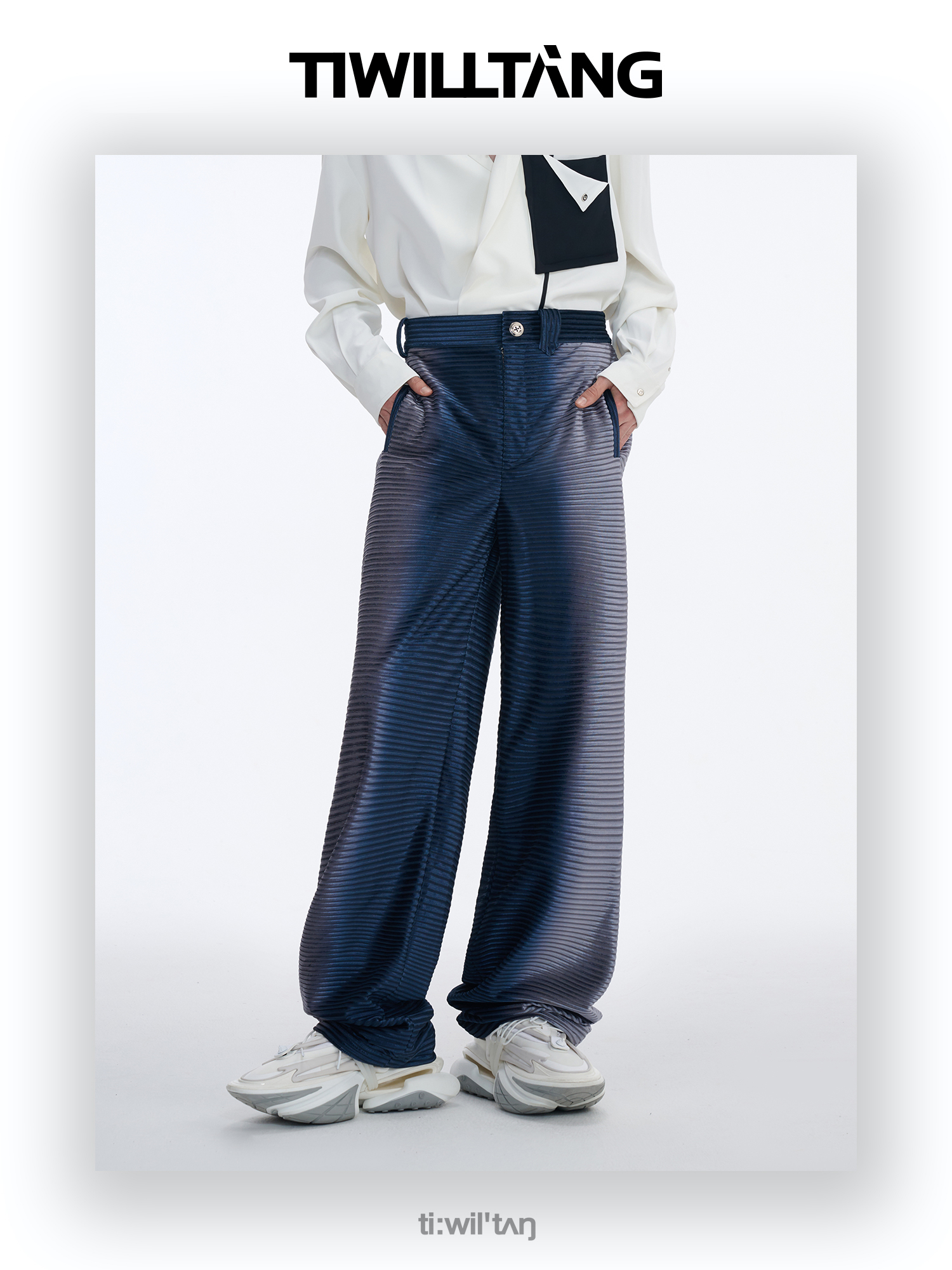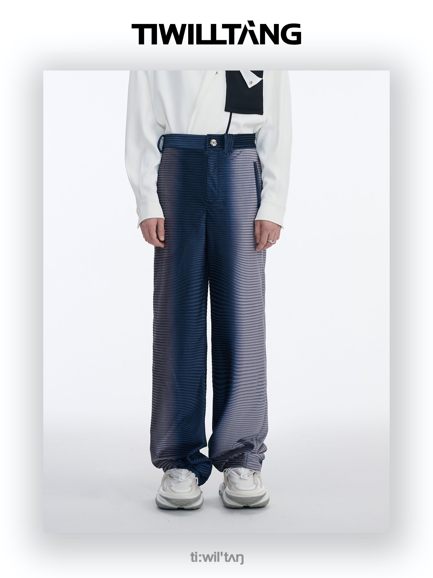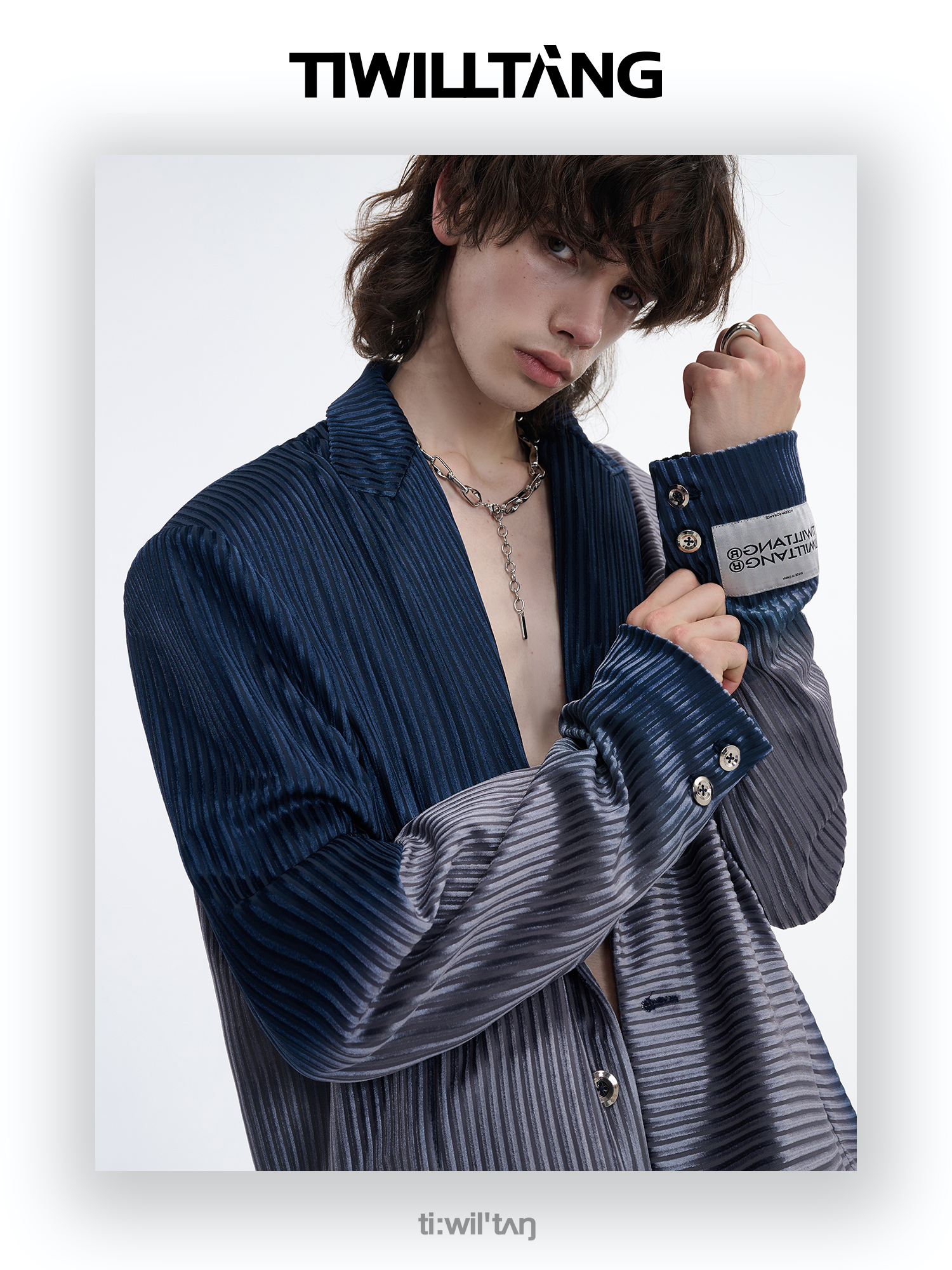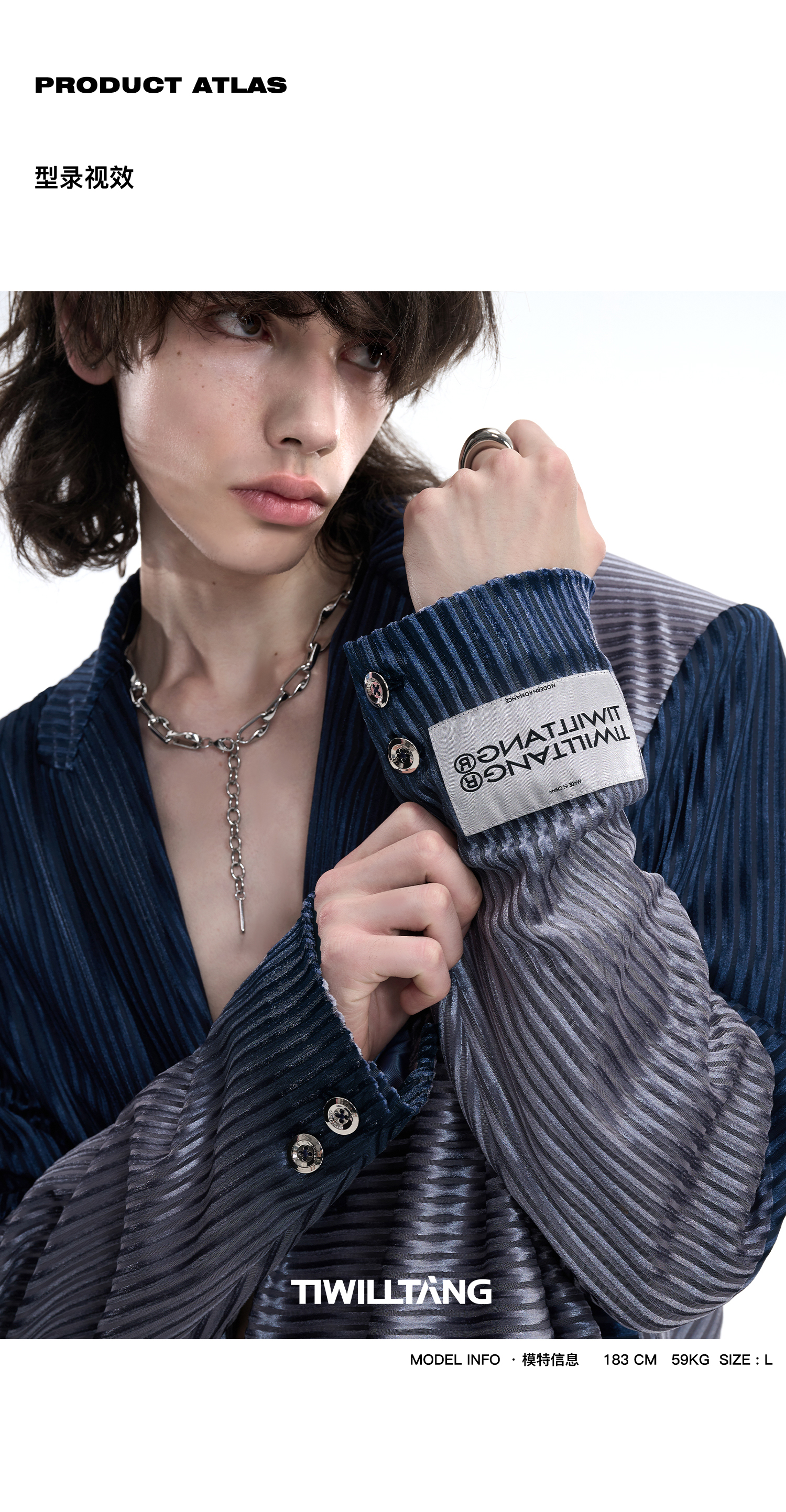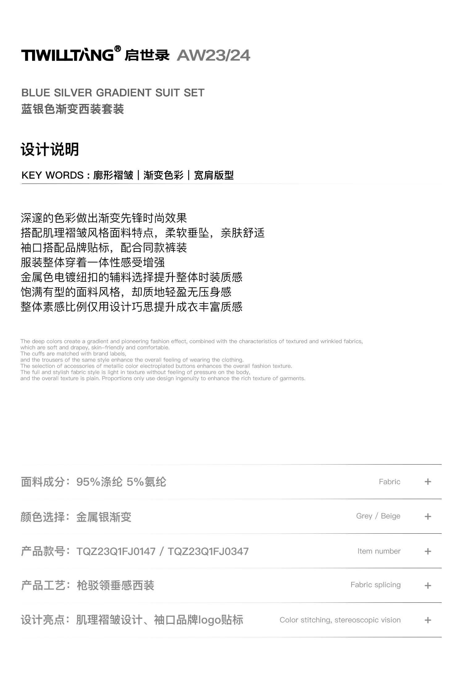 TIWILLTANG启世录“拟海泊浪”时装银蓝高级渐变缎绒轻奢西装套装