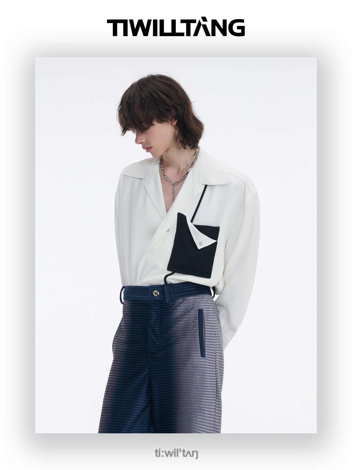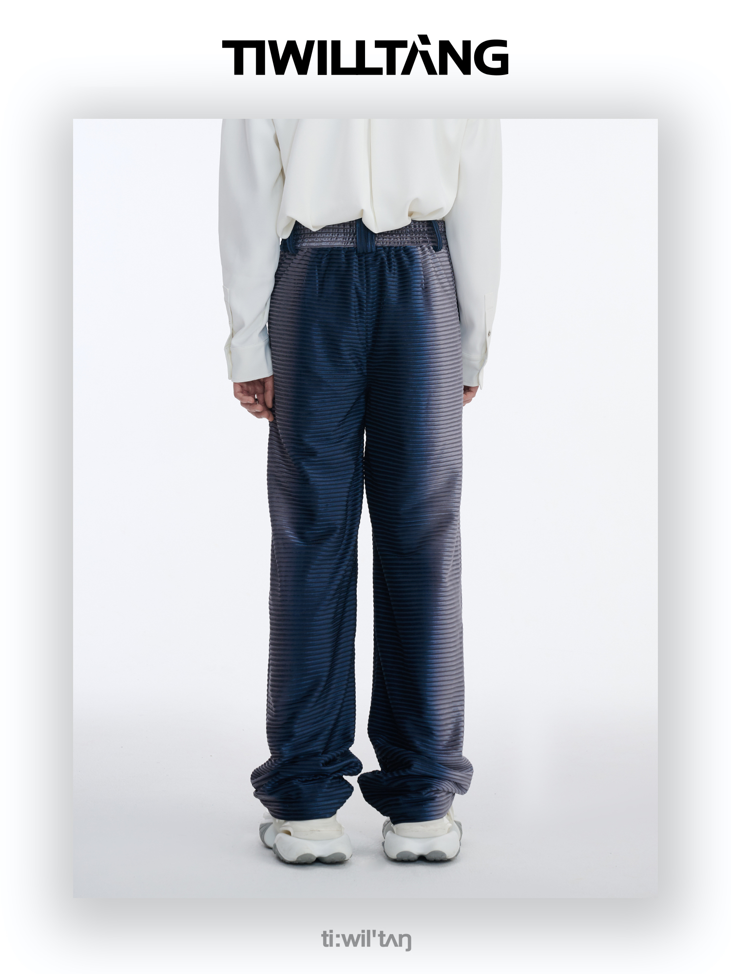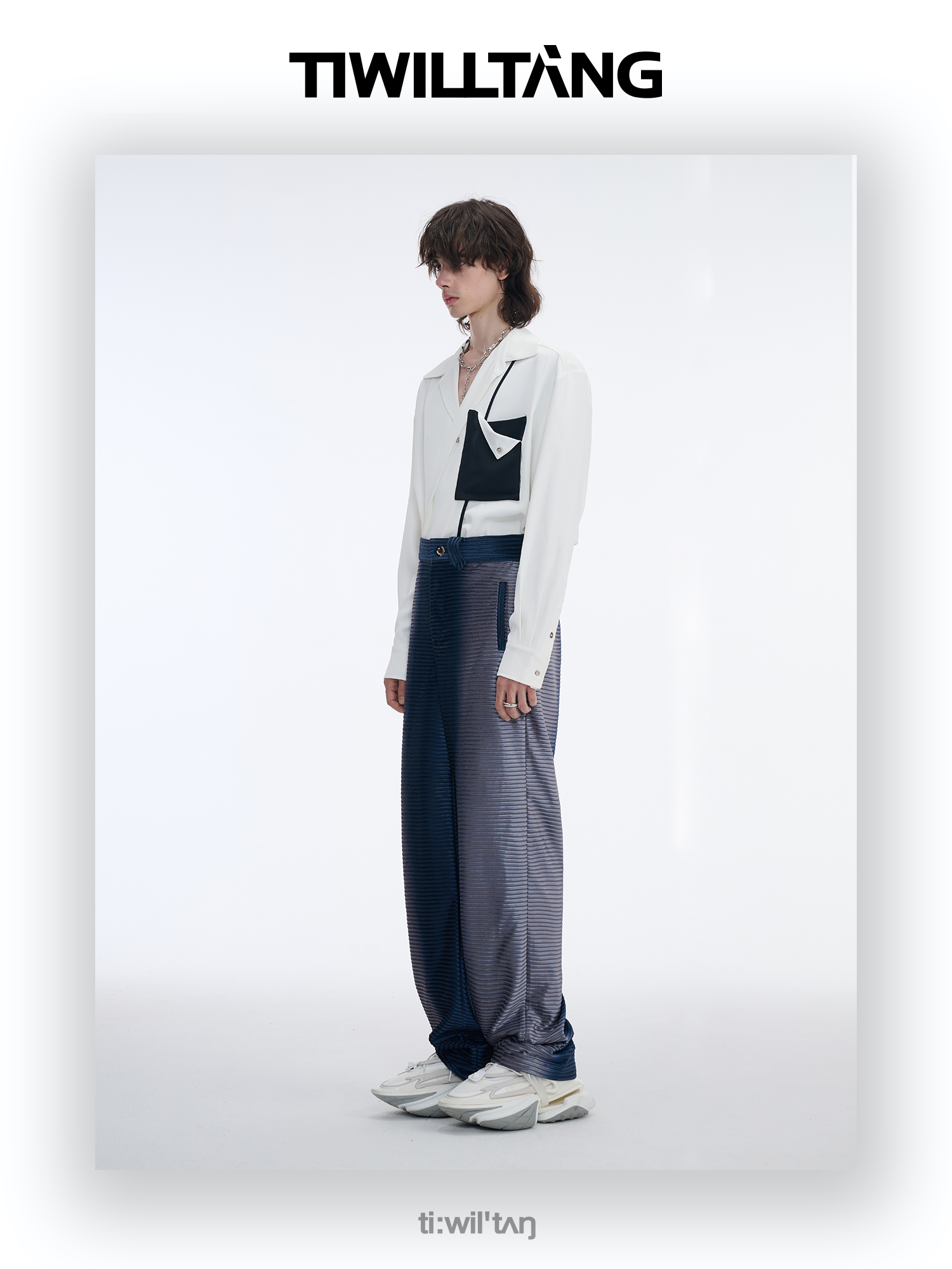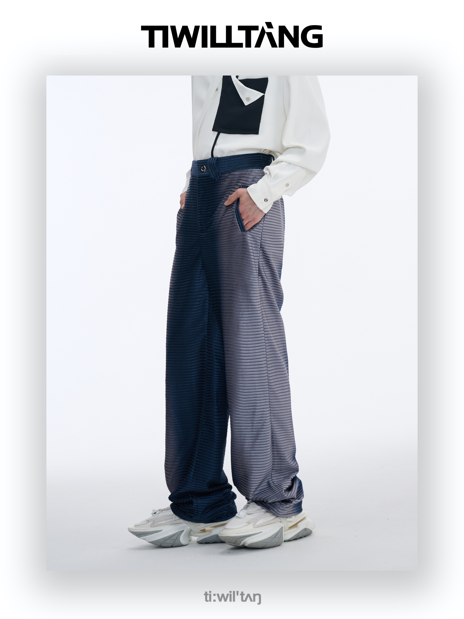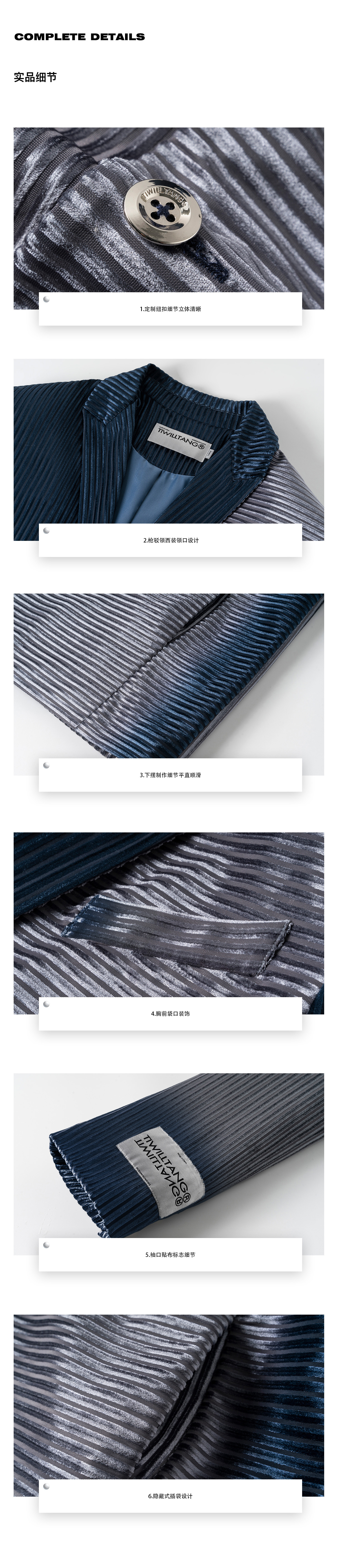 TIWILLTANG启世录“拟海泊浪”时装银蓝高级渐变缎绒轻奢西装套装