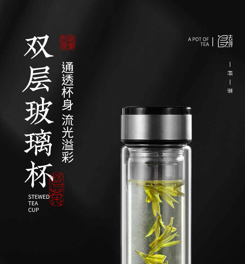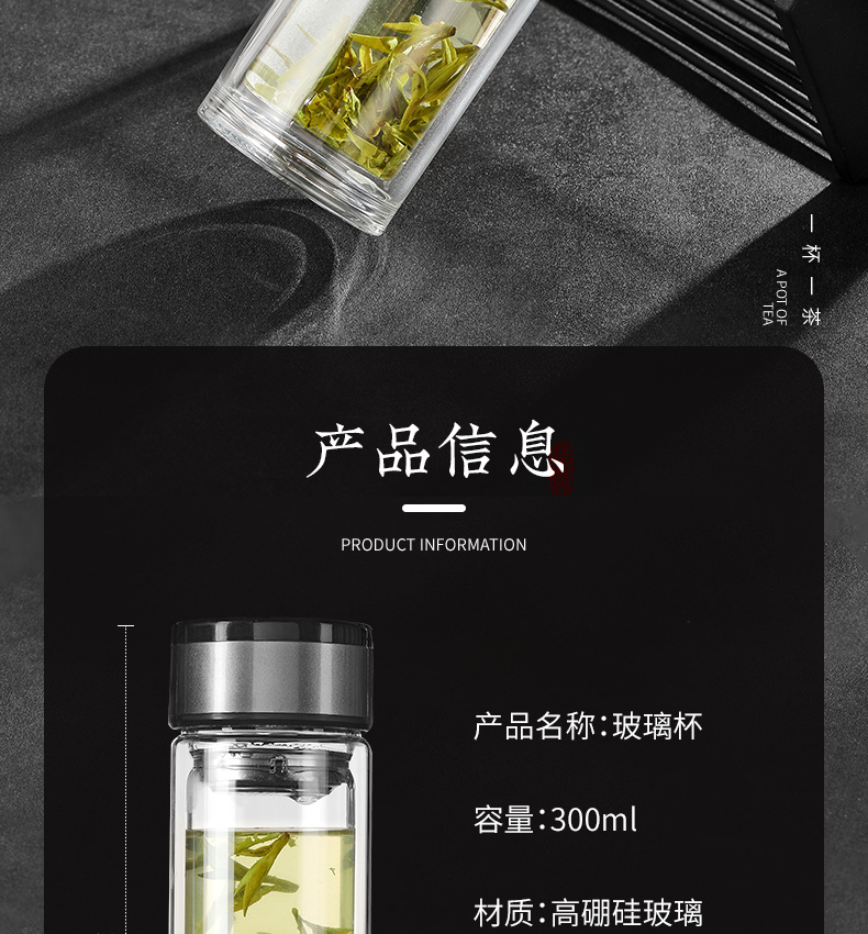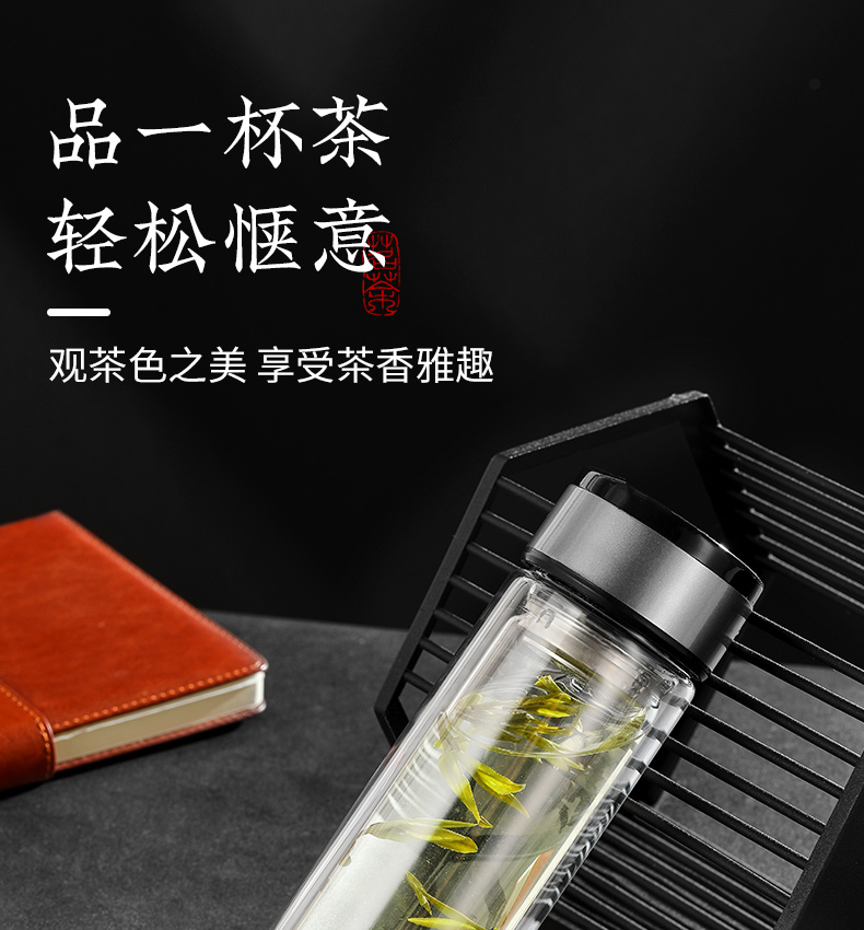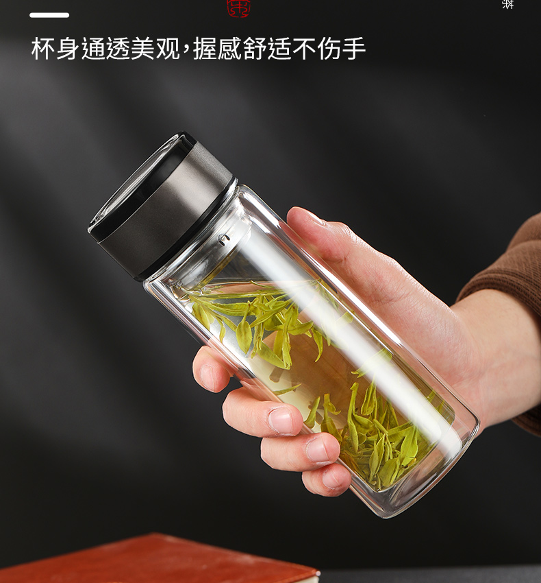 【商务双层玻璃杯】男士泡茶杯高档商务车载杯子女大容量隔热专用水杯300ML