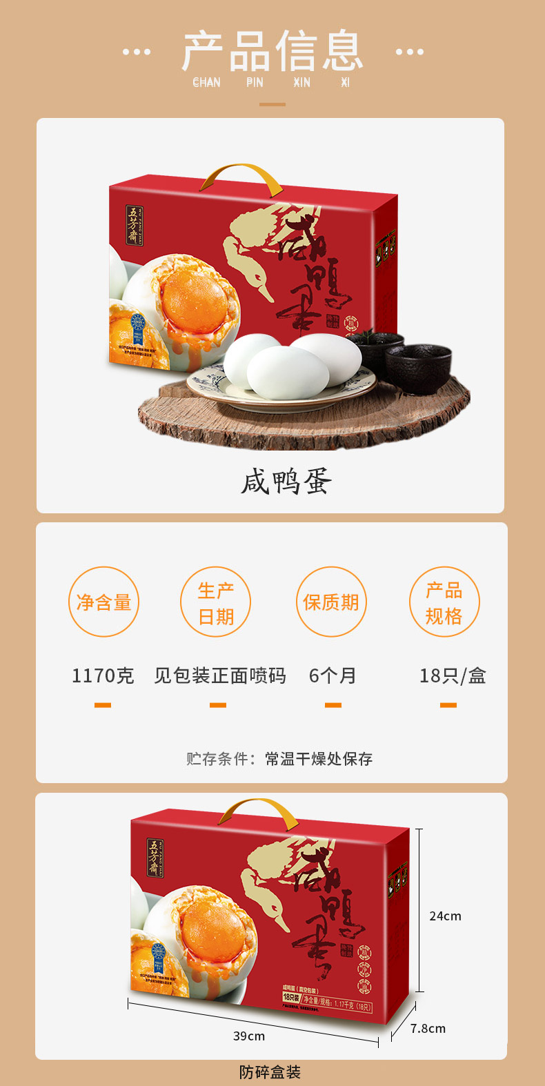 五芳斋 真空咸蛋礼盒 端午送礼 65克*18枚
