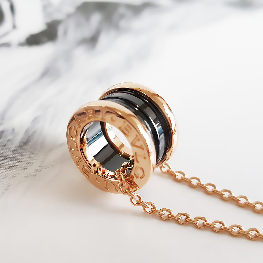 【95新】BVLGARI宝格丽B.zero1系列346083玫瑰金黑陶瓷弹簧项链 链长约45cm中性款050326AK05