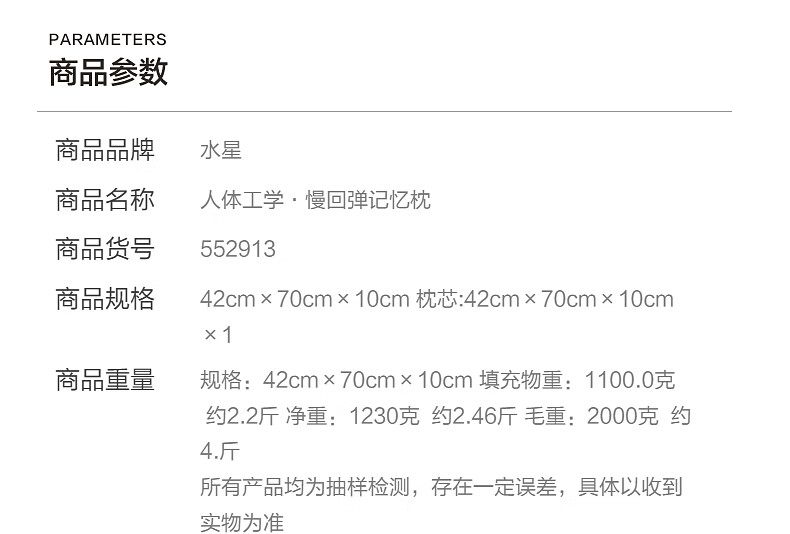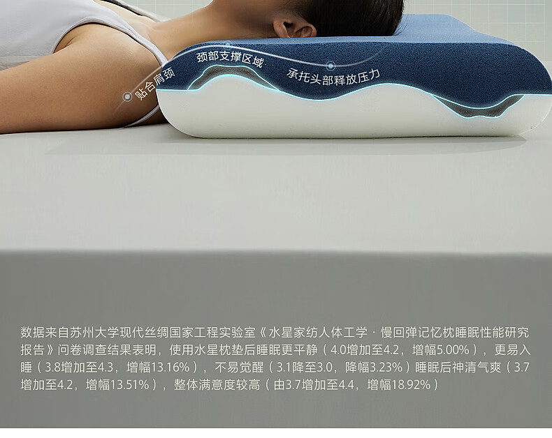 水星家纺记忆枕头记忆棉颈椎枕护颈 人体工学枕亲肤慢回弹深睡释压舒适枕 工学深睡枕(德国IGR认证)-单只 42cm70cm10cm