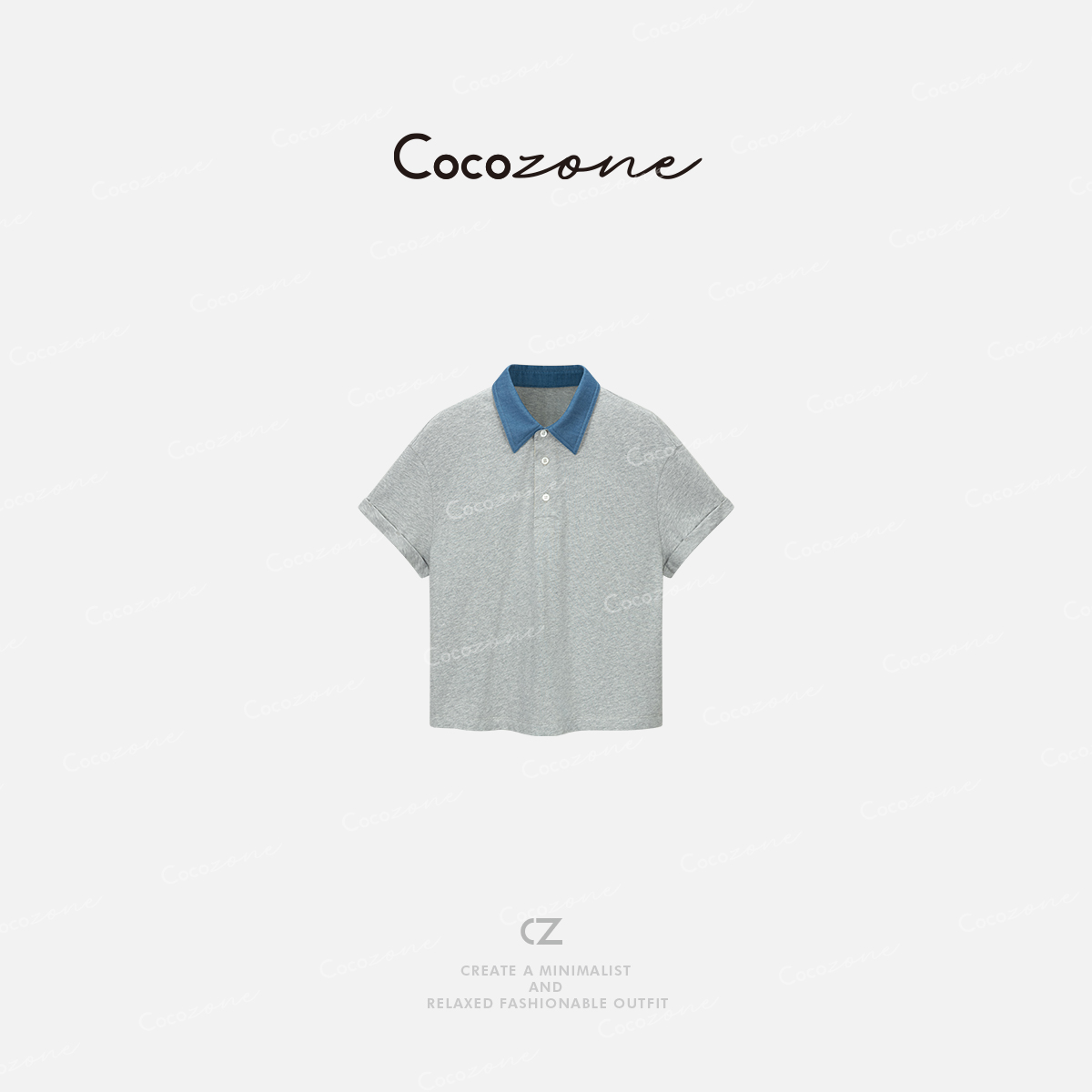 COCO ZONE 刘一一 25春夏新款撞色翻领百搭短袖T恤ACD1A0442