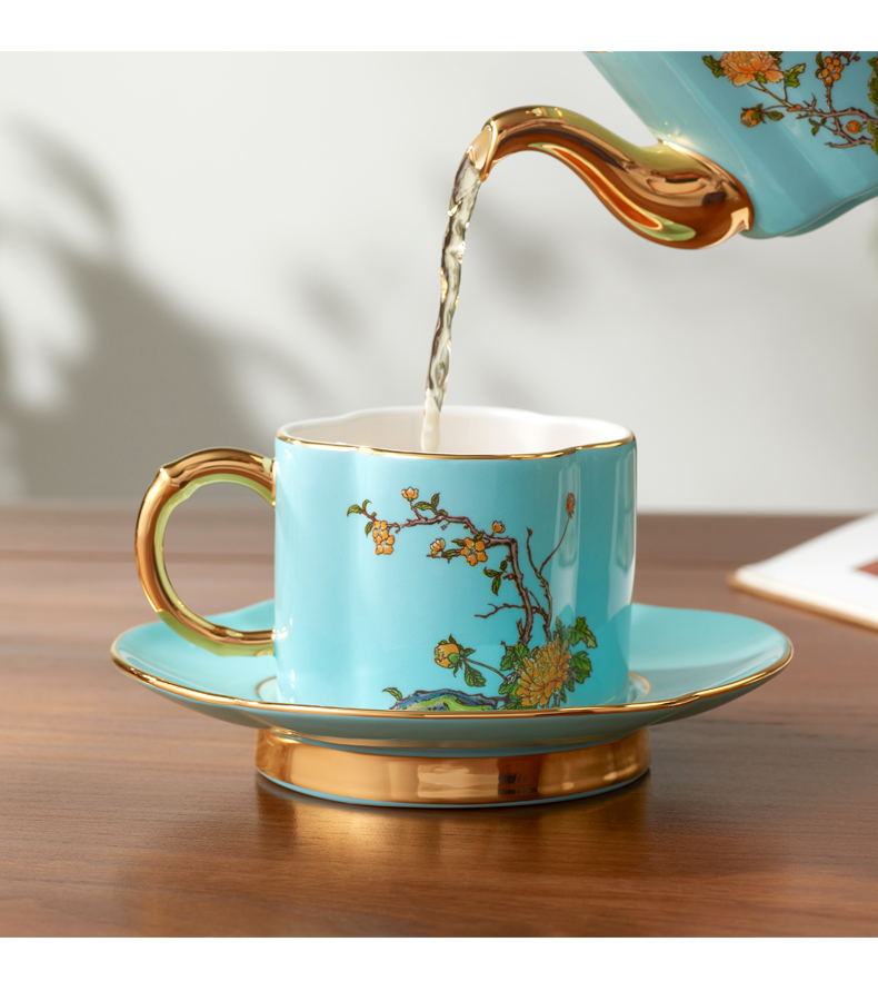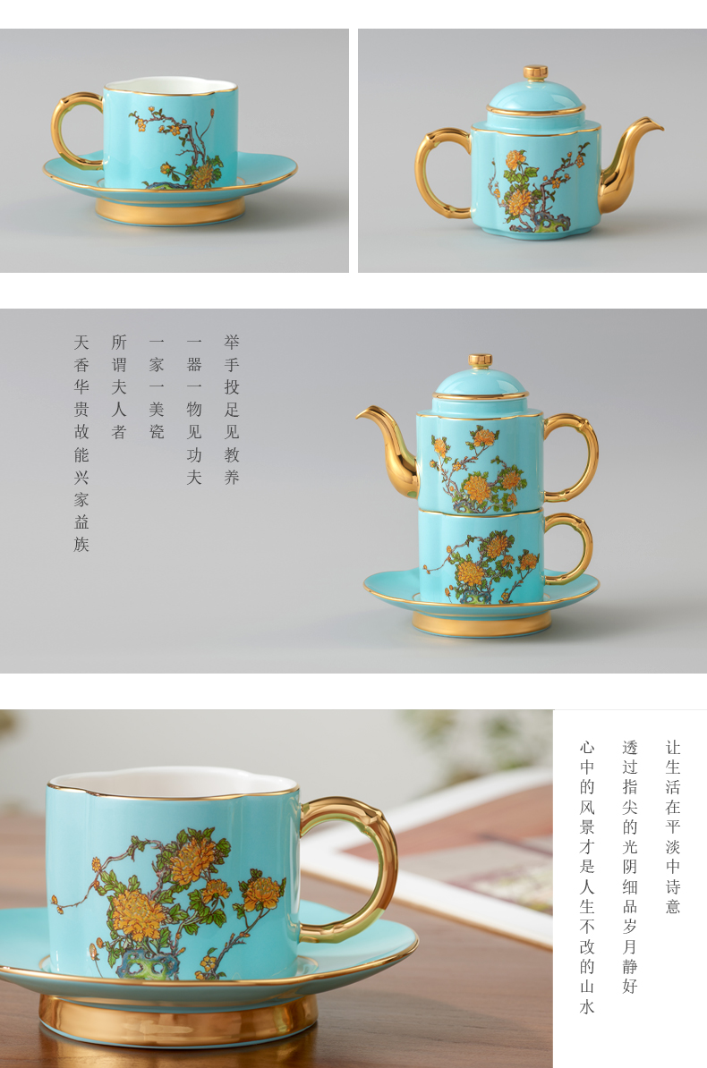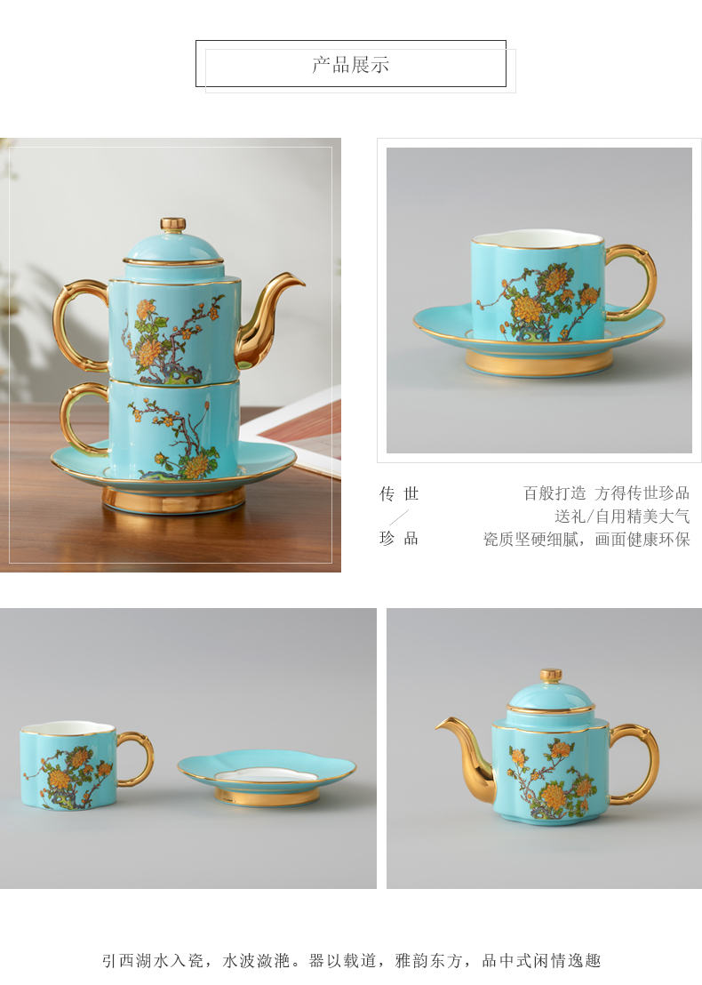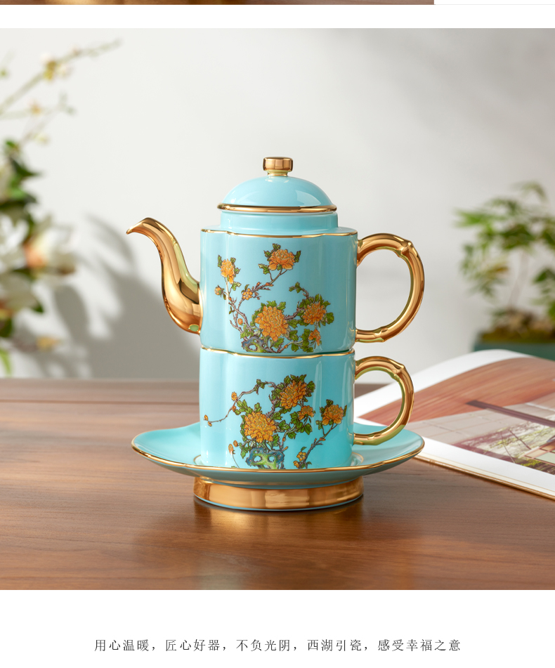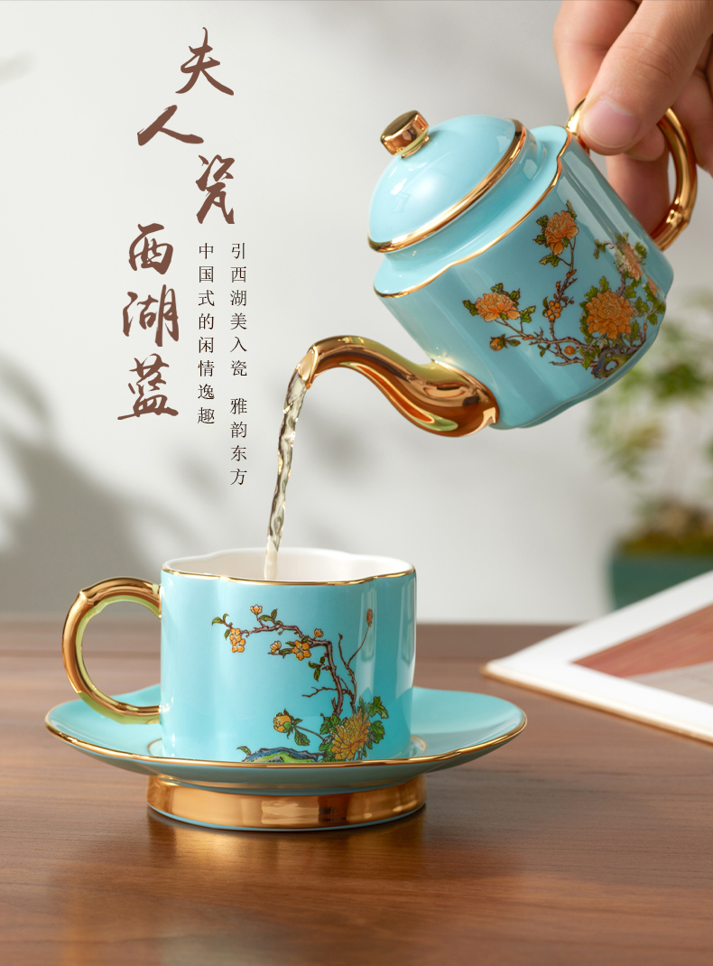 永丰源 夫人瓷西湖蓝4头茶具套装 中式陶瓷茶具茶杯碟茶壶礼盒装