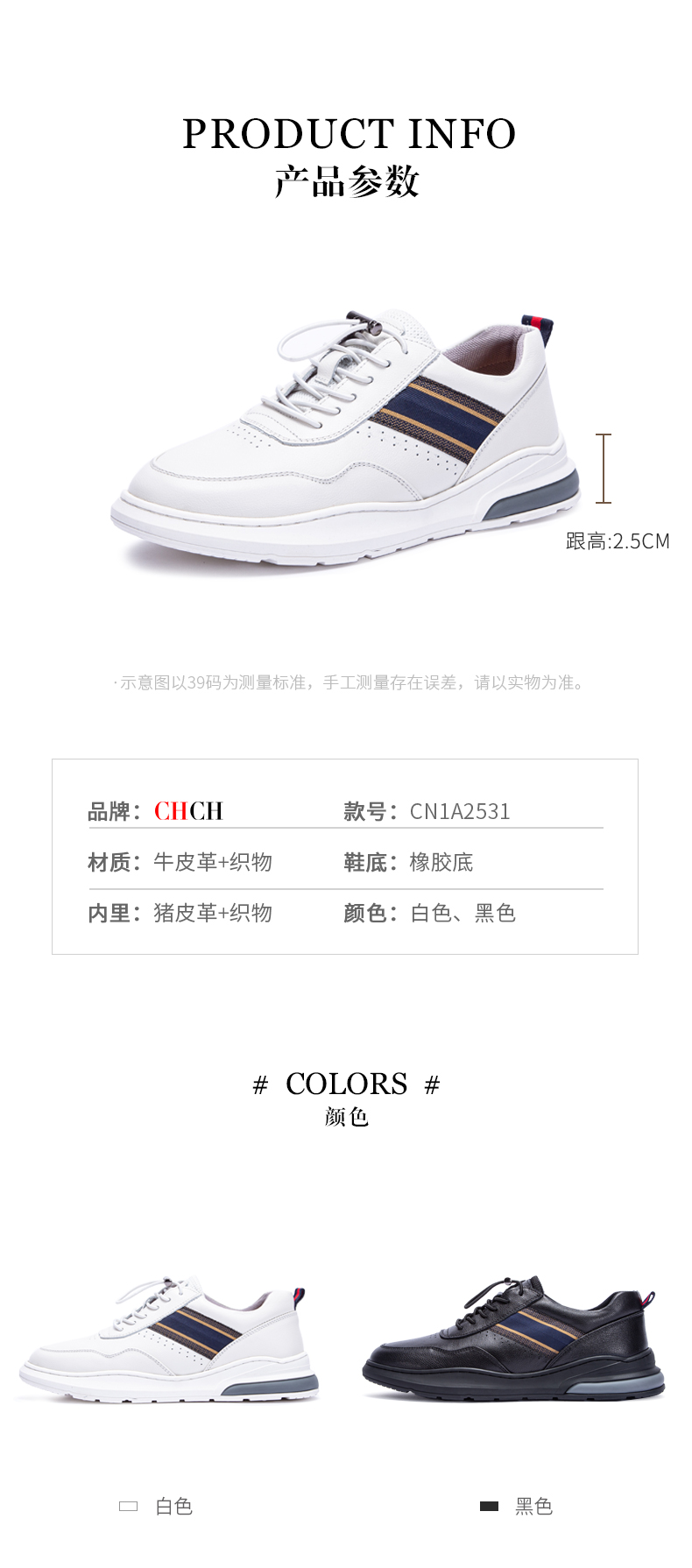 CHCH平衡鞋牛皮面料刺绣撞色板鞋小白鞋男鞋CN1A2013