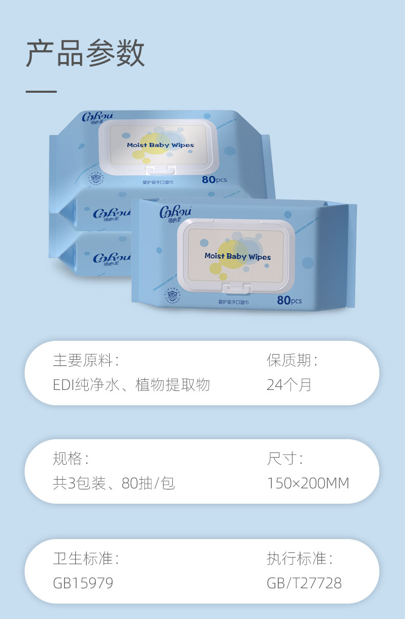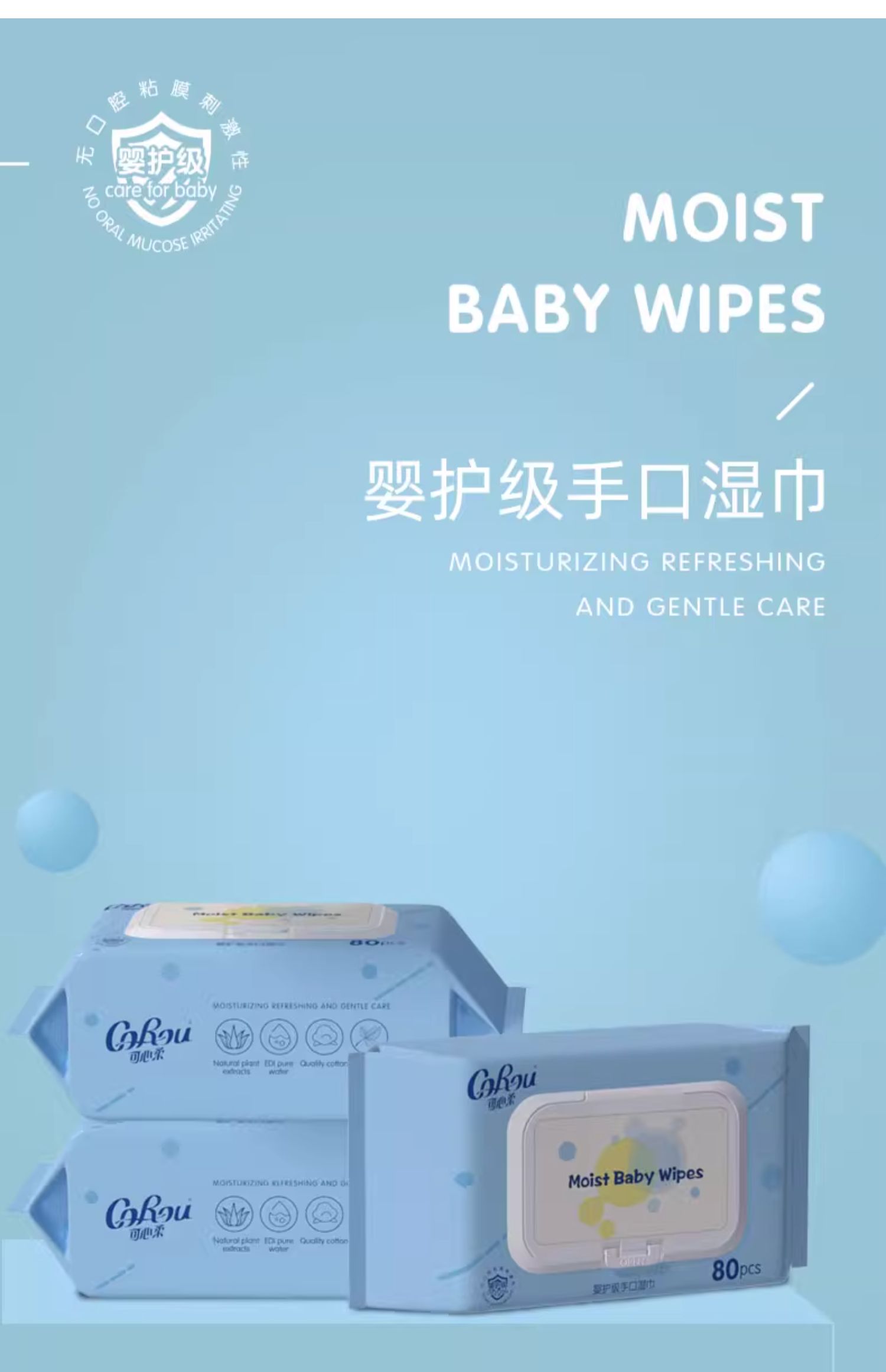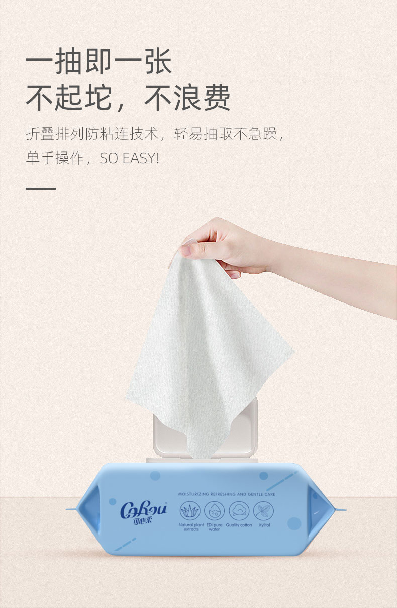 可心柔COROU湿巾带盖婴儿手口湿巾超柔加厚80抽3包整箱SJ80-3