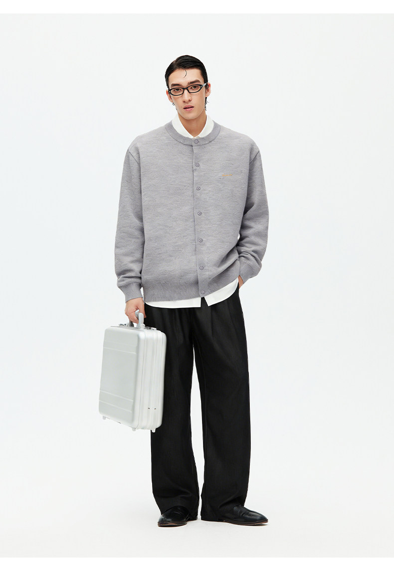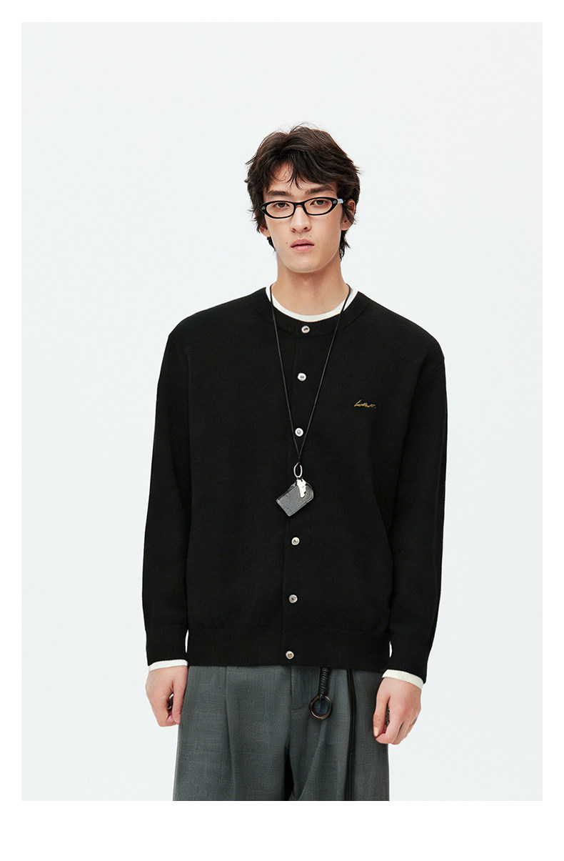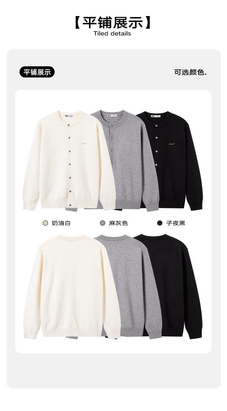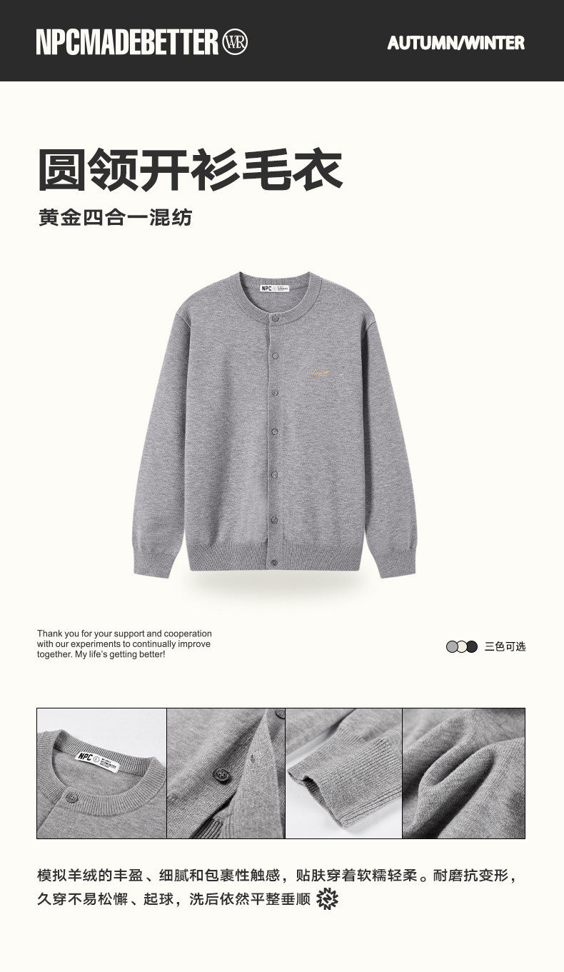 NPC潮牌金线刺绣小logo单排扣圆领针织外套仿贝壳扣合身NP5CSW20