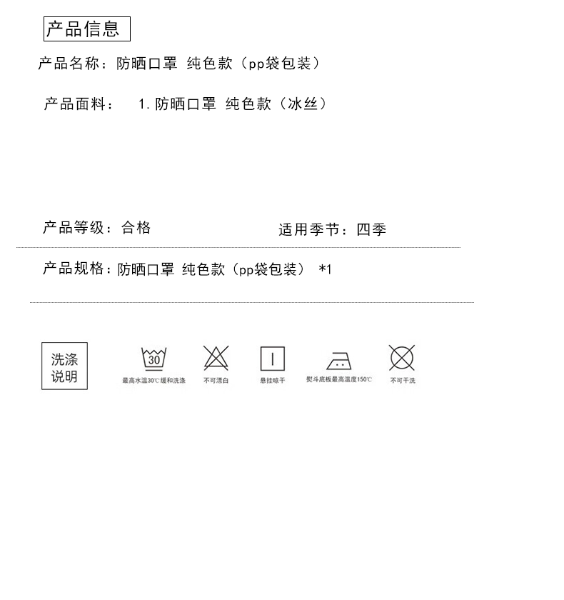 因为+所以 防晒口罩 纯色款(pp袋包装)-暗夜黑