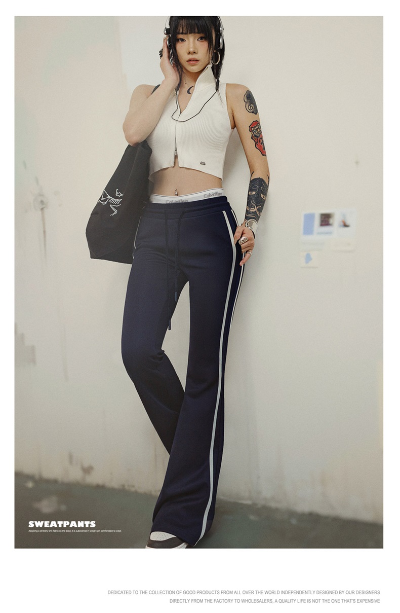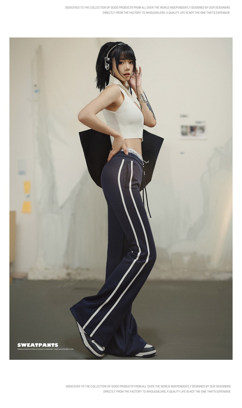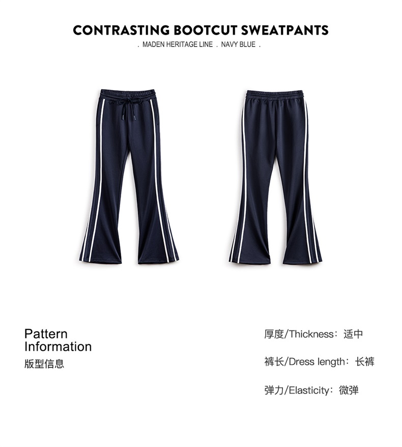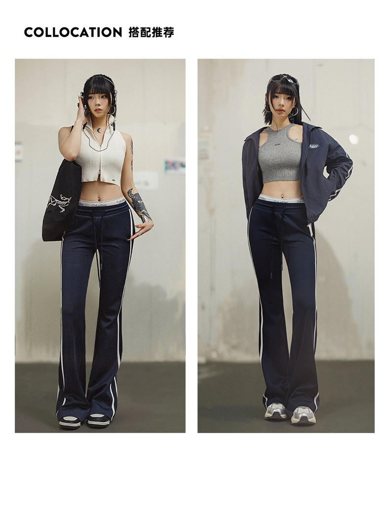马登美式撞色抽绳微喇卫裤辣妹显瘦休闲裤设计感运动瑜伽裤夏季女