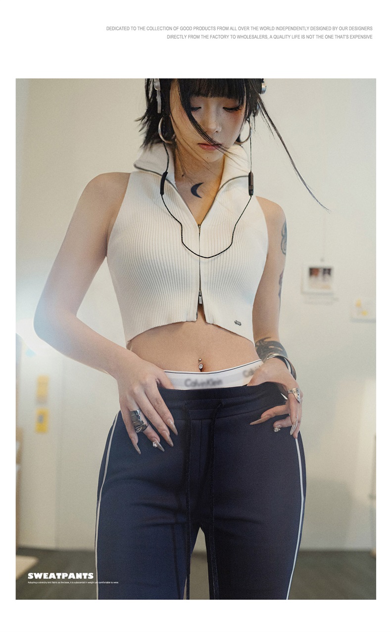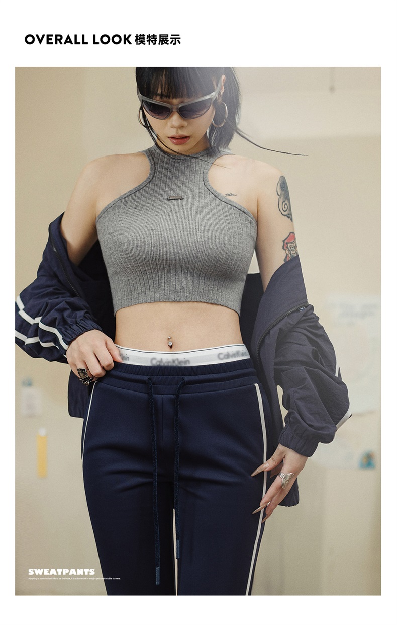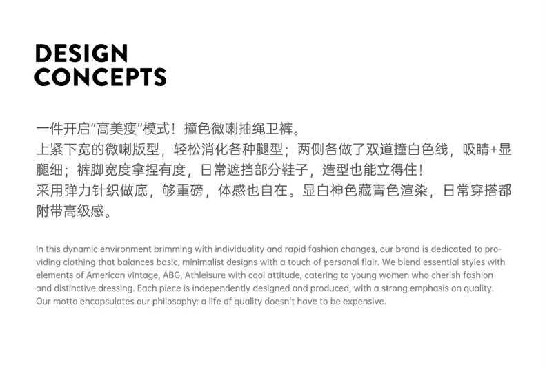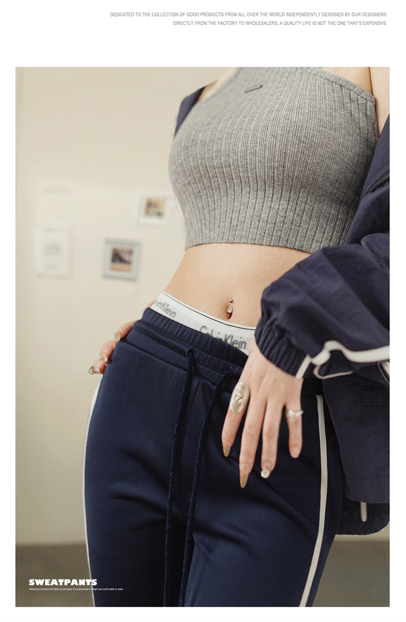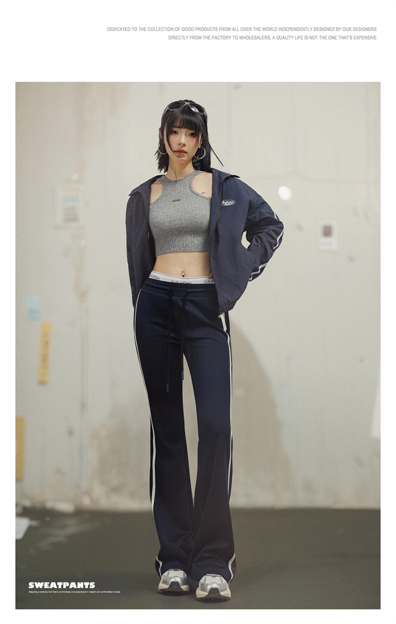 马登美式撞色抽绳微喇卫裤辣妹显瘦休闲裤设计感运动瑜伽裤夏季女