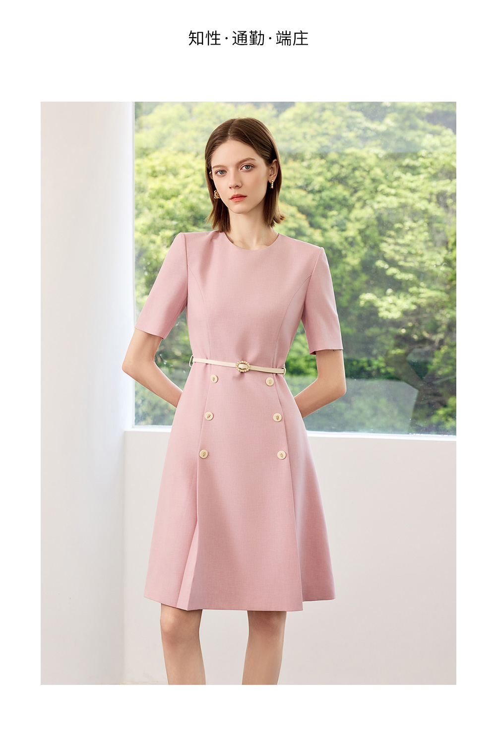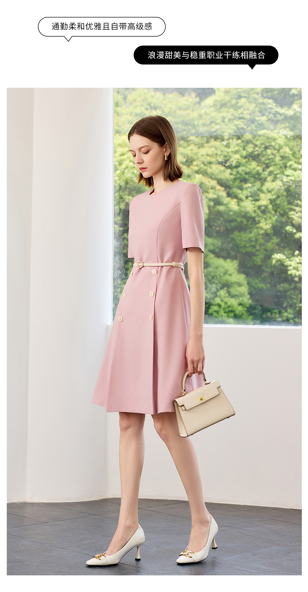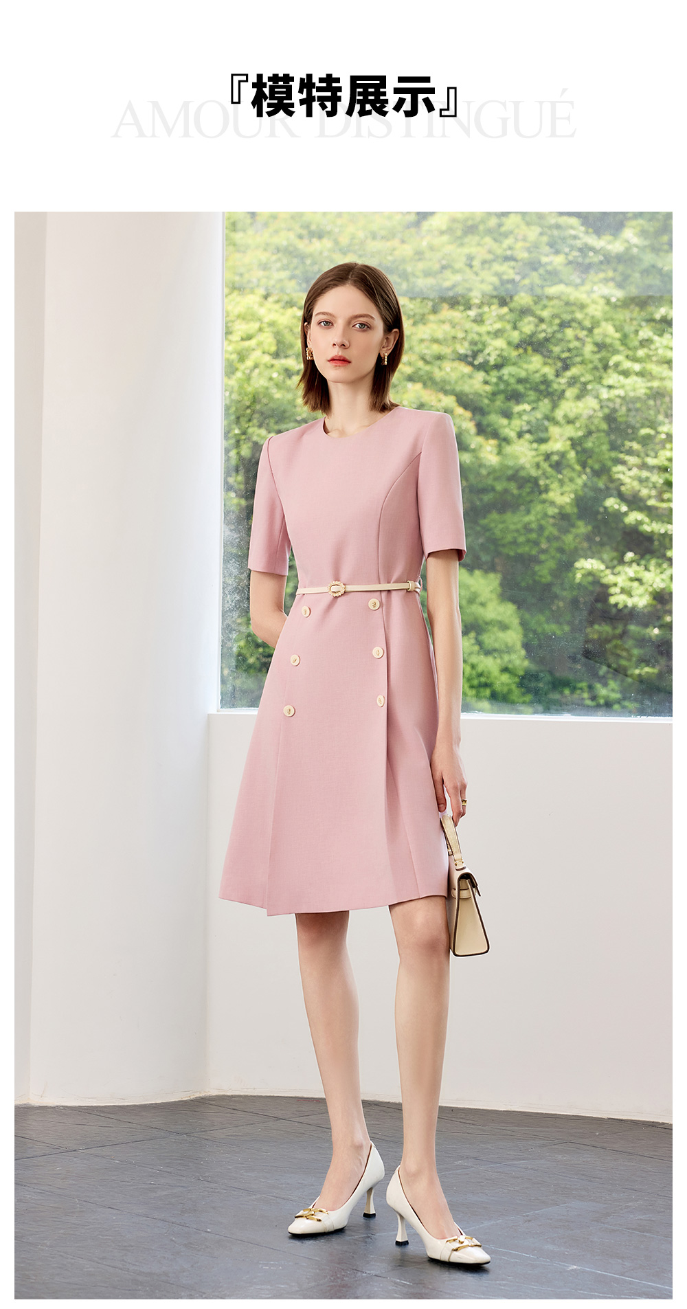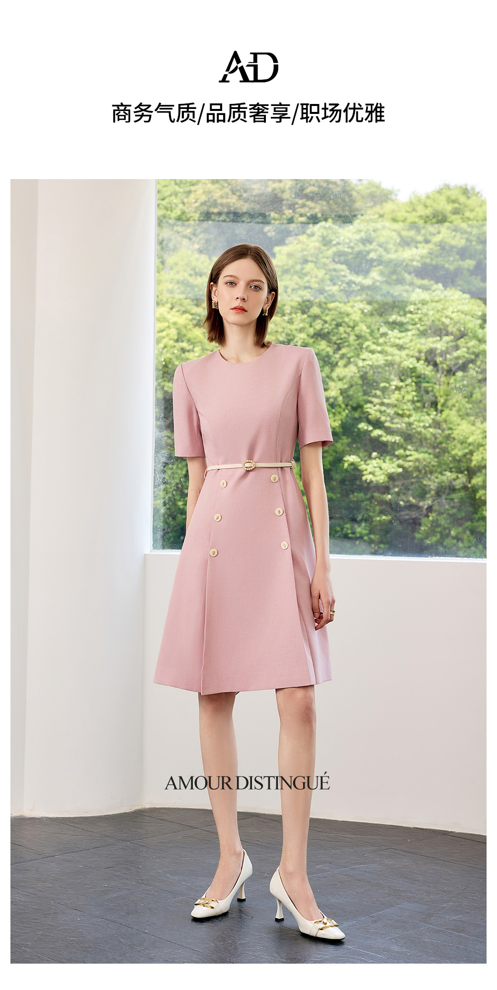 AD高端粉色连衣裙2025新款小香风时尚气质收腰显瘦女中长款裙子