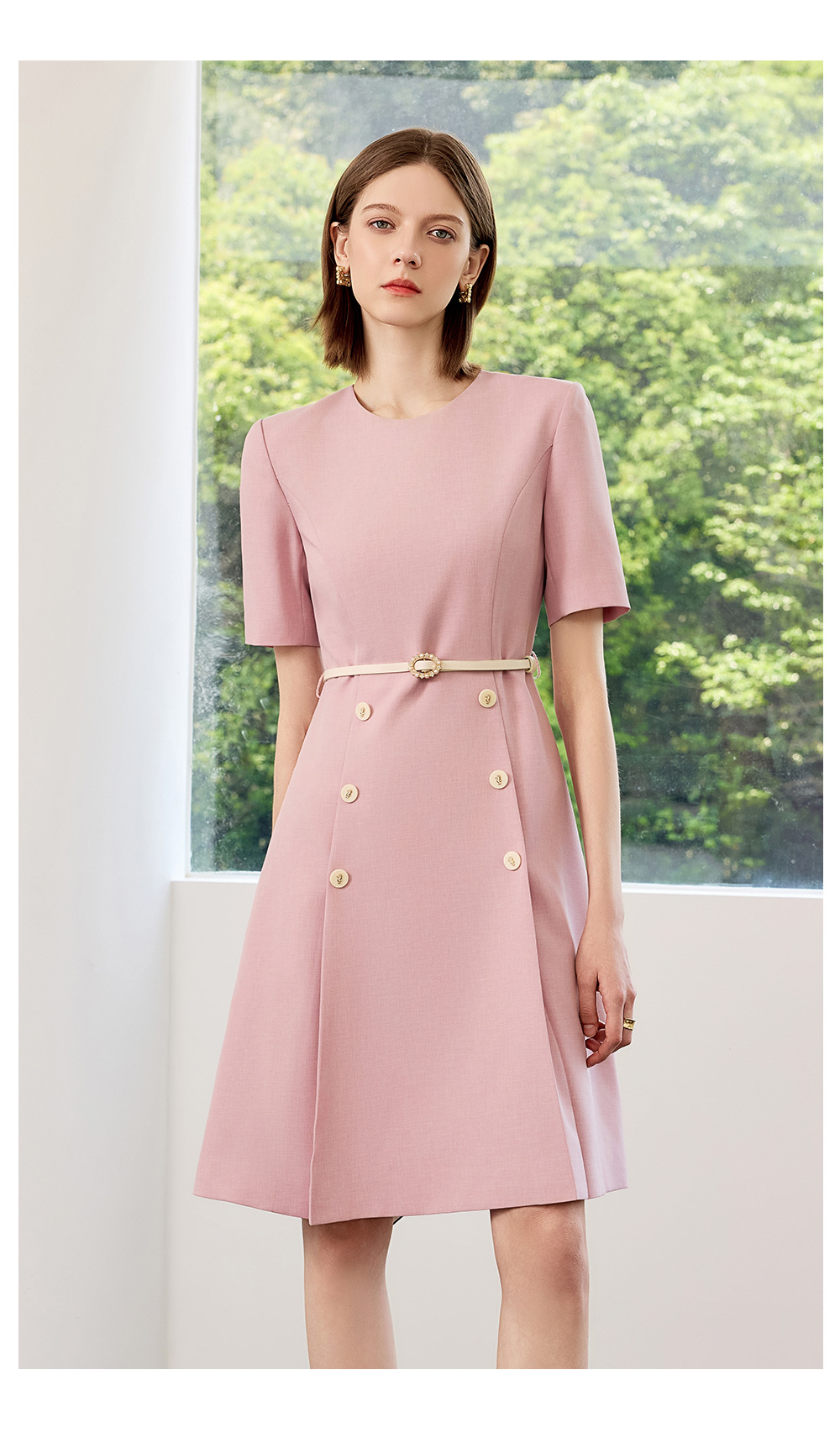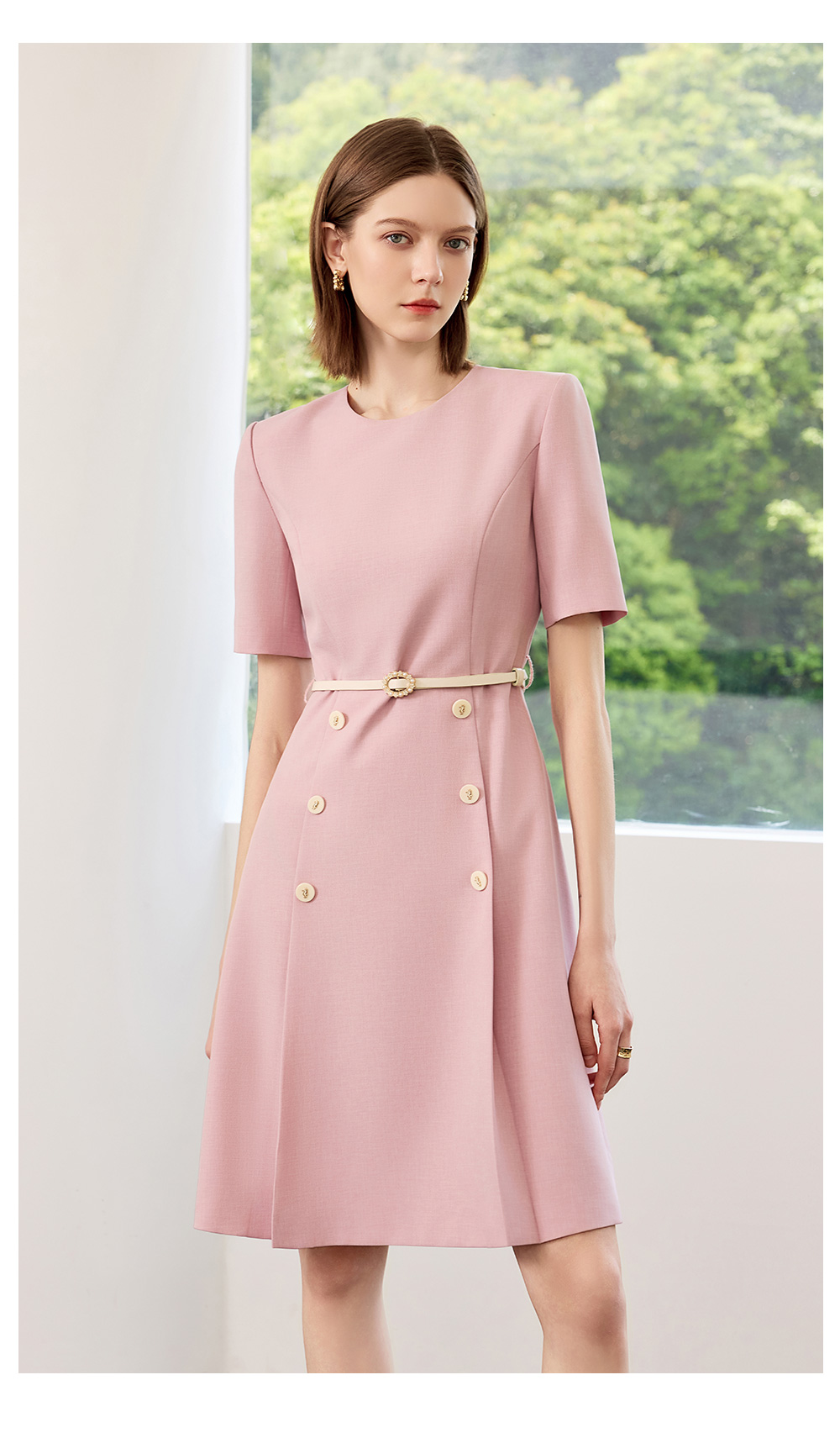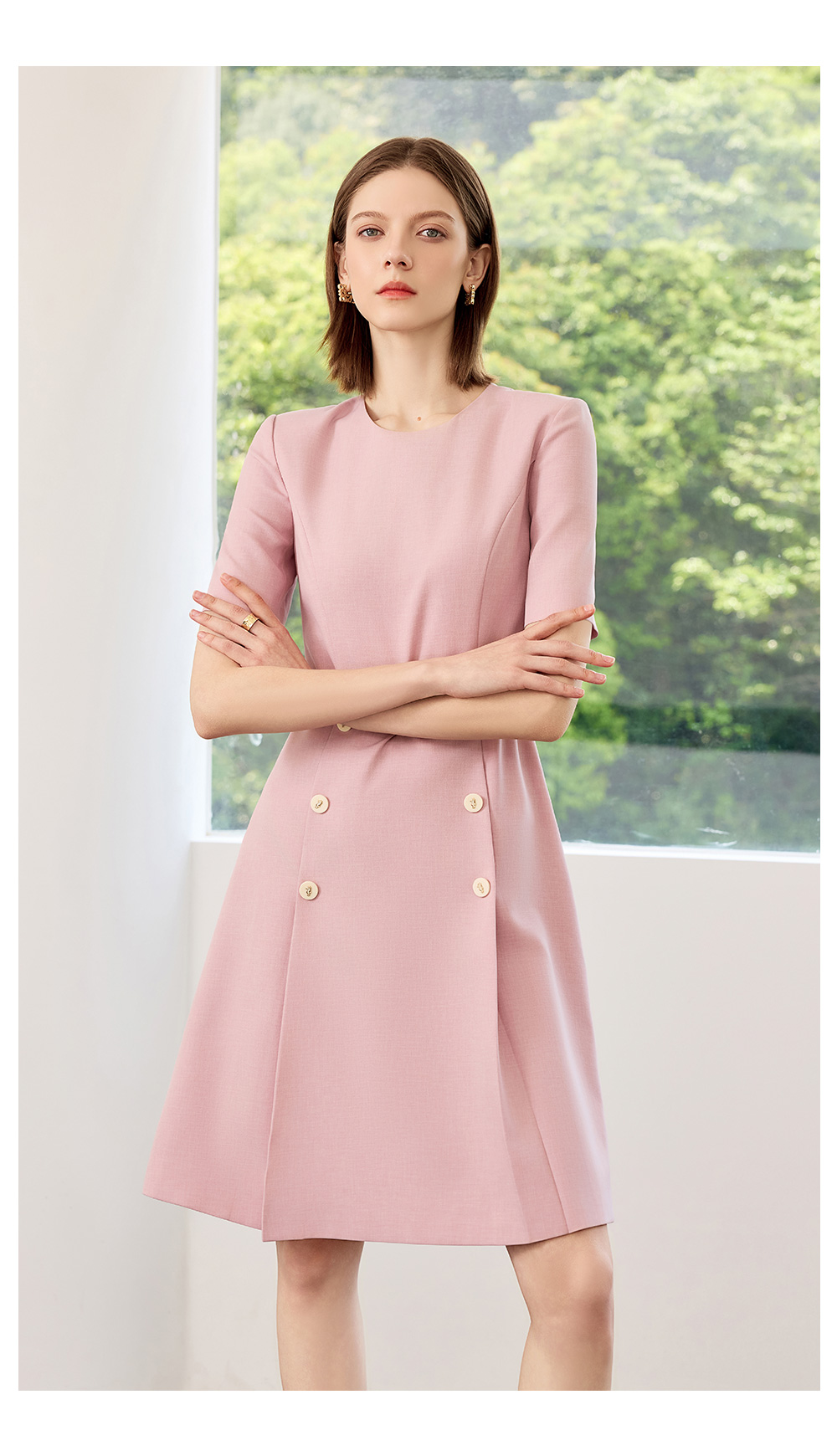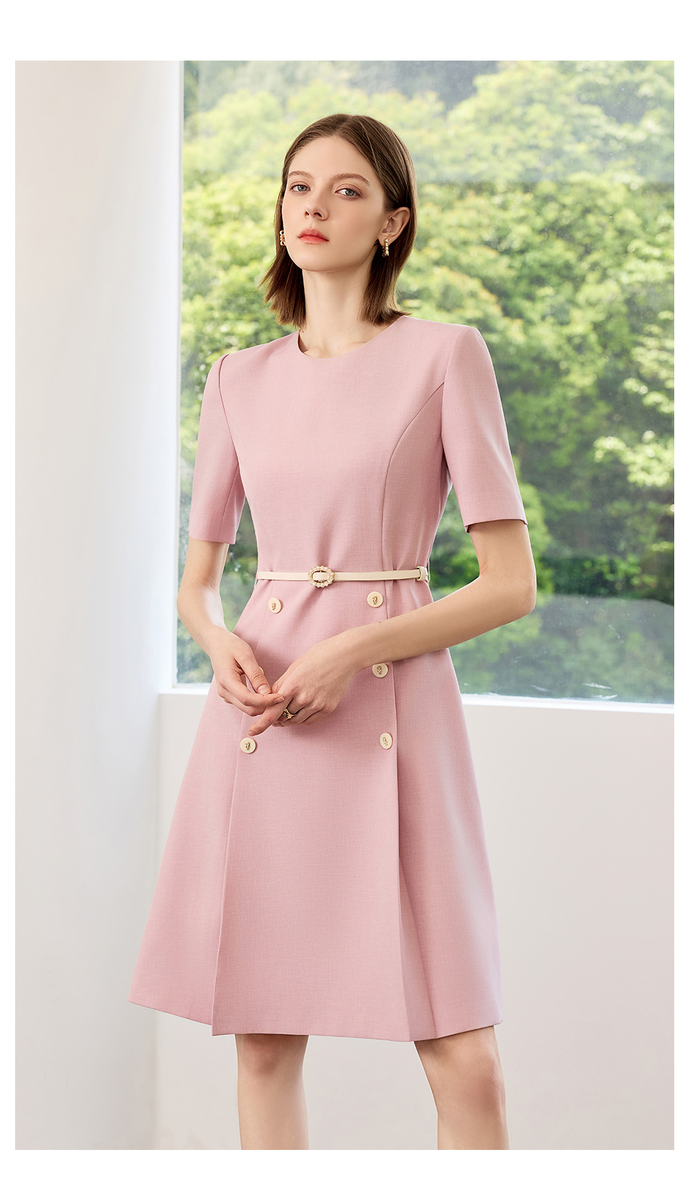 AD高端粉色连衣裙2025新款小香风时尚气质收腰显瘦女中长款裙子