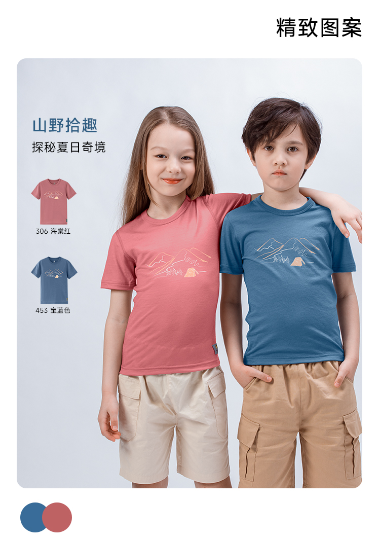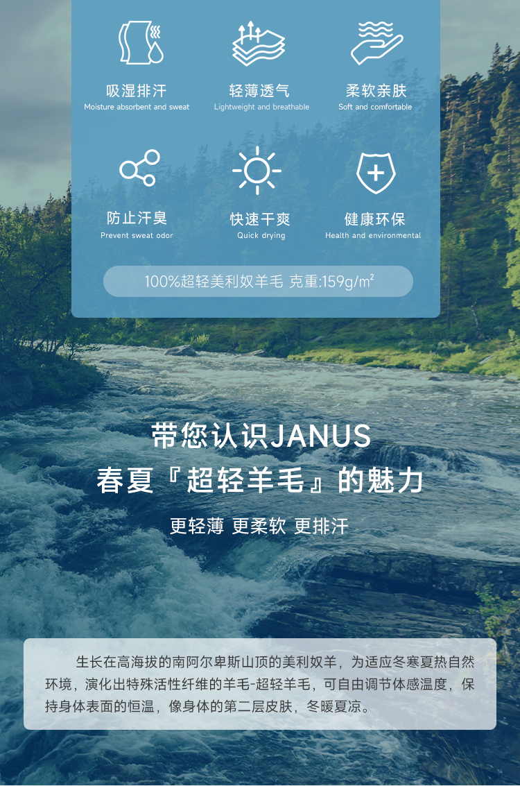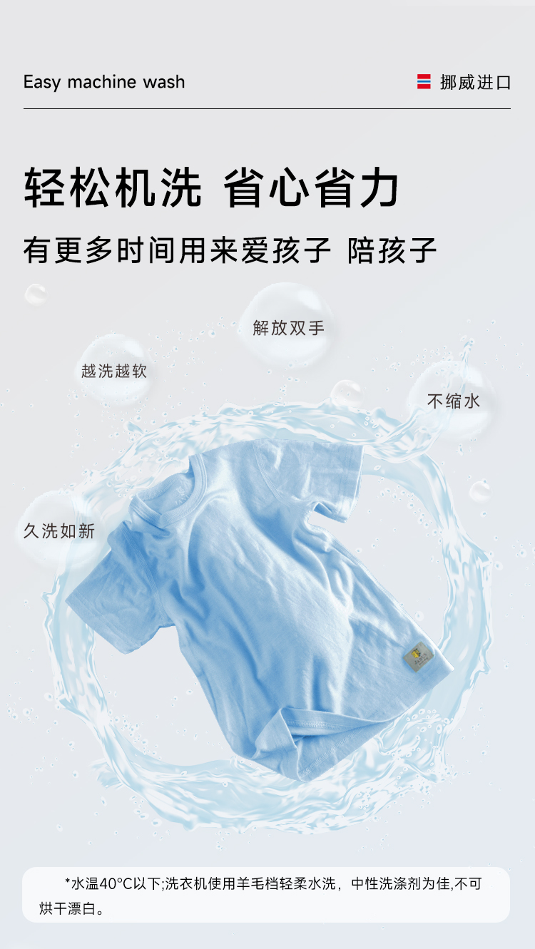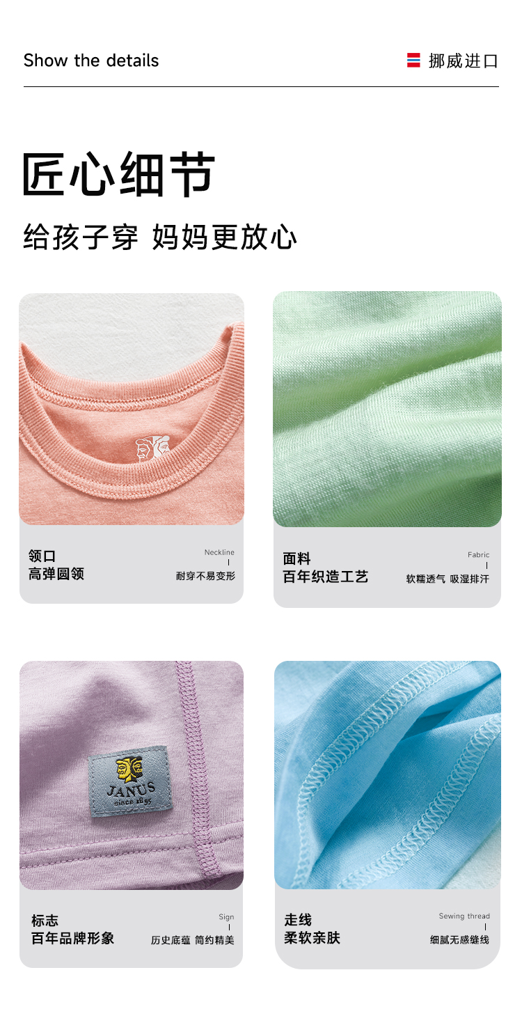 低于双11【90-170码】挪威进口JANUS春夏100%美利奴羊毛儿童超轻款拼色短袖T恤 克重159g/㎡【2025新款】