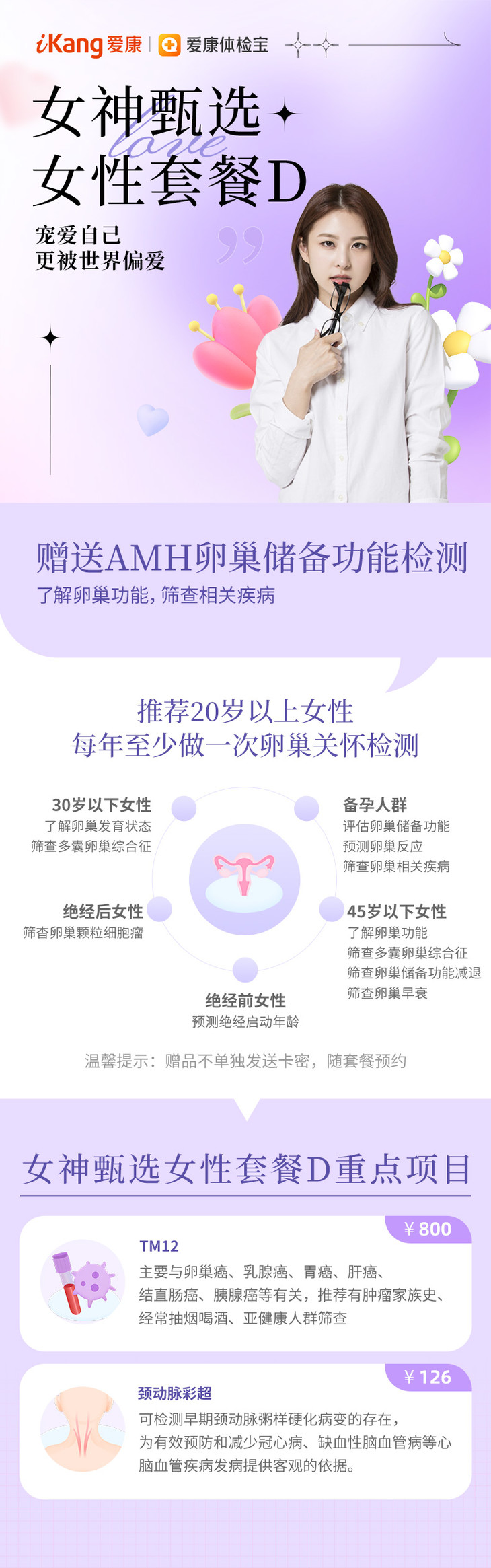 【升级TM12+颈动脉彩超】爱康 女神甄选体检套餐D(含AMH卵巢功能检测-适用于20岁以上女性)
