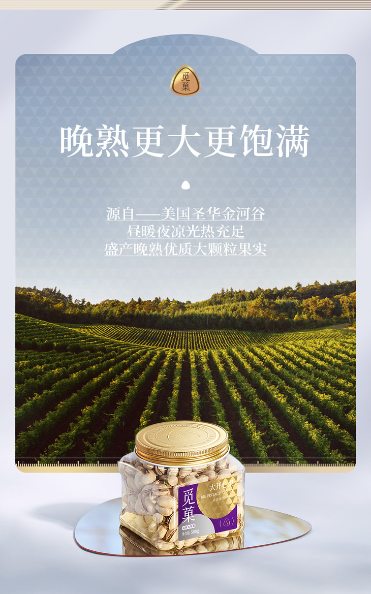 觅菓,一家从诞生就专注于高品质坚果的品牌,始终秉持“不将就,不妥协”的理念,从全球坚果优质原产地甄选好果,致力于将高品质坚果带入千家万户。从挑选果源地、打磨种植方式到完善筛选标准、精细化烘焙流程,均以行业高标准执行,让每一颗坚果都可以大而饱满,“质”地有声。