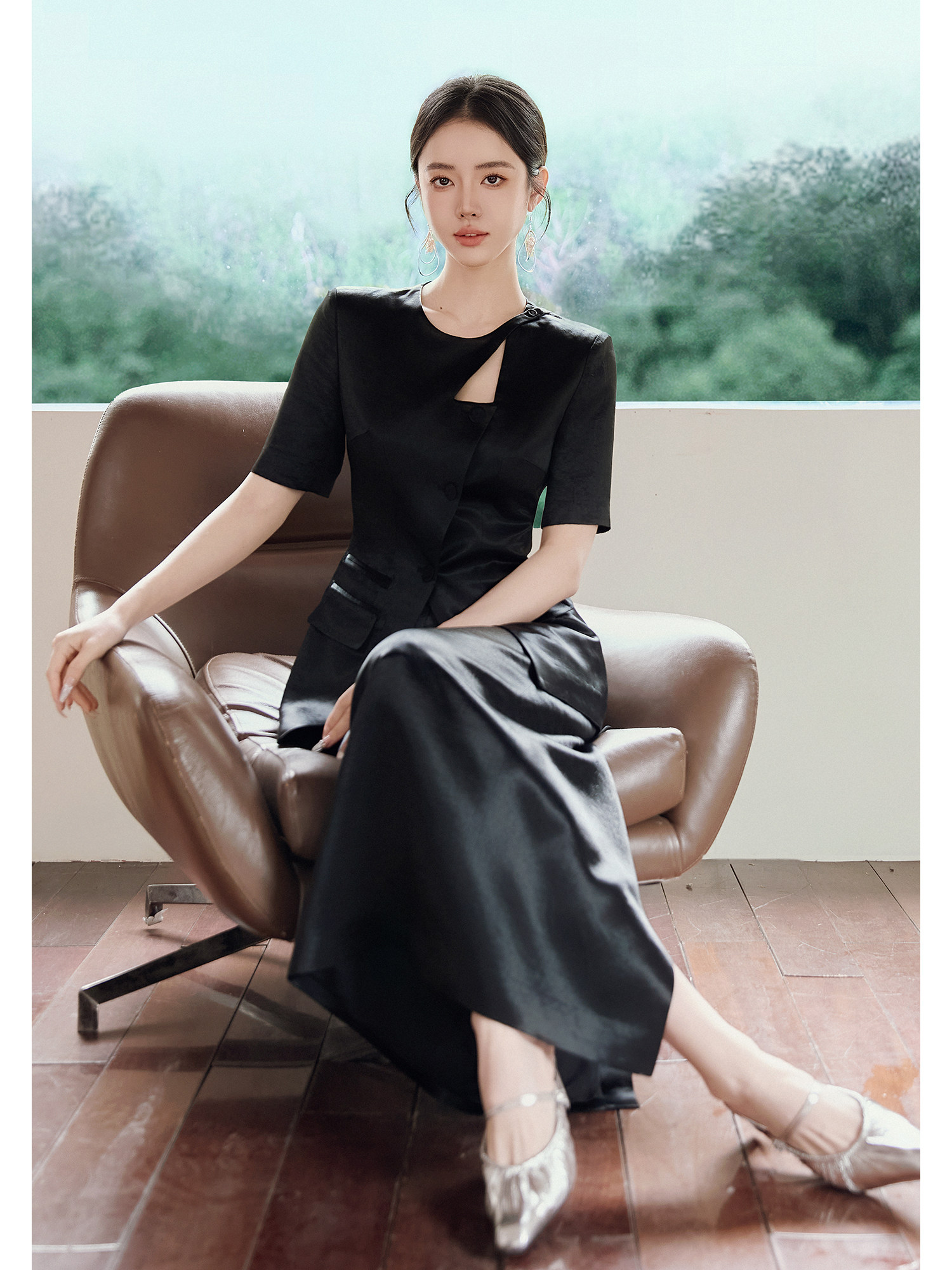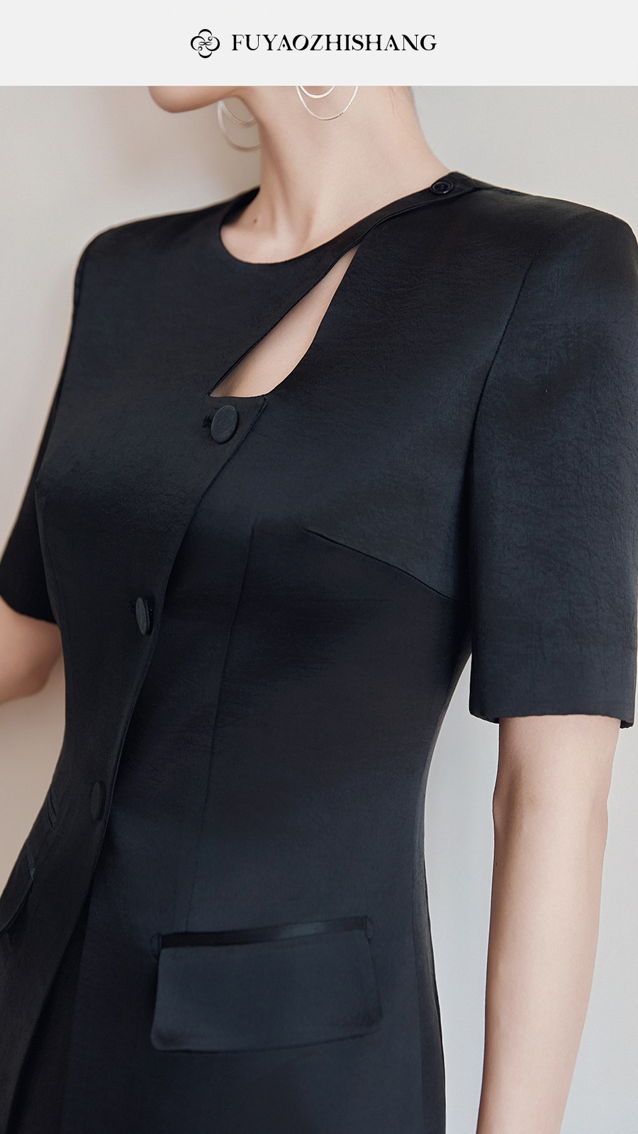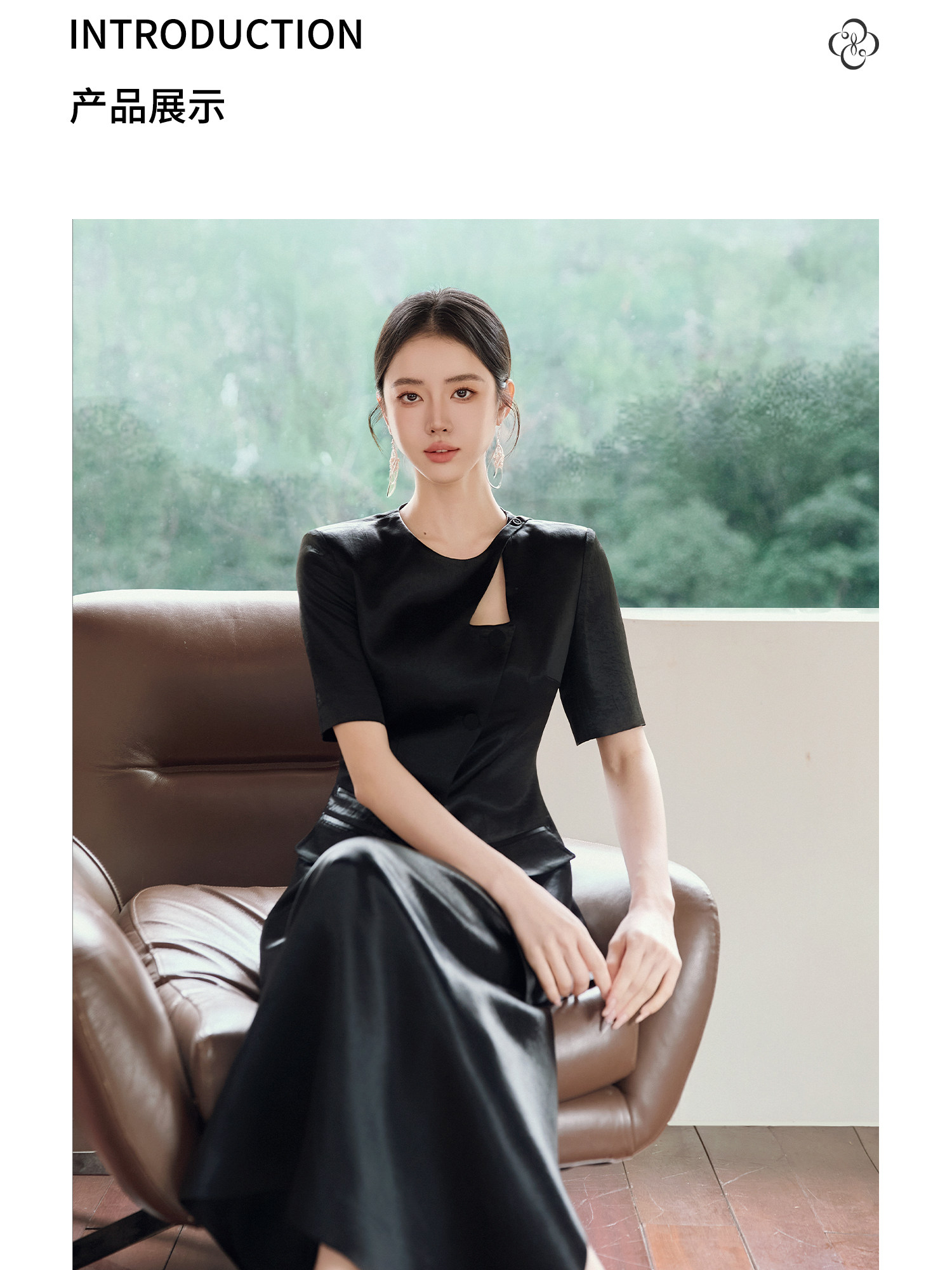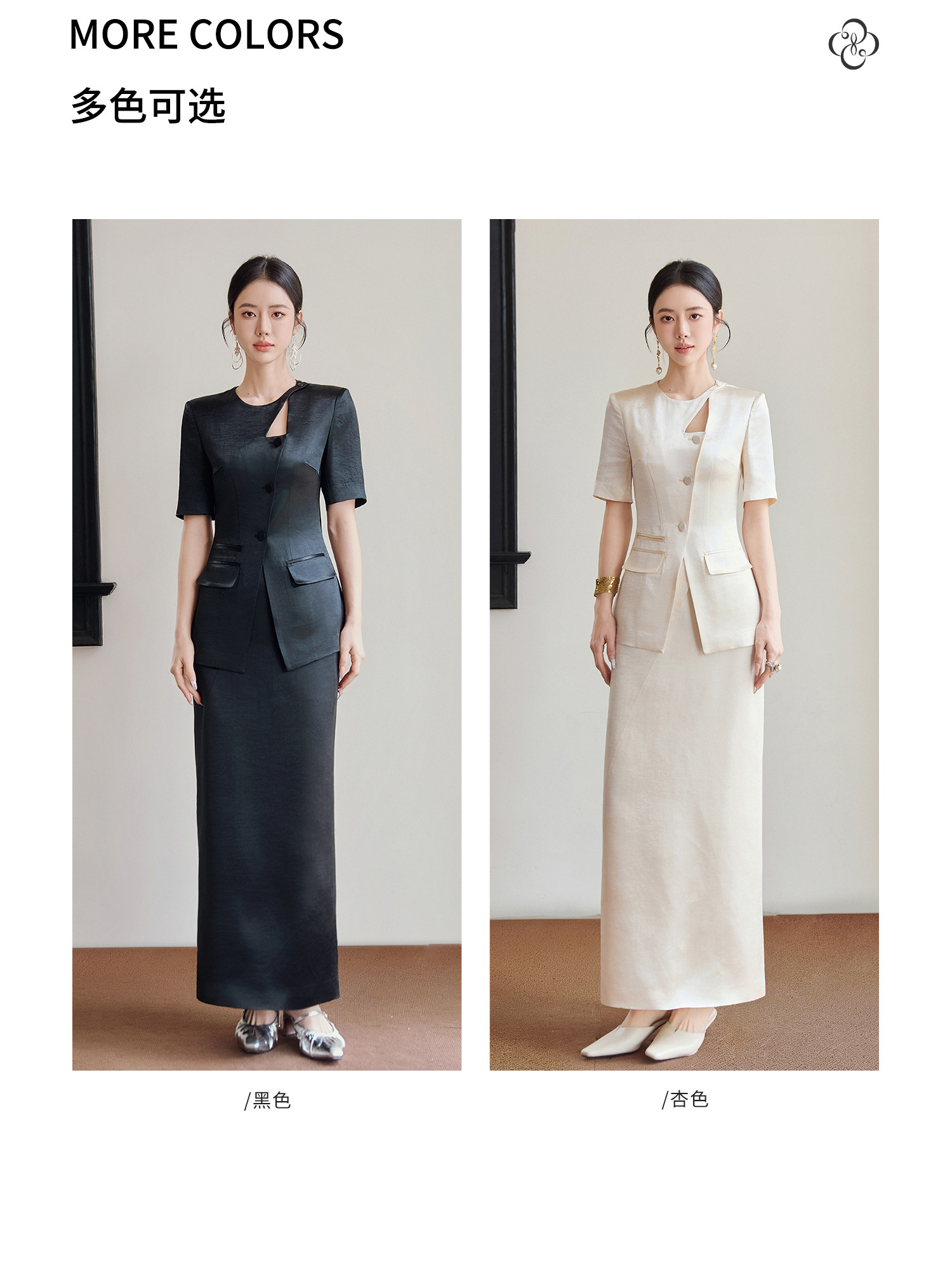 FUYAO扶摇直上 不费力优雅感黑色两件套女夏醋酸西装半身裙旗袍风