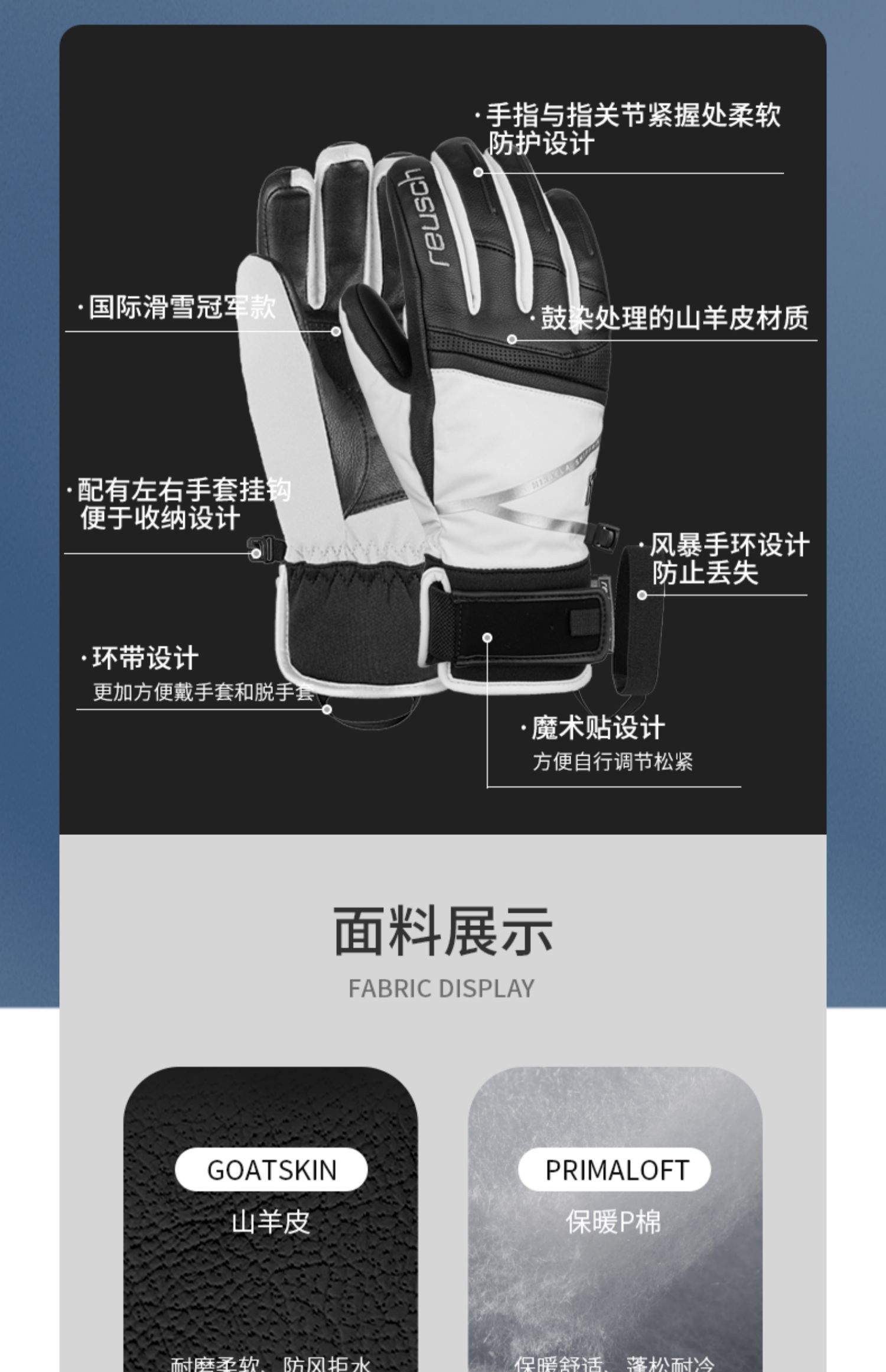 米凯拉希夫林冠军联名款Reusch炫驰女高山滑雪冠军款手套6131254