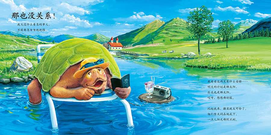 故事中的乌鸦、鼹鼠和乌龟大家都乐于接受自己的特征,不管别人说什么,他们都自信地回答;那也没关系!,按照自己的方式快乐地生活着。