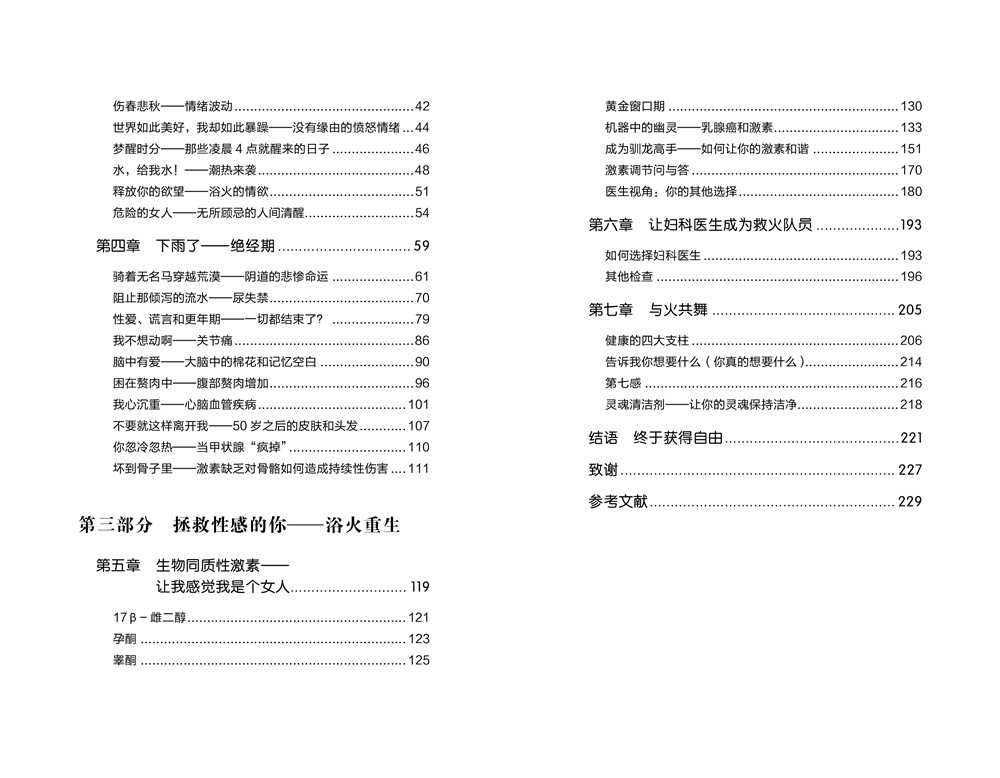 图书所探讨的议题,是我们终要抵达、迄今为止却总是不被看见的重要人生阶段。随着人类寿命的延展,它甚至成为了比青春期和成熟期更为长久的一段时光。作者生动而深度地解析了有关荷尔蒙、卵巢、子宫、乳房、骨骼与心脏的一切,让我们了解到,面对身体与情感的动荡,女性不必注定承受大自然所设定的种种不适,我们每个人,都可以做更好的准备。更年期,以及它所开启的人生下半场,绝非;生命的深秋,而是人生的盛夏当荷尔蒙的迷雾散去,女性将不再被母亲、妻子、女儿的角色所定义,真正拥抱忠实内心的重要的自己。浴火重生后的人生下半场,一切都是崭新的。