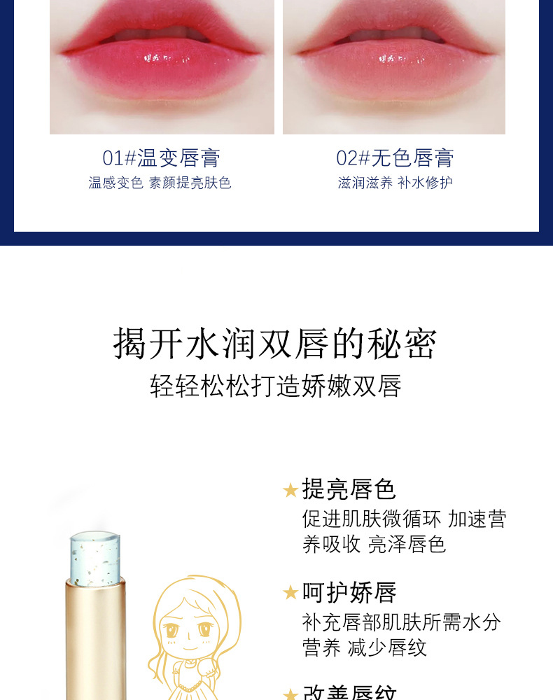 【素颜提气色秒变元气少女】韩泊莉小公主润唇膏24K温变,温感*变色*千人不同色,保湿滋润补水唇膏学生款口红高颜值QQ