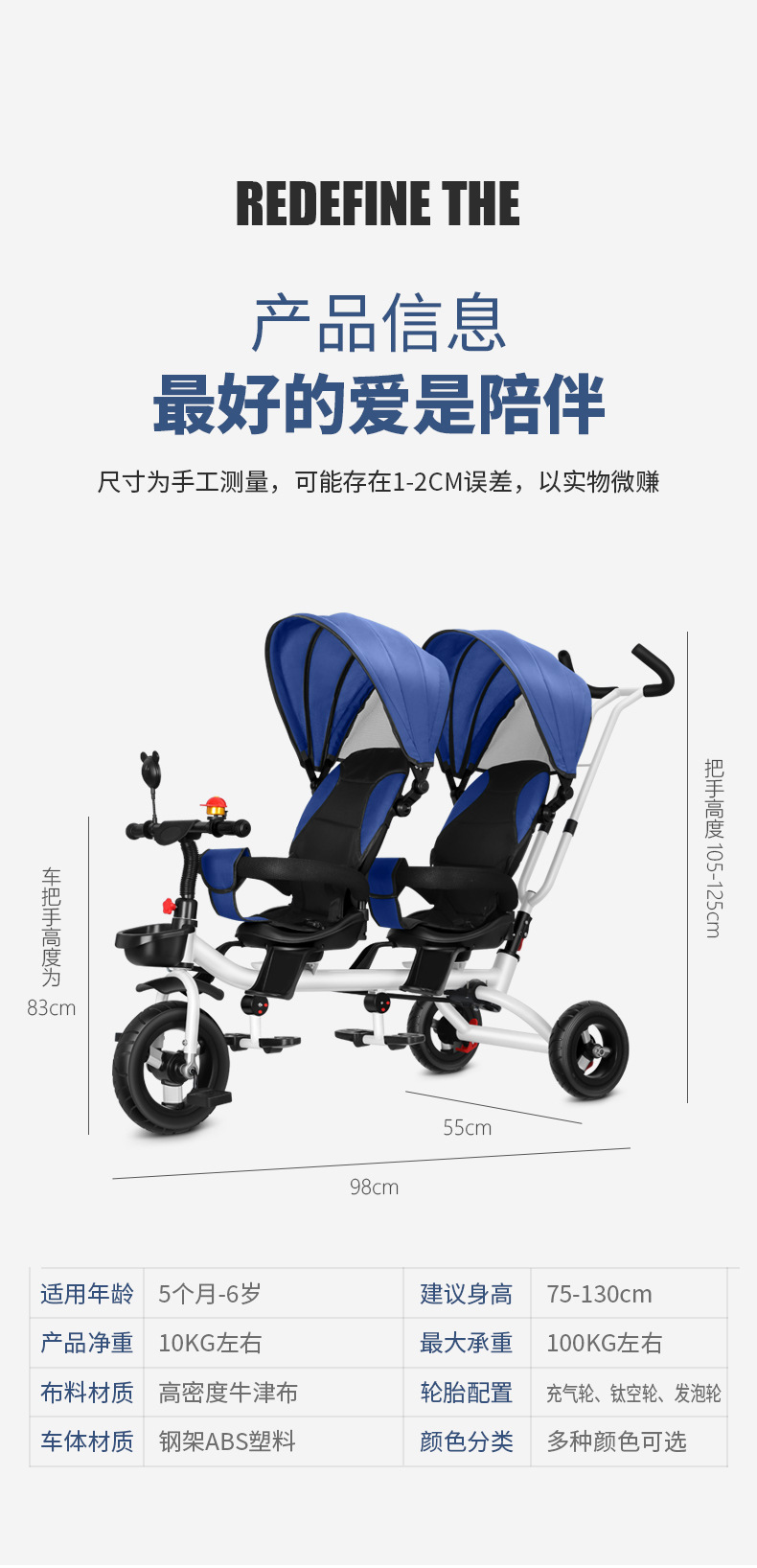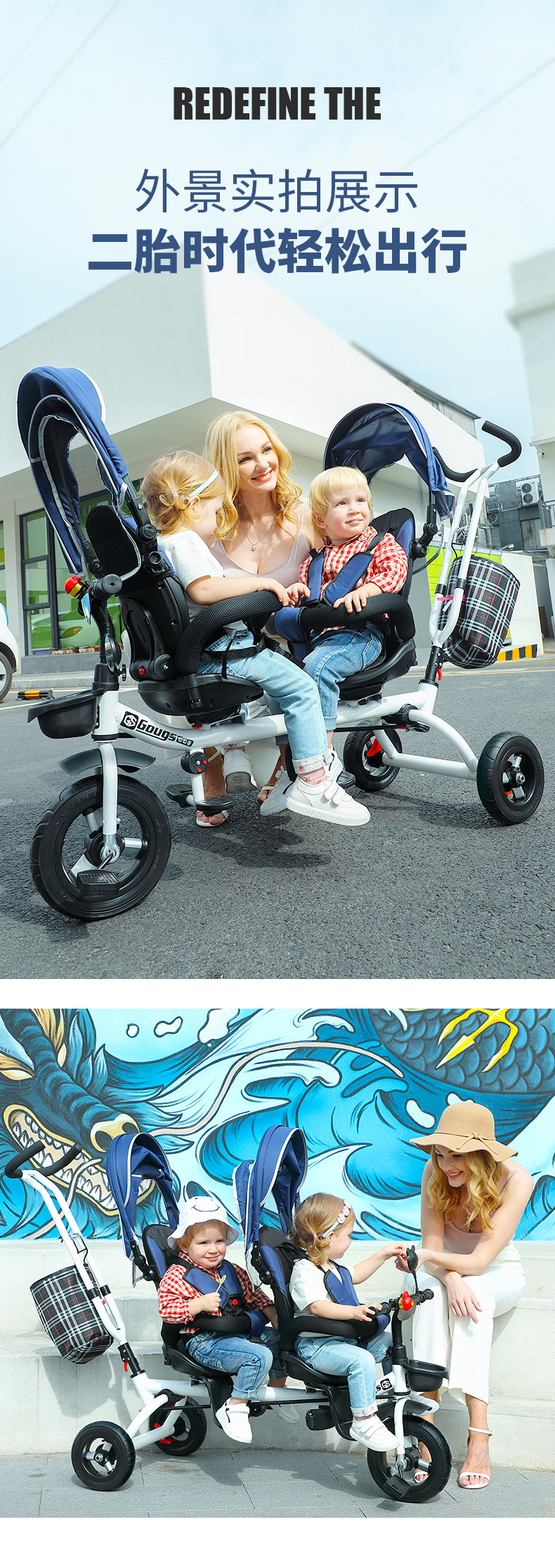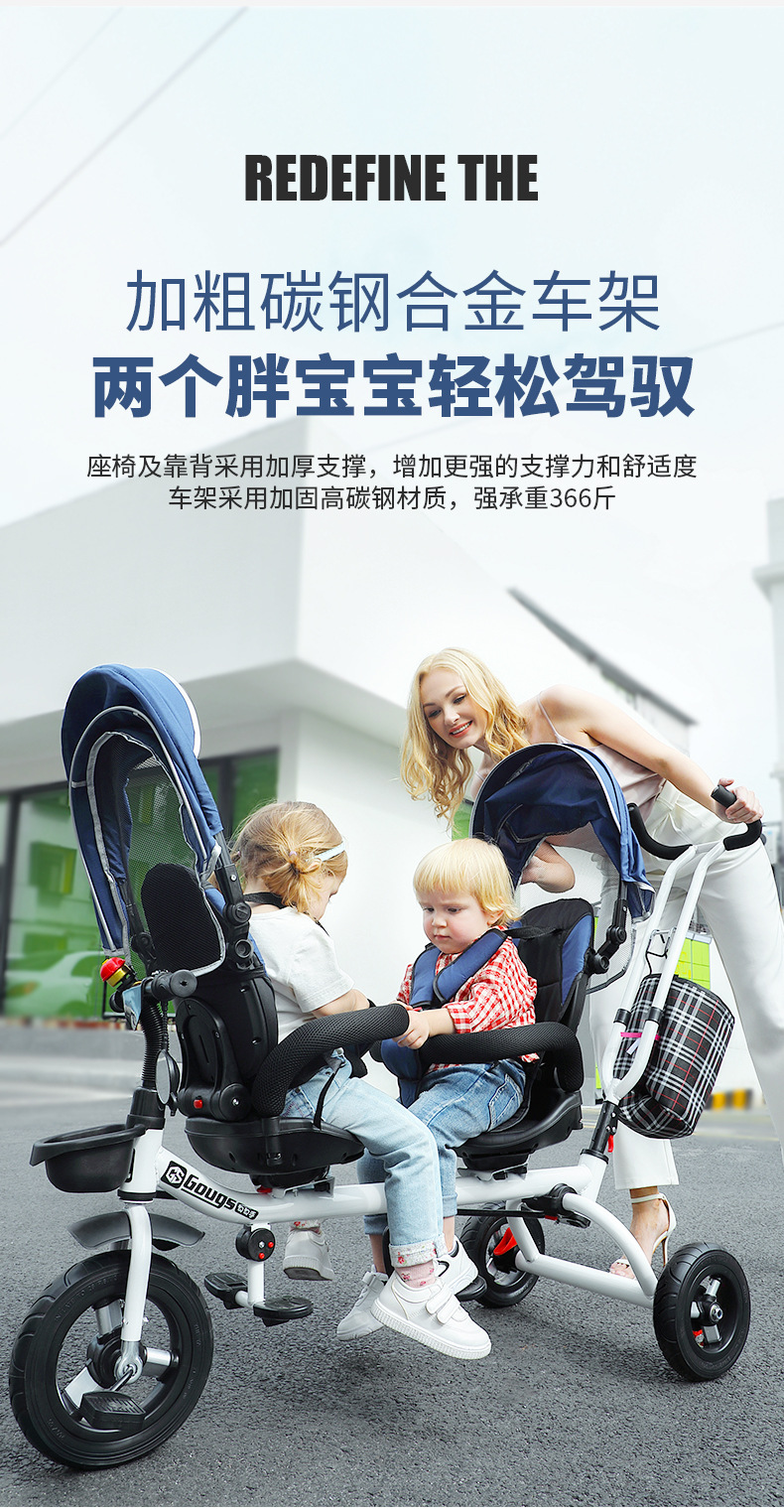 【母婴用品】-儿童双坐脚踏车双胞胎婴儿推车1-5岁宝宝车可转向