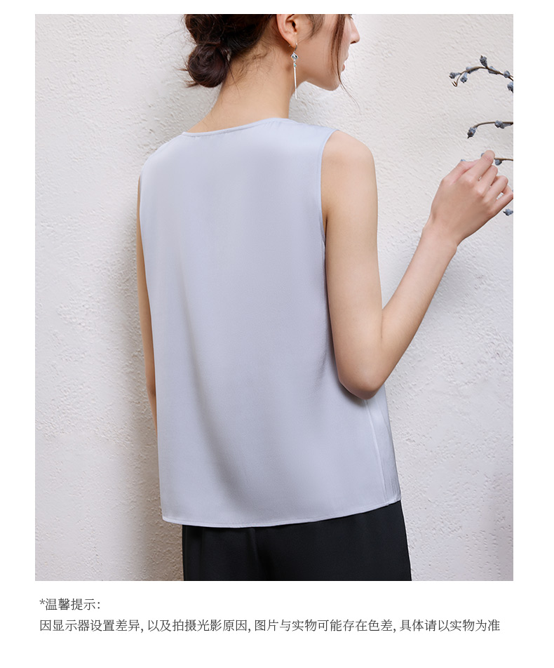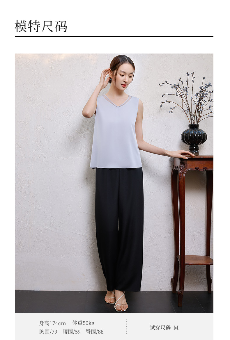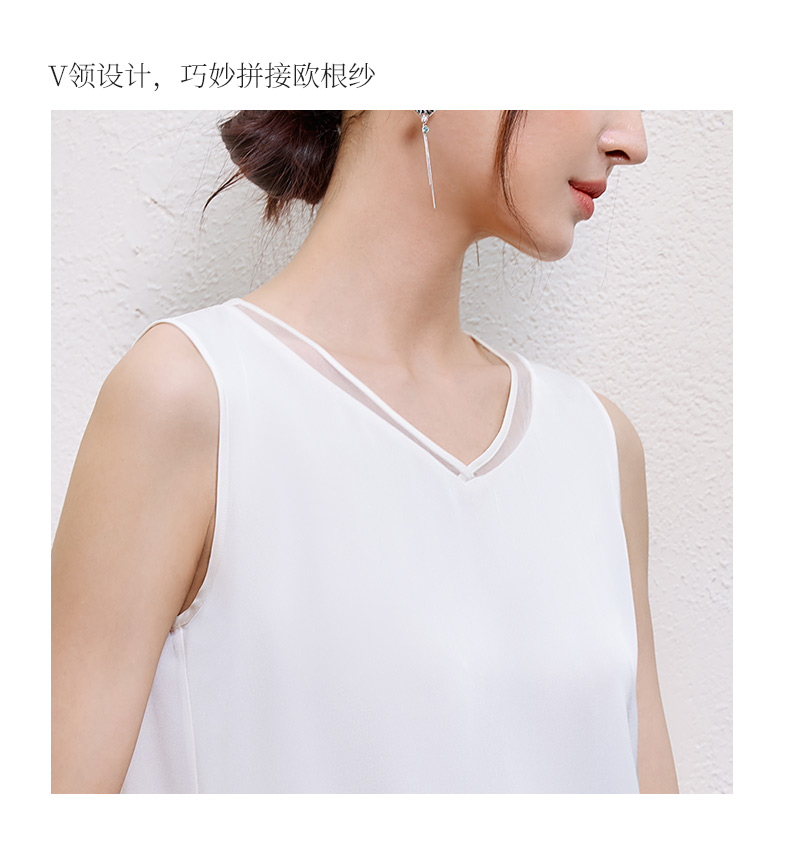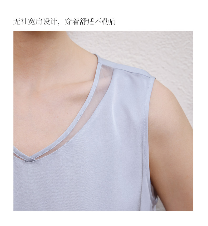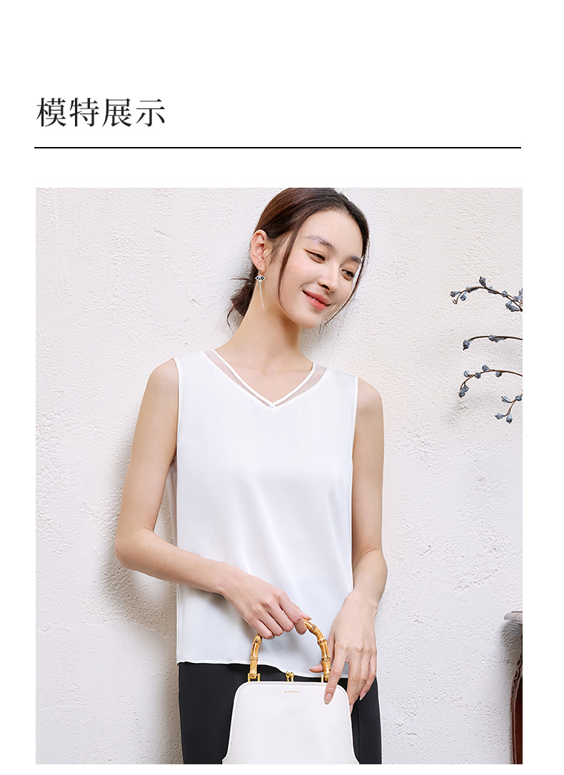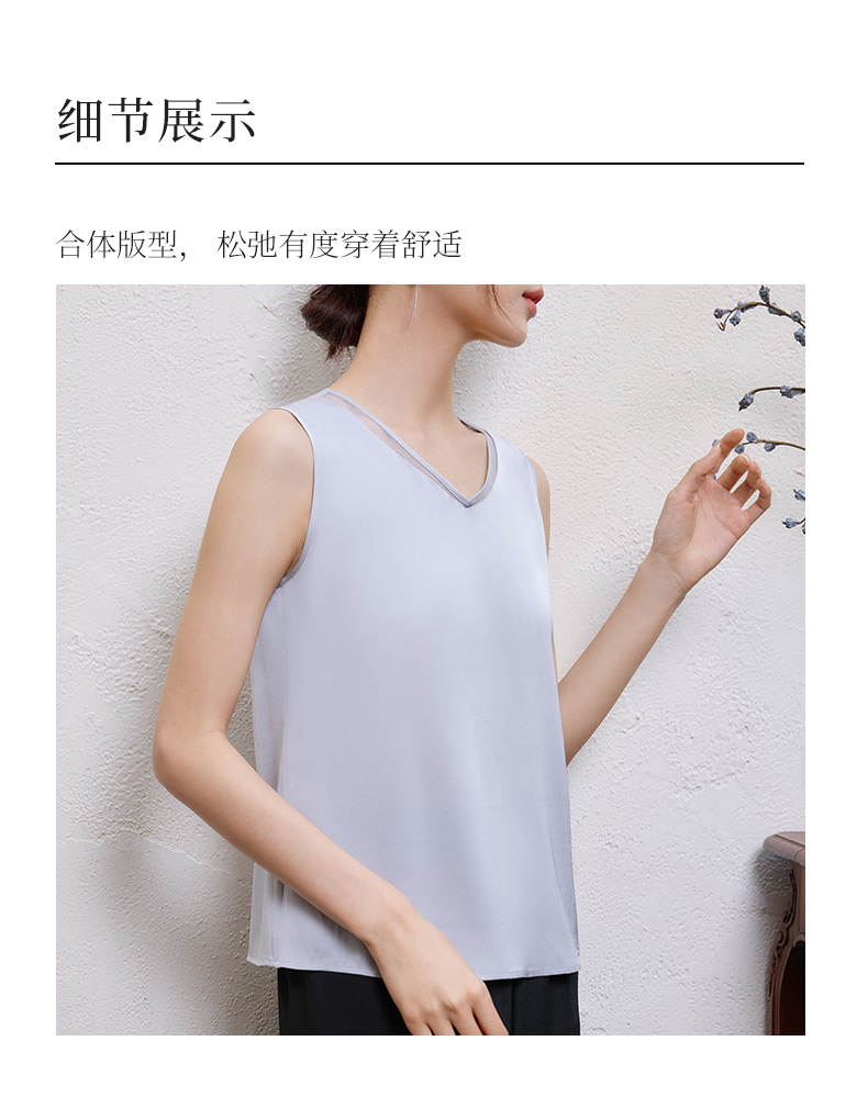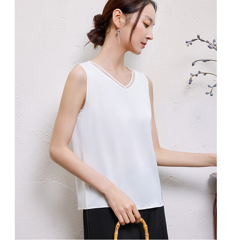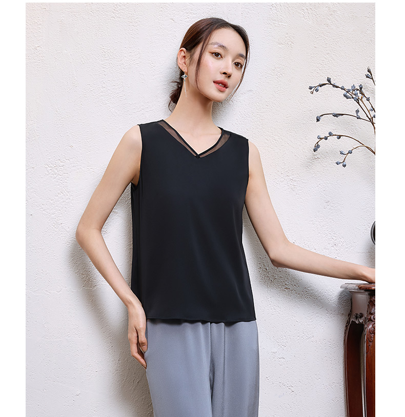 玳莎真丝拼欧根纱V领背心女2025夏季新款百搭桑蚕丝无袖内搭上衣 FB31004