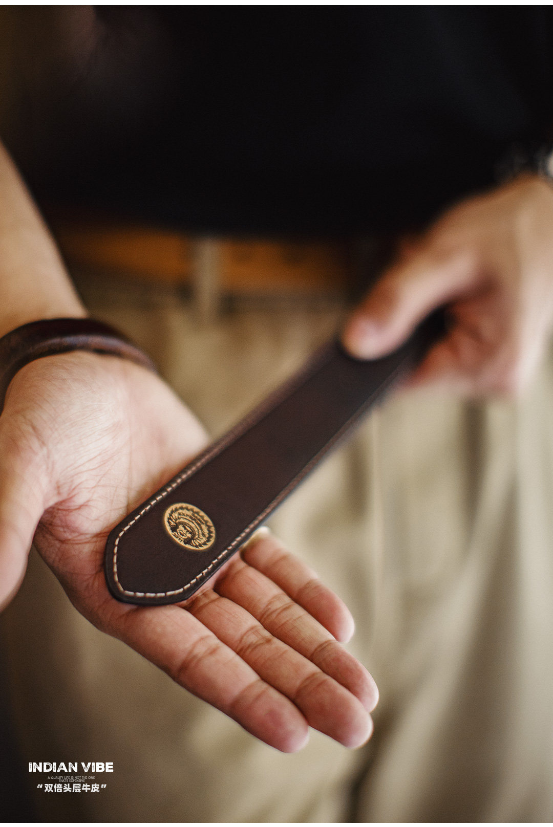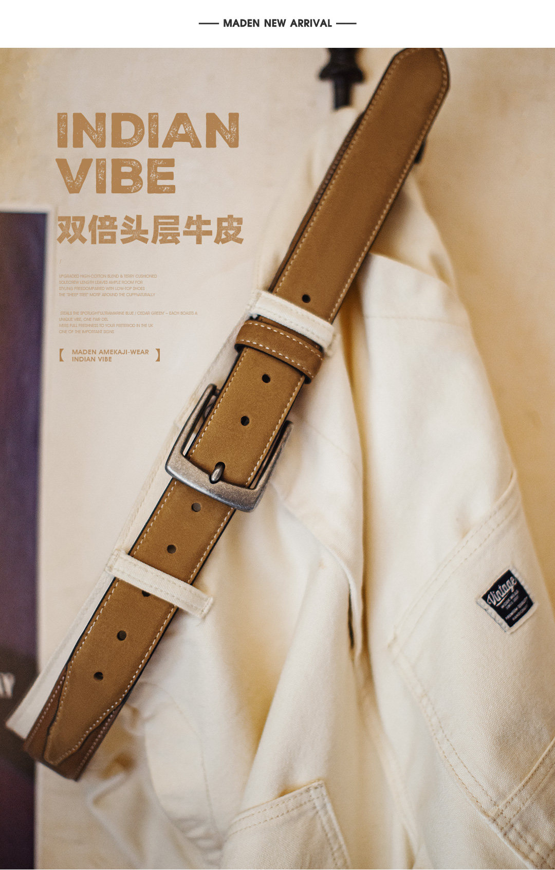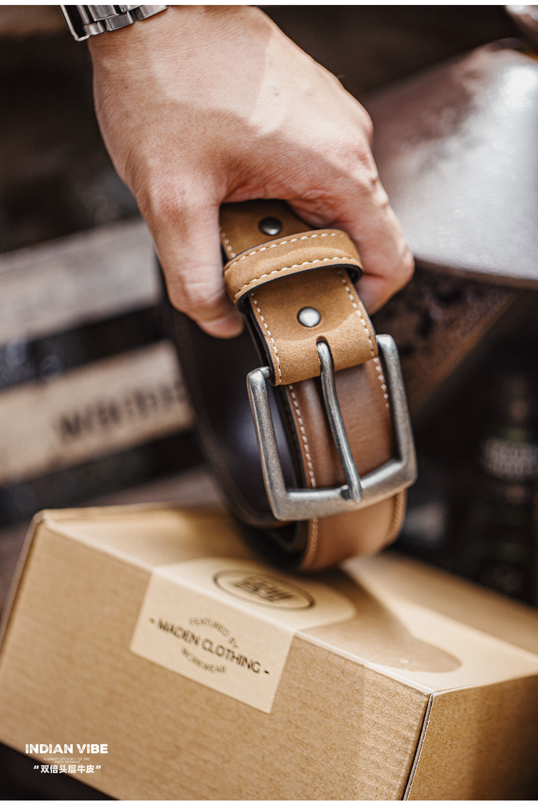 马登工装美式复古酋长皮带头层牛皮腰带单针扣头真皮裤腰带男款