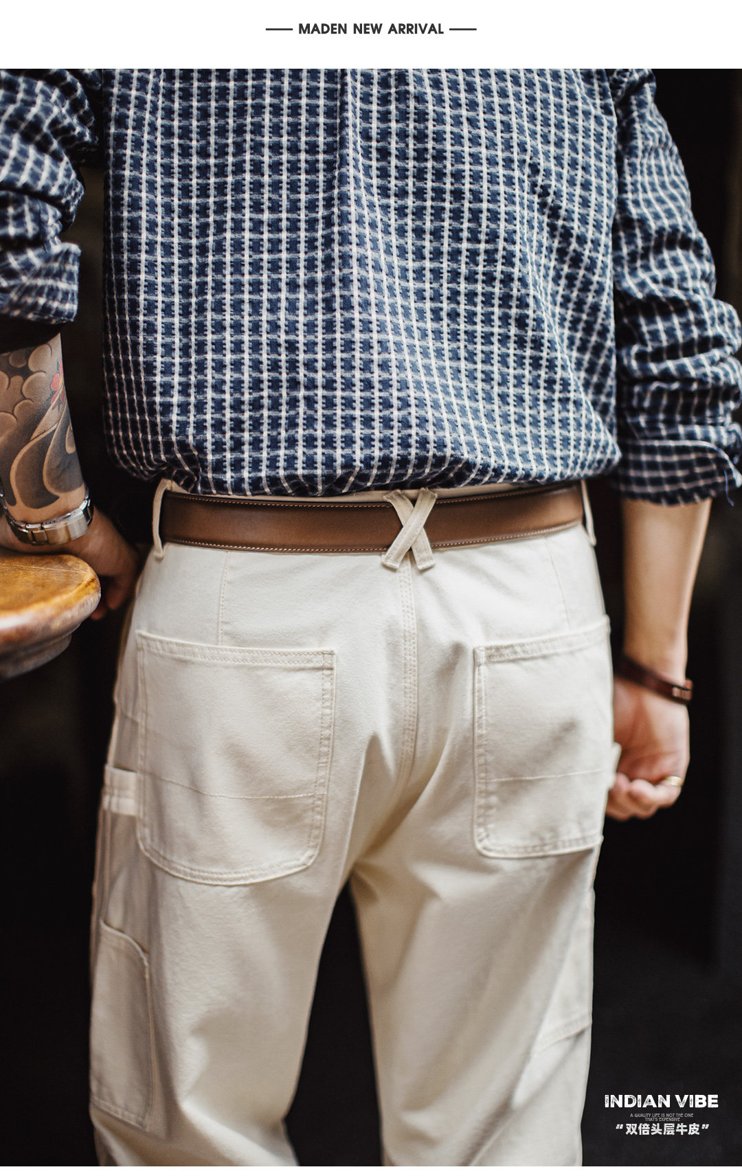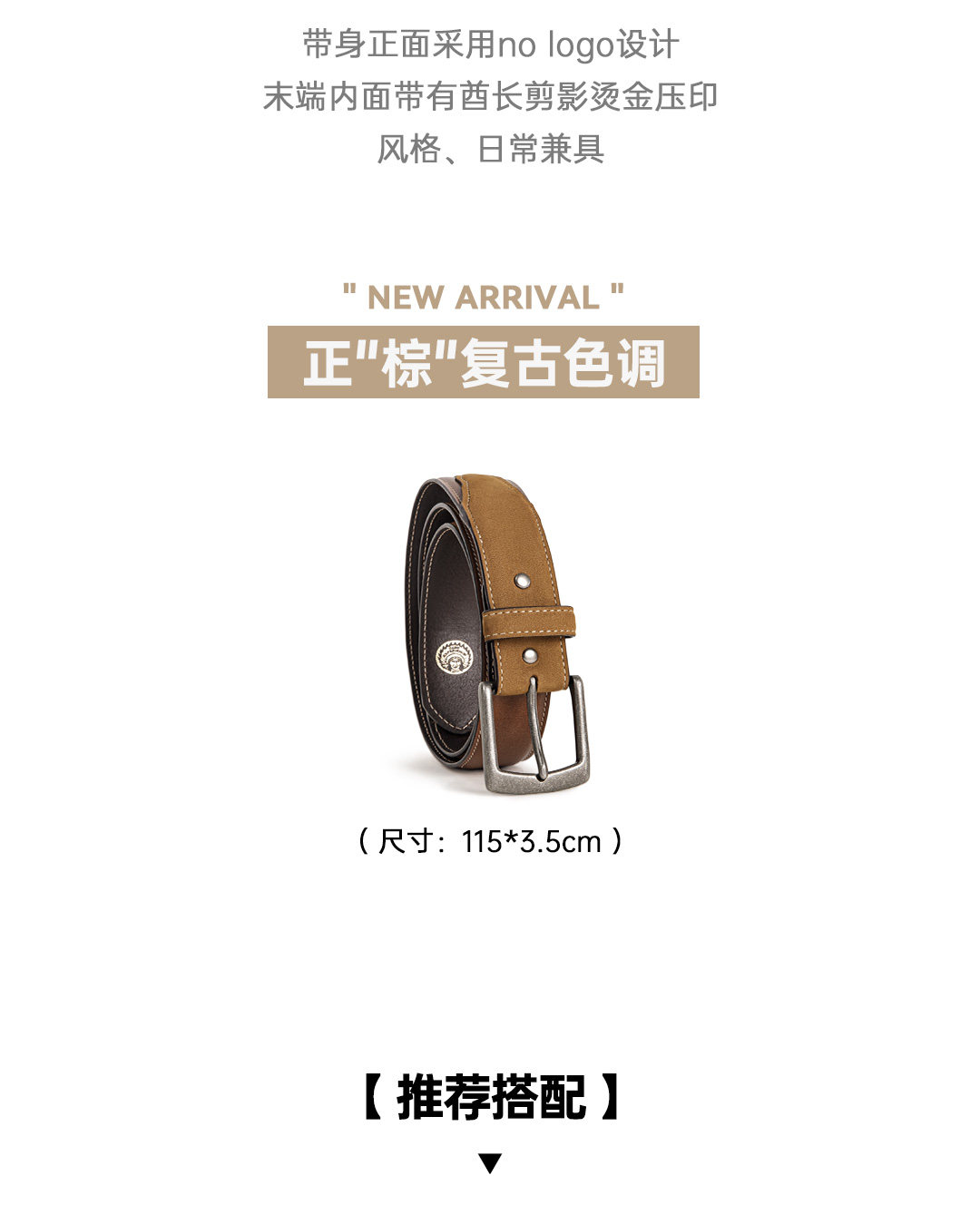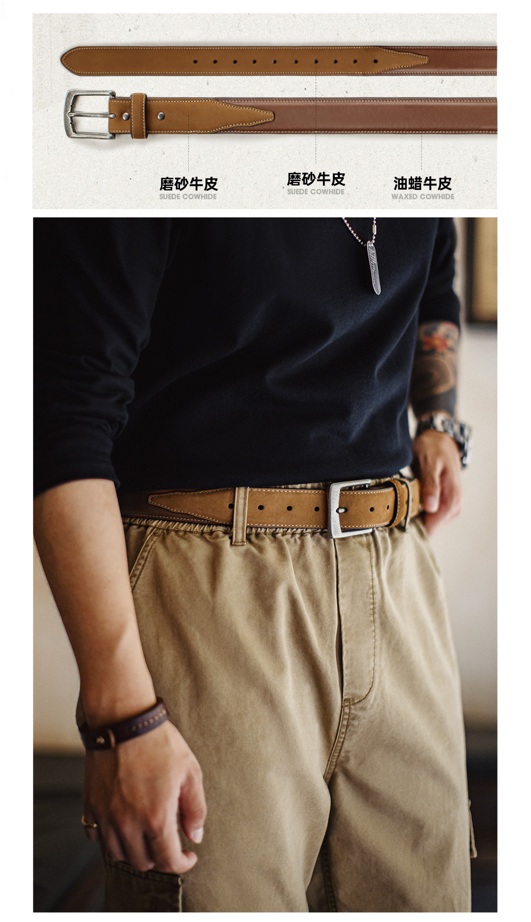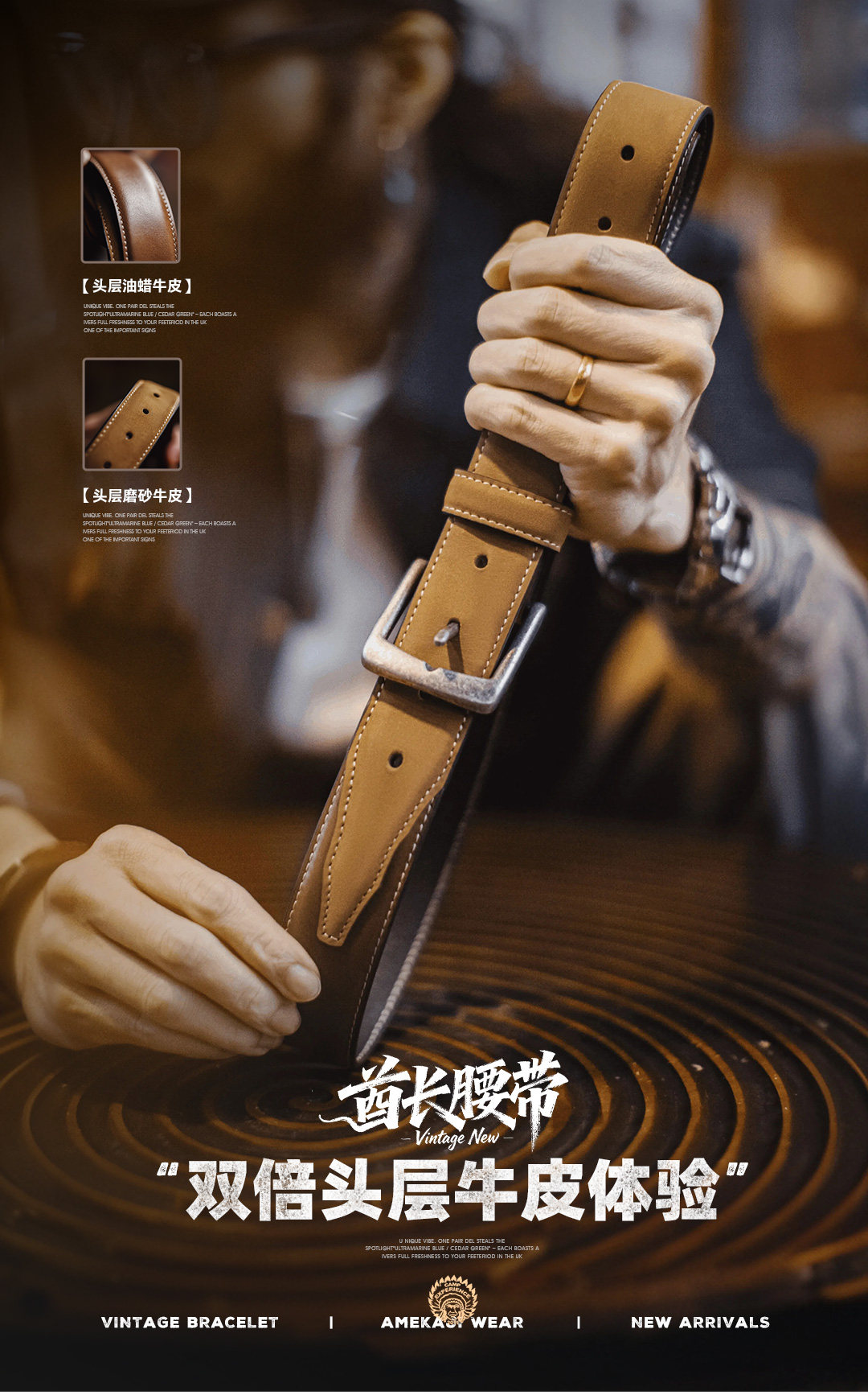 马登工装美式复古酋长皮带头层牛皮腰带单针扣头真皮裤腰带男款